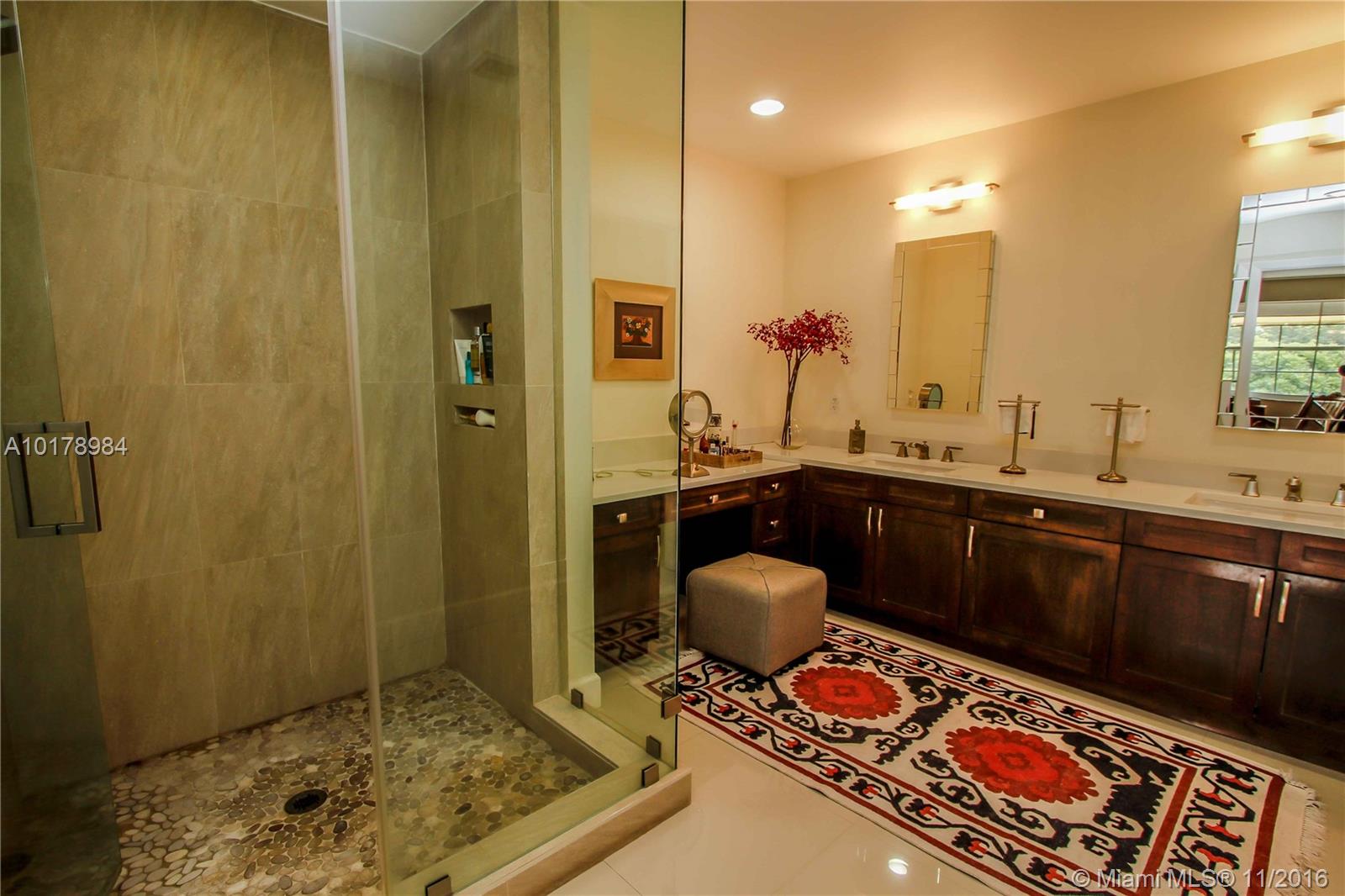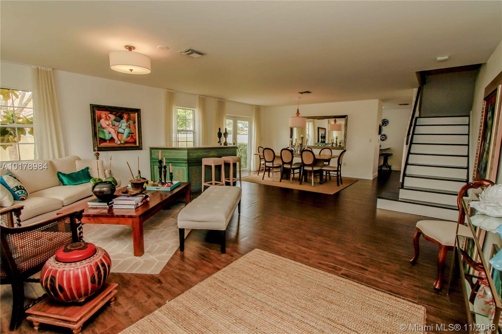 Professionally designed, one of a kind, unique home in Doral Dunes. 5 bedrooms, 3 baths, with one bedroom and bath on first floor. Garage was professionally converted and permitted with a bonus sitting room and bedroom. Special redesigned bonus room on second level is perfect for additional entertainment space for family. Property is on oversized corner lot with expansive landscaping, heated pool, gazebo and canal view. Nothing has been spared, updated kitchen, baths, floors and overall design.