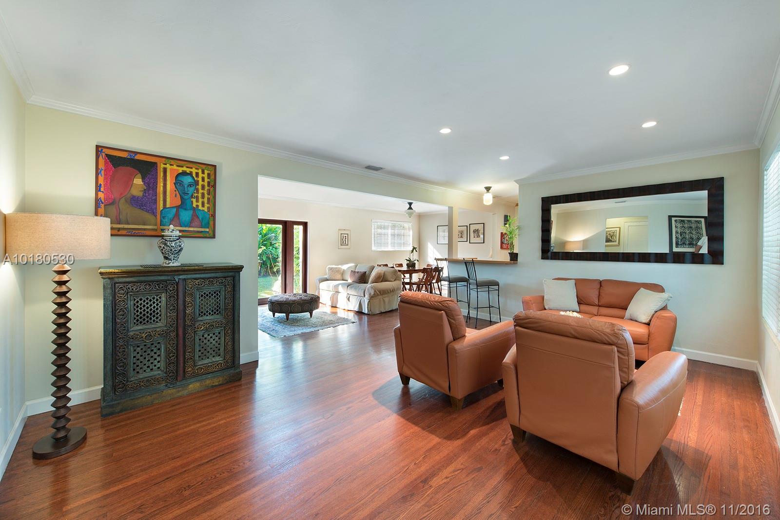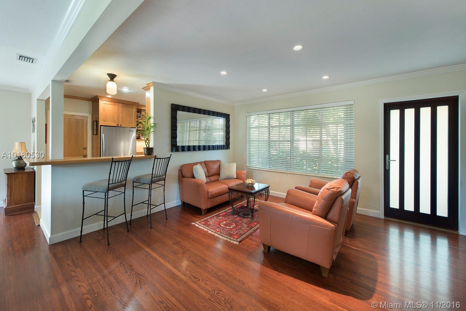 You'll feel right at home when you step inside this gem in Miami Shores. Gorgeous wood floors, large open spaces, gourmet kitchen, huge Master Bedroom, all overlooking expansive back yard. Quiet cul-de-sac street makes this your private oasis near the city. Gas kitchen with commercial grade viking stove/oven, upgraded appliances and granite countertops. Also features 1 car garage. Some impact doors, all others have accordion hurricane shutters. Plus a sprinkler system and a generator included.