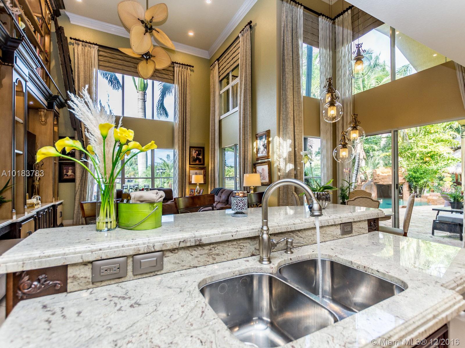 Welcome to a custom remodeled home located in the sought after Sunset Lakes community. With captivating calming waterfront view, retreat to the great outdoor entertaining space. featuring soaring high ceilings, large windows that allow for plenty of natural light to flow throughout. Kitchen with Stainless Steel JENN-AIR appliances, every detail was carefully selected with premium finishes and fixtures including custom wood cabinets, pantries, Granite countertops, remodeled bathrooms, very Motivated seller