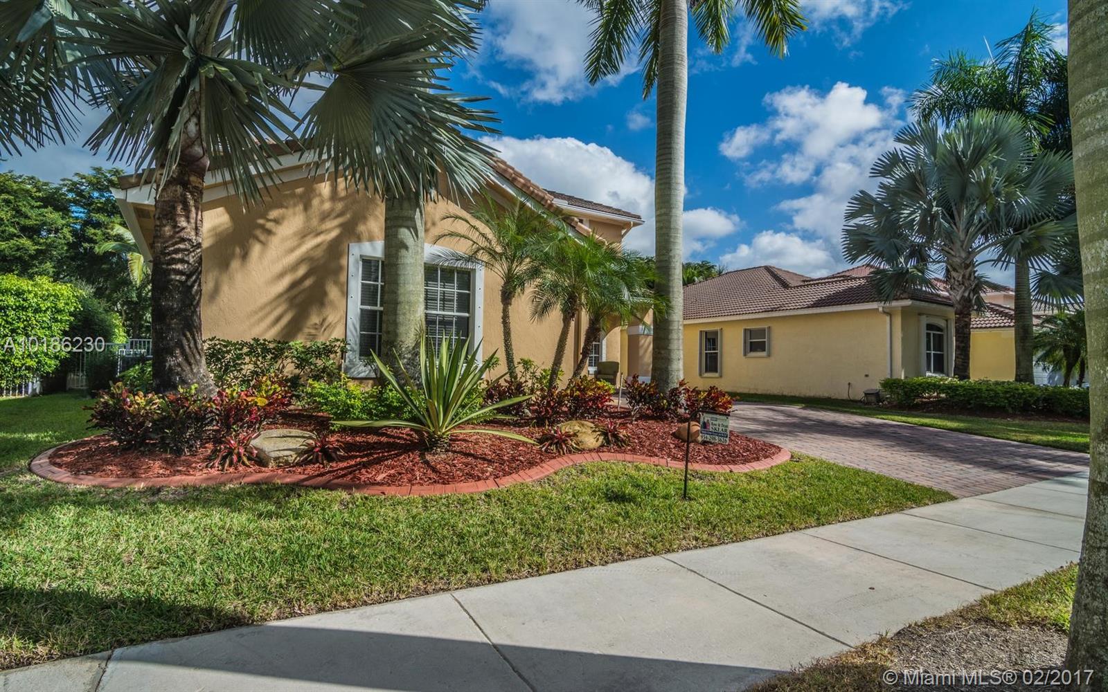 Like New Construction in Weston Hills. Popular Santa Cruz model with BRAND NEW custom Saltwater system, heated pool w/expansive covered patio. No neighbors for pure privacy. Enter this beauty via Palm tree lined street. A Grand 2 story entry foyer welcomes you. White contemporary cab.in kitchen w/center island. Decorated in neutral tones, tile floors on 1st level & wood up. Full bed & bath down. MB is up w/sitting room. Freshly painted interior, 2 New A/C, plantation shutters, walk to community park.
