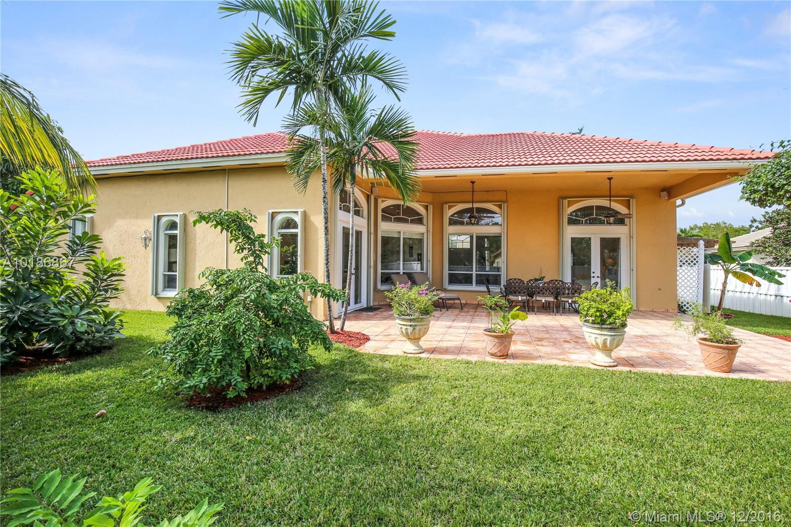 Impeccably Clean & Contemporary 4 Bed+Office, 3 Bath, Monterey Model Home in Prestigious Pembroke Falls. Features:Open Kitchen w/Granite, SS Appliances & Gas Range, Spacious Master Bedroom w/Dual Closets & French Doors leading out to the Expansive Covered Patio, Oversized Corner Lot w/Vinyl Fencing, Tropical Landscaping & Exotic Fruit Trees, Custom Pergola woven w/Flowering Bougainvillea, Large Circular Driveway w/ Decorative Pavers & Accordion Hurricane Shutters.