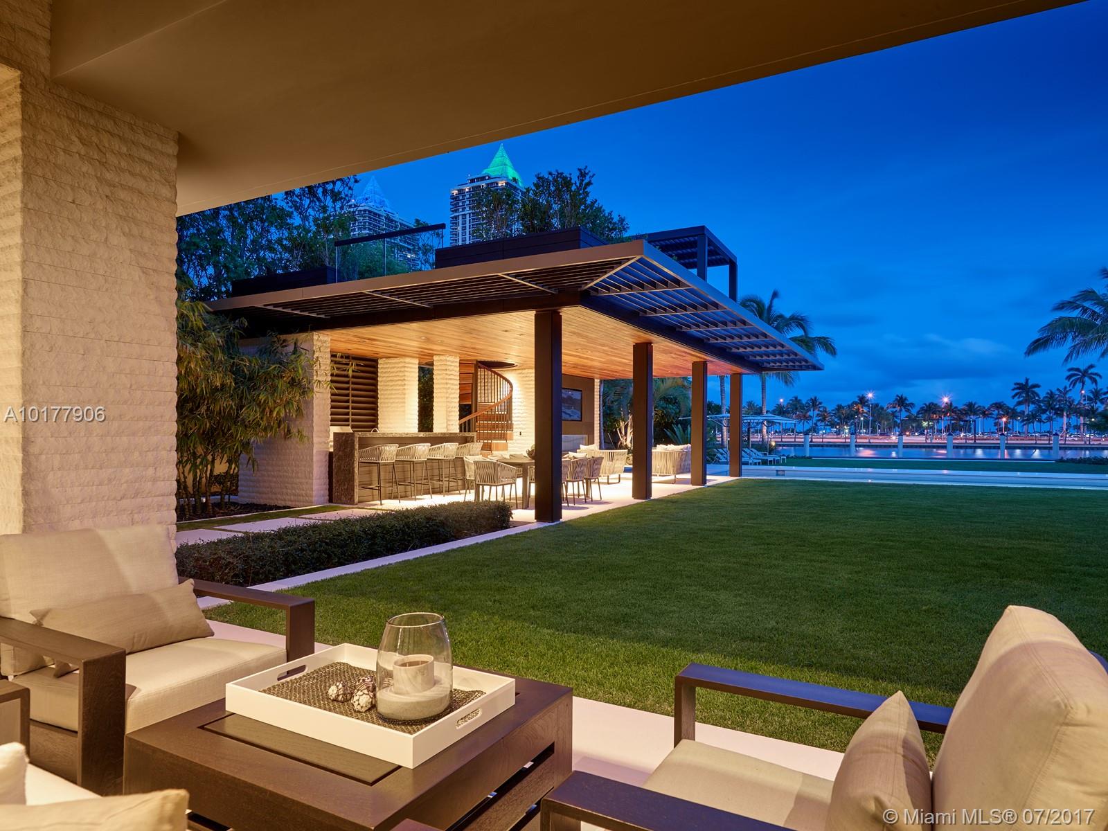 This 9 bed, 10.5 bath limestone estate is the latest edition to Pine Tree Drive. Designed with elegance by Cesar Molina, furnishings include Holly Hunt & Christian Liagre, carefully selected wall treatments, millwork & exquisite textiles by Holly Hunt. The residence embodies a refreshing emphasis on the value of meditation with Curmaru wood overhangs and mahogany windows & doors. The tropical modern design blends interiors and exteriors with an expansive courtyard in addition to a two level gazebo with a full kitchen, bathroom, outdoor shower & fireplace.