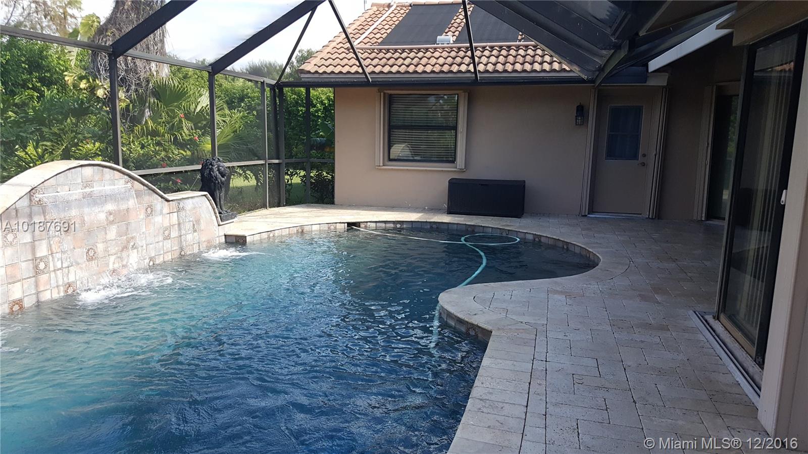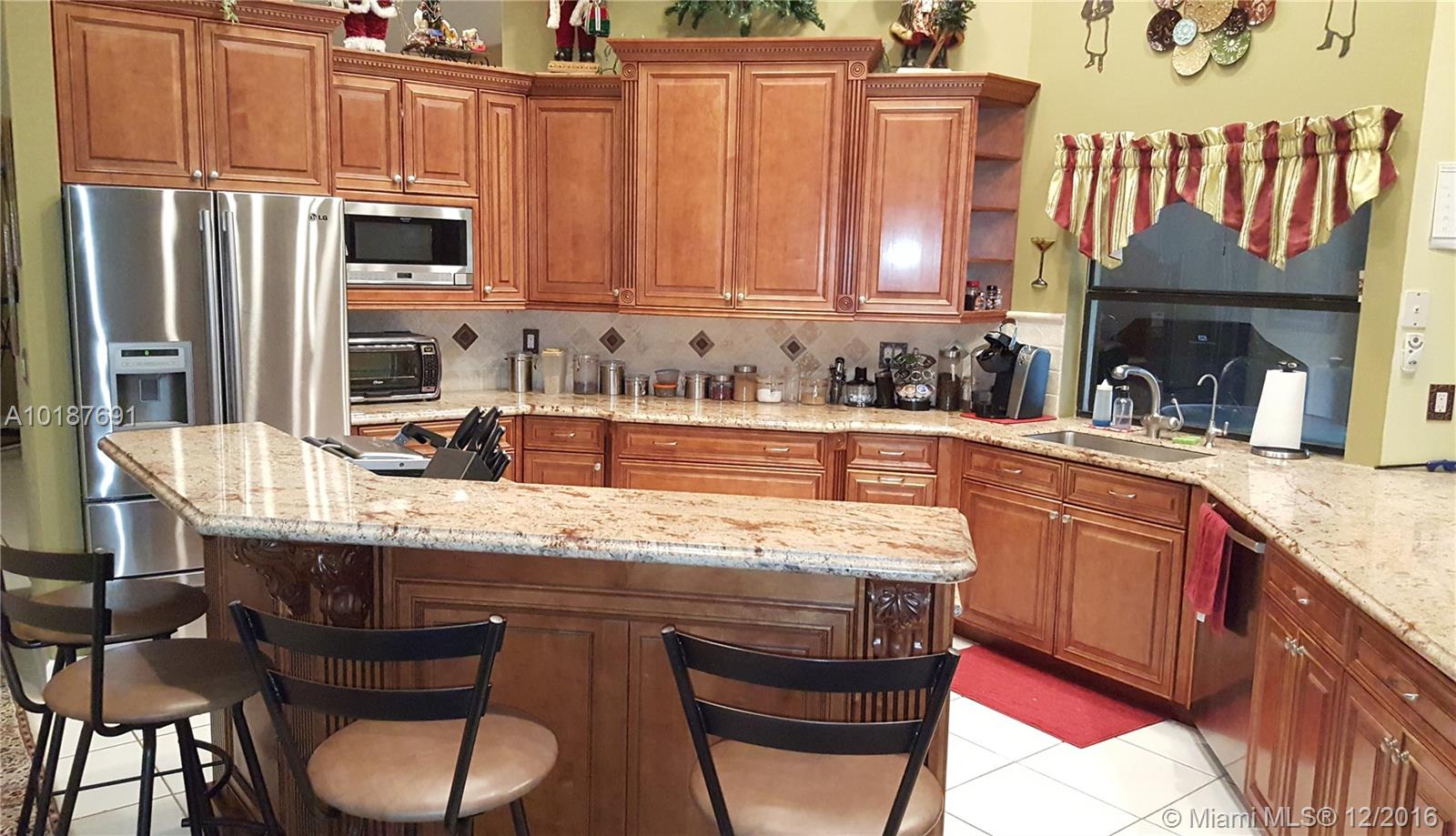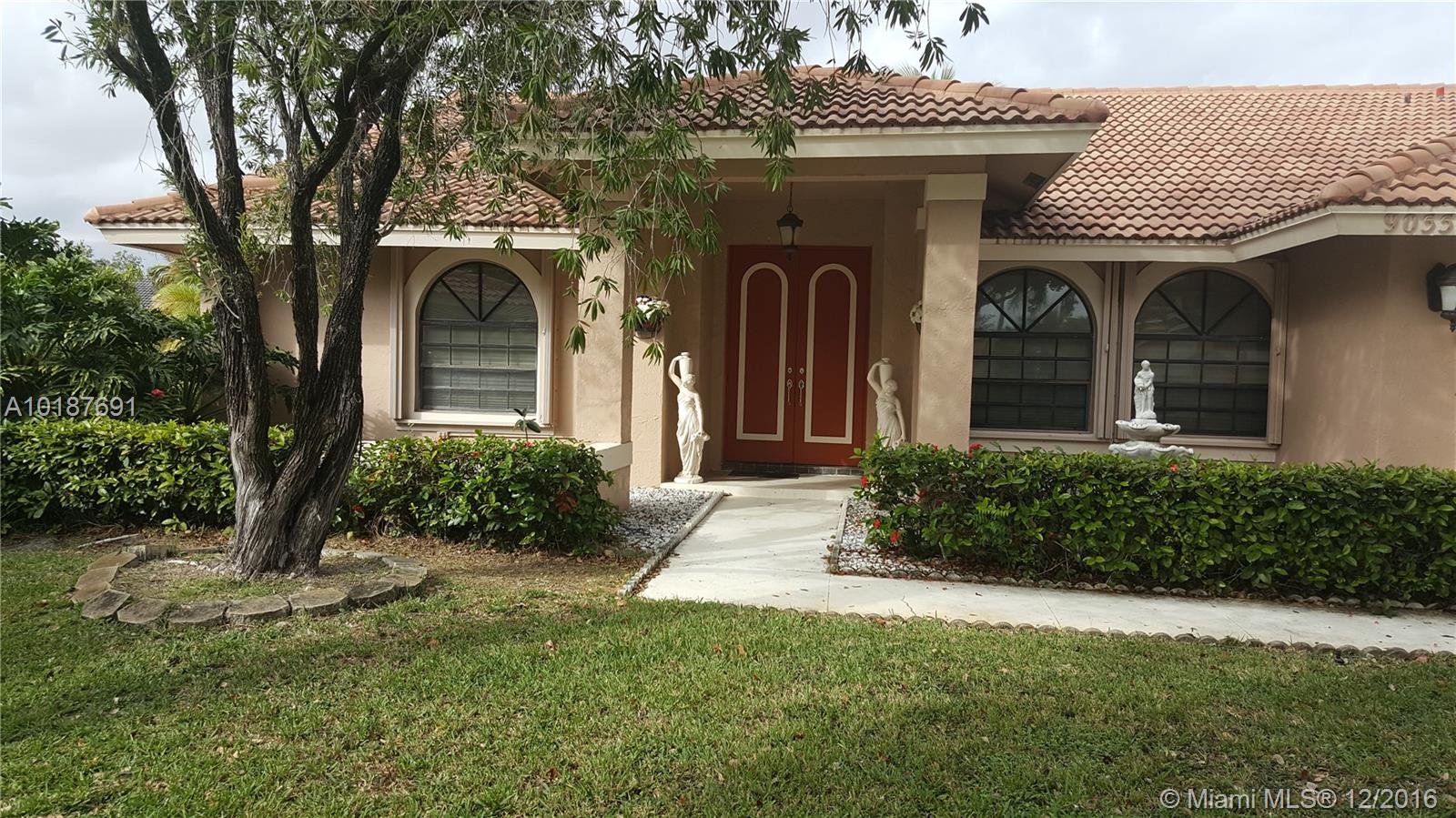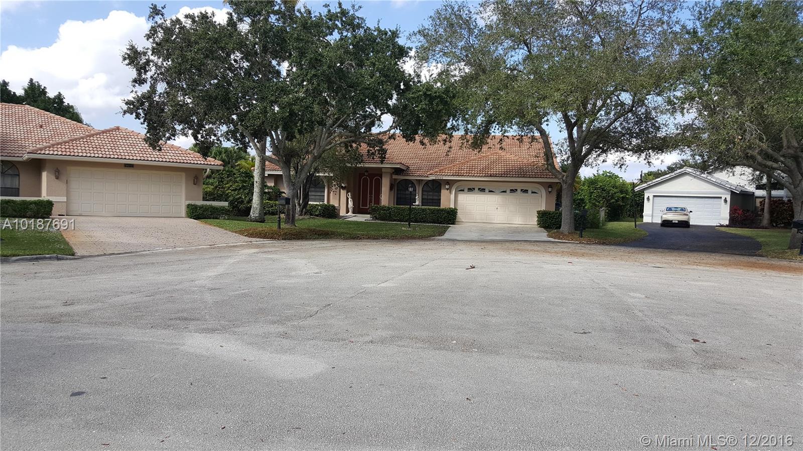 This gorgeous and impressive open floor plan house offers split 4 bed rooms and a den/office, gorgeous kitchen, family room, breakfast nook, formal living room and dining room, 2 and ½ half baths and 2 car garage in a private lush gated community located in the most highly sought location in Coral Springs. It has a pool with water fall, salt generated chlorine and solar water heating system. Tile throughout the house and carpet in the bedrooms. The backyard is fenced with tall hedges for privacy.