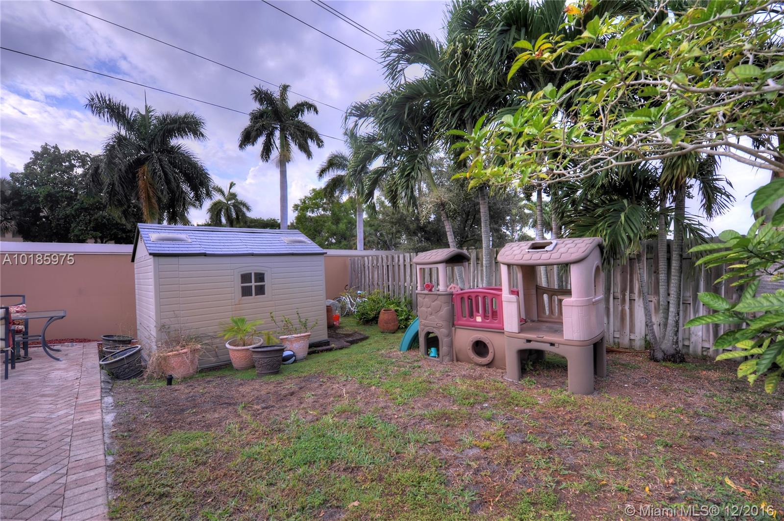 A butterfly garden greets you as you arrive at your move in ready 4/2 home located on a cul-de-sac in Pembroke Pines. House features a large free form pool with kiddie fence. Upgraded kitchen w/granite countertops & backsplash, and wood cabinets has pass thru to back patio to make entertaining easier. Master bedroom has 2 closets, upgraded bathroom has a whirlpool tub. Oversized 1.5 car garage. Hurricane panels. Guest bath opens to pool. Gas heater 2 mos. Impact window master bedroom west side.