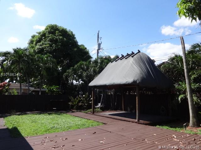 This jewel of a home is sure to catch your eye while driving by for a perfect match! This lovely home features 4b / 2b in the heart of Hialeah. First time home buyers not a problem at all, serene finishes with pristine flooring. Large kitchen Exterior features circular artistic concrete driveway, spanish barrel tile roof, front porch with sitting area to enjoy lovely views. Exterior features tiki hut entertainment area, with wooden deck, tiki bar for those hawaiian luau parties which are sure to be fun!