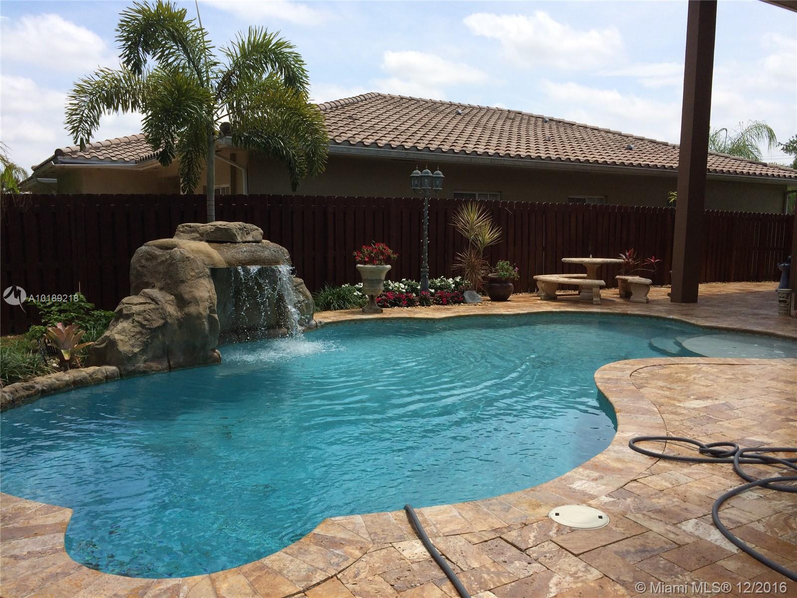Super remodeled 5 BR, 3 Bath pool home in Natalie's Cove of Cooper City. Gourmet kitchen w/granite counters, ss steel appliances, upgraded cabinetry. Gorgeous tropically landscaped fenced yard w/pool, travertine marble patio & covered area for all weather enjoyment. Accord shutters, alarm, many upgrades. Great quiet location on cul de sac, near park. Super Cooper City school set & very near superb charter & parochial schools. Close to everything, shopping, dining, parks, hospitals & I-75 for easy commute