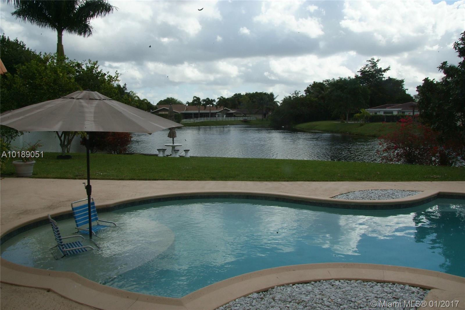Beautiful home in sought after Jacaranda Golf club. Open floor plan with lots of natural light and breezes from the lake. Has updated kitchen with granite counter tops and stainless steel appliances. Four large bedrooms , family room open to kitchen and dining area with amazing lake view.. large front and back yard with fruit trees, all on a quiet culdesac . Home has solar water heating. The garden is watered form the lake. Home is Close to shopping, groceries and restaurants. Enjoy easy Florida living.