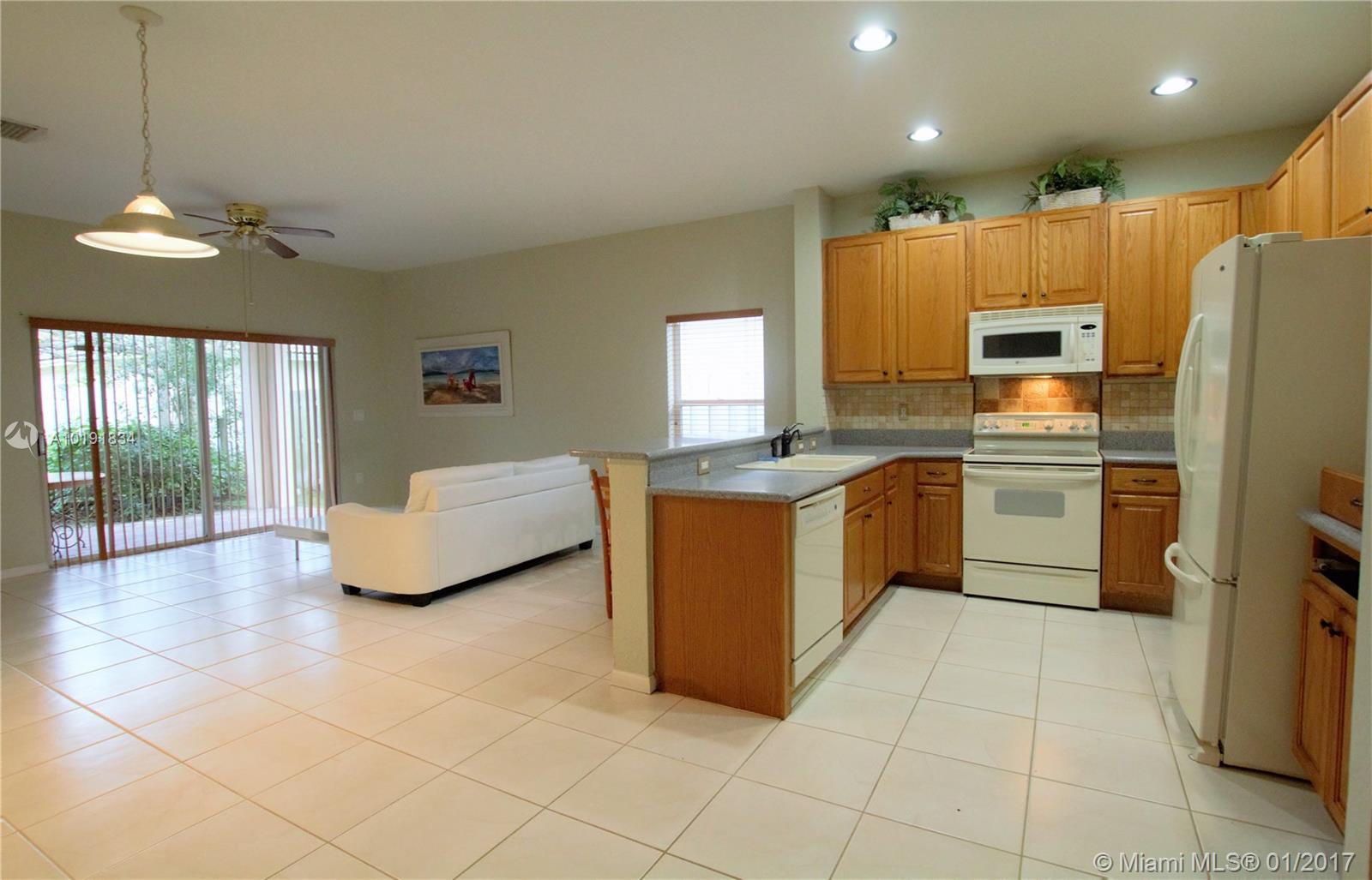 West Miramar, Monarch Lakes gated community of Vineyards One story model home with 4 full bedrooms and 2 full baths. Covered back patio area. Entrance leads to Formal Living and Dining room. Great Room boasts an updated open kitchen with Corian counters, breakfast nook and Family Room. Master Suite leads to back patio. Custom vanity in the second bath. Family room fitted w/custom electrical, surround sound outlets, cable, and Ethernet jacks to accommodate mounted entertainment system. Excellent Schools.