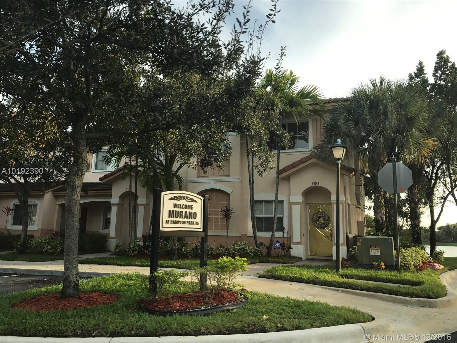 NICE AND SPACIOUS TOWNHOUSE LOCATED IN MURANO AT HAMPTON PARK. PROPERTY HAS 2 MASTER BEDROOMS WITH THEIR OWN FULL BATH PLUS A 1/2 BATH FOR VISITORS ON FIRST FLOOR. KITCHEN WITH GRANITE COUNTER TOPS, WASHER AND DRYER INSIDE THE UNIT AND TILE FLOORS ON FIRST FLOOR. CONVENIENTLY LOCATED NEAR MAJOR HIGHWAYS, SHOPPING AND RESTAURANTS. GATED COMMUNITY WITH LOTS OF AMENITIES. GREAT FOR INVESTORS. THIS CORNER UNIT IS VACANT AND READY TO MOVE IN OR RENT.