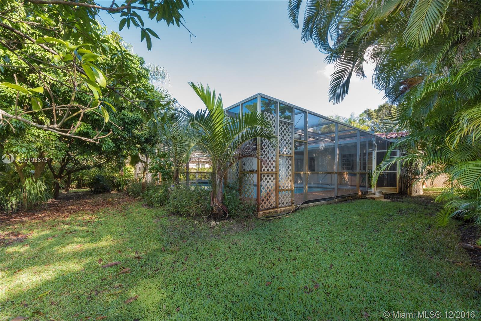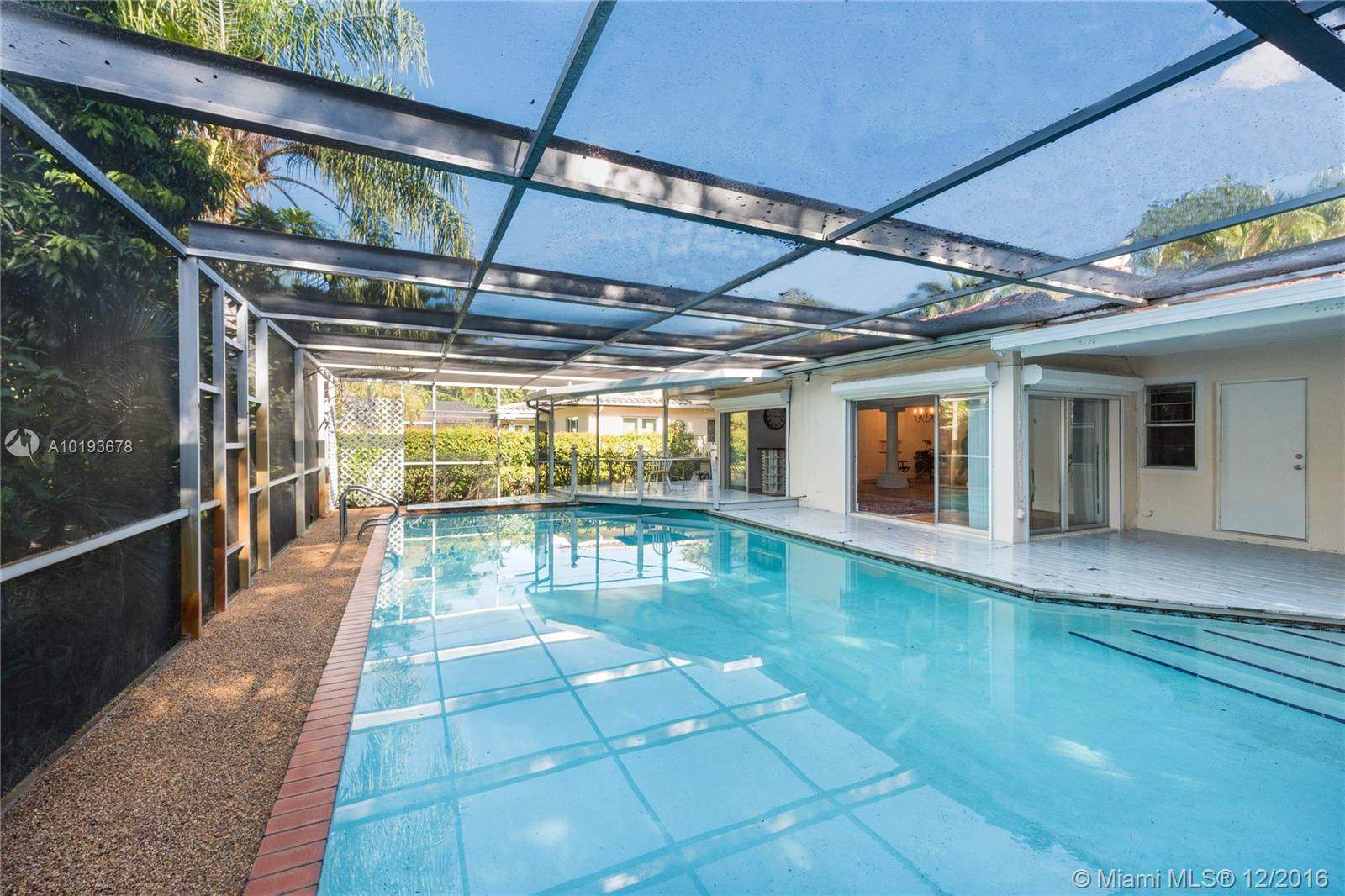 New Listing! 3 bedroom/2 bath home on a 12,693sq' lot. Circular drive. Walled courtyard and covered front porch. Foyer entry that leads to LR, DR, and Family room. Very open floor plan. Views though glass doors to heated, screened pool and lushly landscaped yard. 1-car garage. All bedrooms together on south side. Large closets in each. Office area next to all white kitchen. Home needs updating and is priced at land value. Estate sale and subject to multiple heirs approval. Firm price or higher expected.