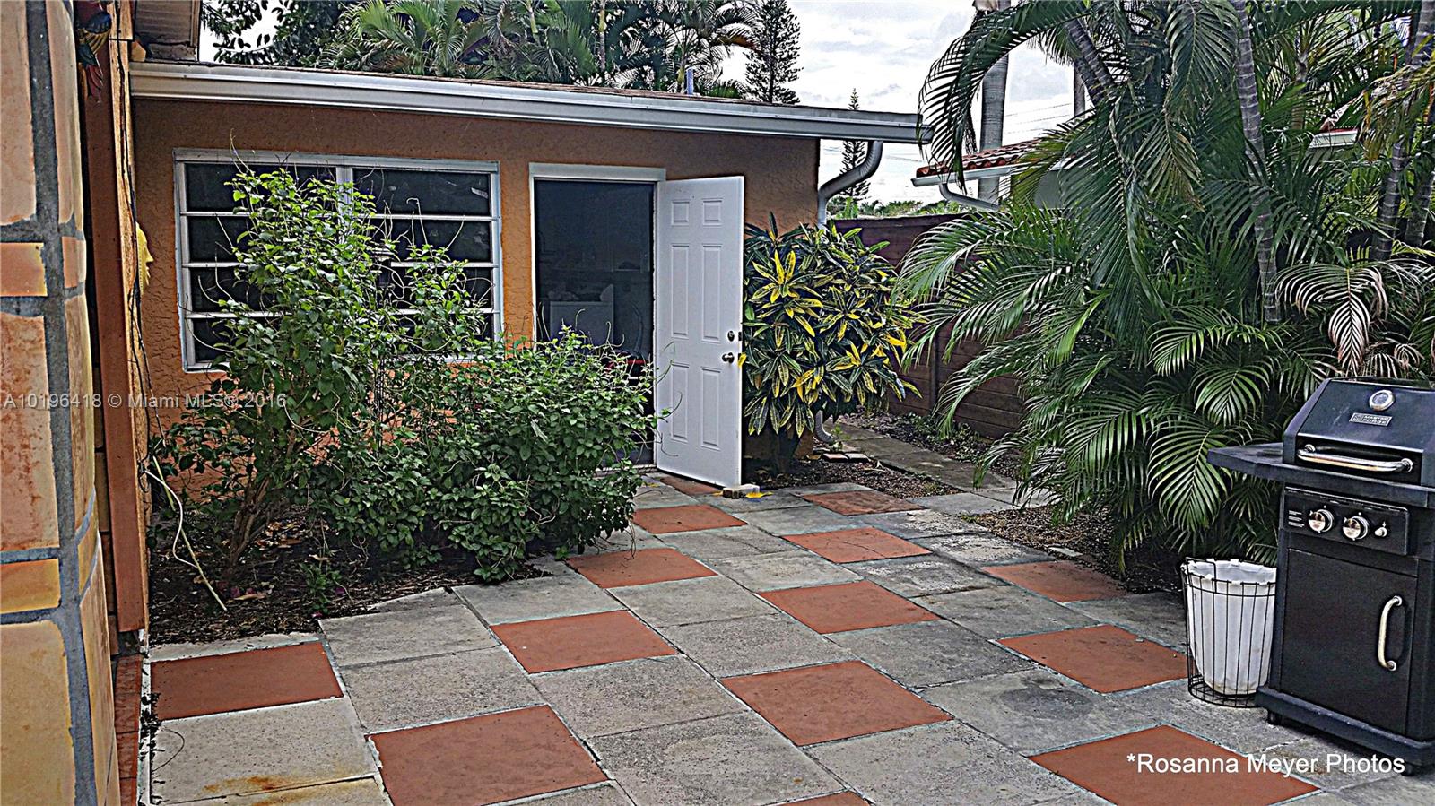 This adorable bungalow offers a private setting, renovated 2 bedroom/1 bath home with many upgrades throughout; kitchen with granite tile counters, stainless appliances, updated bath, Spanish tile flooring throughout, Lennox HVAC system, GE electrical panel with an adapter for a mobile generator(included), washer/dryer. French doors can be opened to enjoy the sunny, breezy weather covered patio or swim on your own pool. Wood Fence surrounds this tropical landscaped garden. +- 2 miles to the beach.