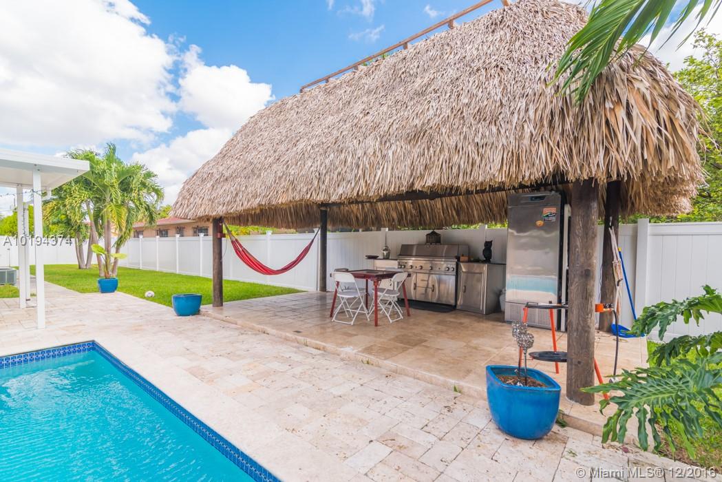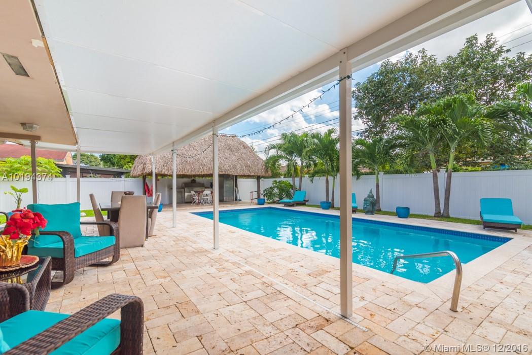Live in this modernly updated home in East Hialeah.House features 5 bedrooms,4 baths, ceramic tile floors, state of the art kitchen with top of the line Viking appliances.Bedrooms are ample with plenty of closet space. Massive yard. Newly tiled and glazed pool. Custom made Tiki Bar with plenty of room to entertain. Property is very private with a surrounding white aluminum fence. Property has a one car garage motorized iron gate with a paved circular driveway.