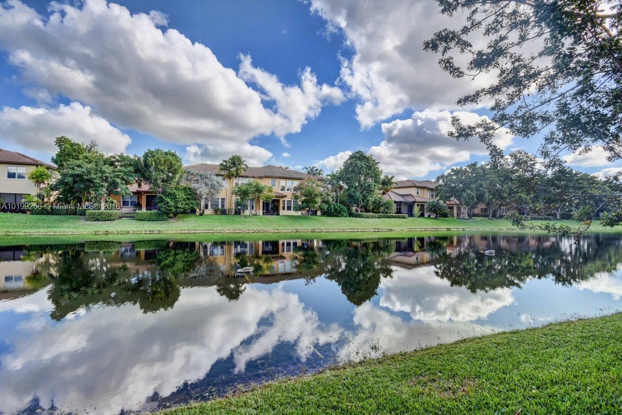 Move-in ready 4/2.5 located in desirable Heron Bay. Beautiful water view! Open floor plan with high volume ceilings, new interior paint + baseboards. Large dining room perfectly placed in front of a very spacious kitchen. Upgraded, large cabinets, gorgeous granite + breakfast bar. Generous master suite with California custom closets. Large guest bedrooms + full bath upstairs! Backyard is perfect for entertaining. Lush landscaping feels like tropical oasis. Resort amenities, A+ schools