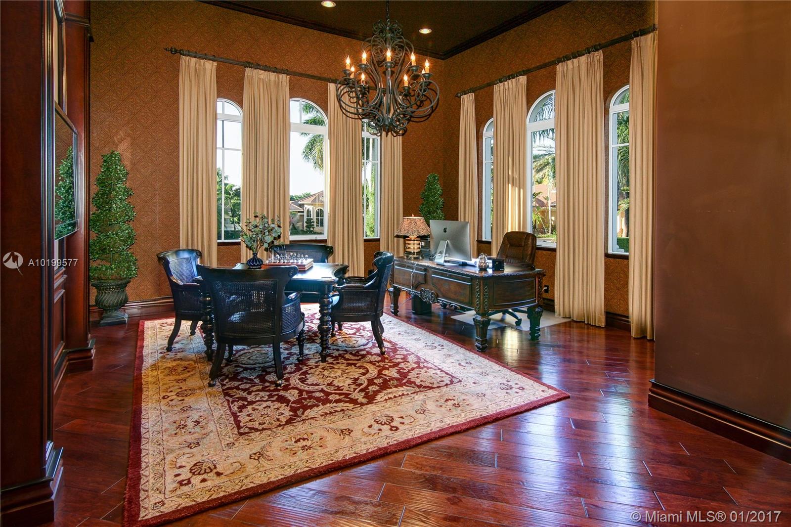Spectacular one-of-a-kind custom built estate situated on a premier cul-de-sac lot with panoramic GOLF VIEWS! Boasting 9,341 square feet of luxurious living area, featuring 6 bedrooms, 7.5 baths, plus den/office, media room, billiard room, and upstairs loft. Beautifully appointed with designer finishes throughout, gourmet kitchen with gas stove & double sub-zero refrigerators, Master bedroom plus one Guest room on the main level, resort style pool and patio, impact windows and doors and much more!