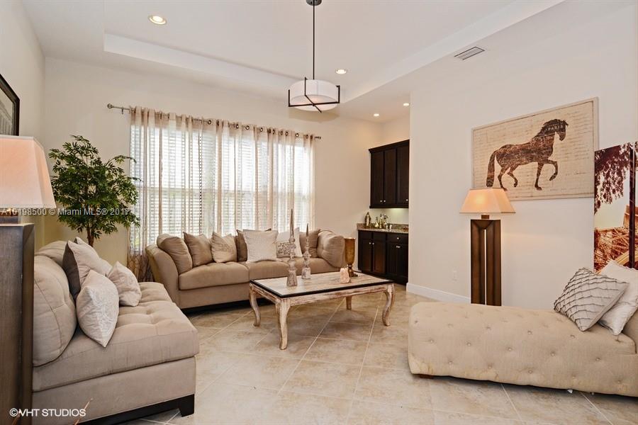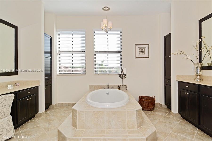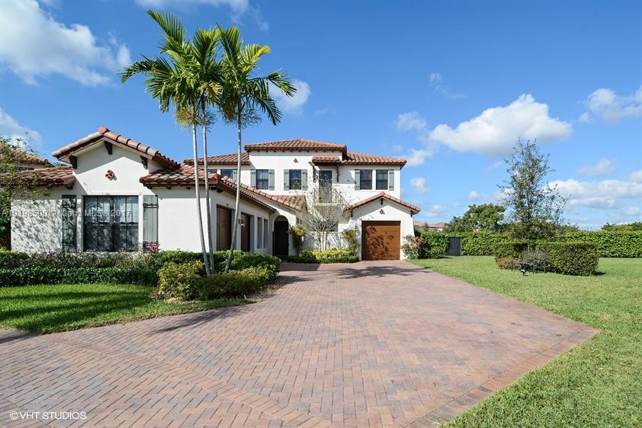 Priced below market value for this home! Beautiful DELANO model on PRIVATE, sought-after 1/2 ACRE lake-front (19,025sf) lot. 2-room guest suite/Casita. 3 car garage. Back yard is entertainer's delight with contemporary 37' long heated pool/spa, huge travertine patio, mosquito misting system, fenced/privacy hedge. Gorgeous kitchen, oversized island, butler's pantry. 20x20 tile. You'll love the HIS/HERS master bath. Marble in baths. ALL Impact glass. Among largest lots in Resort-style Monterra. A schools
