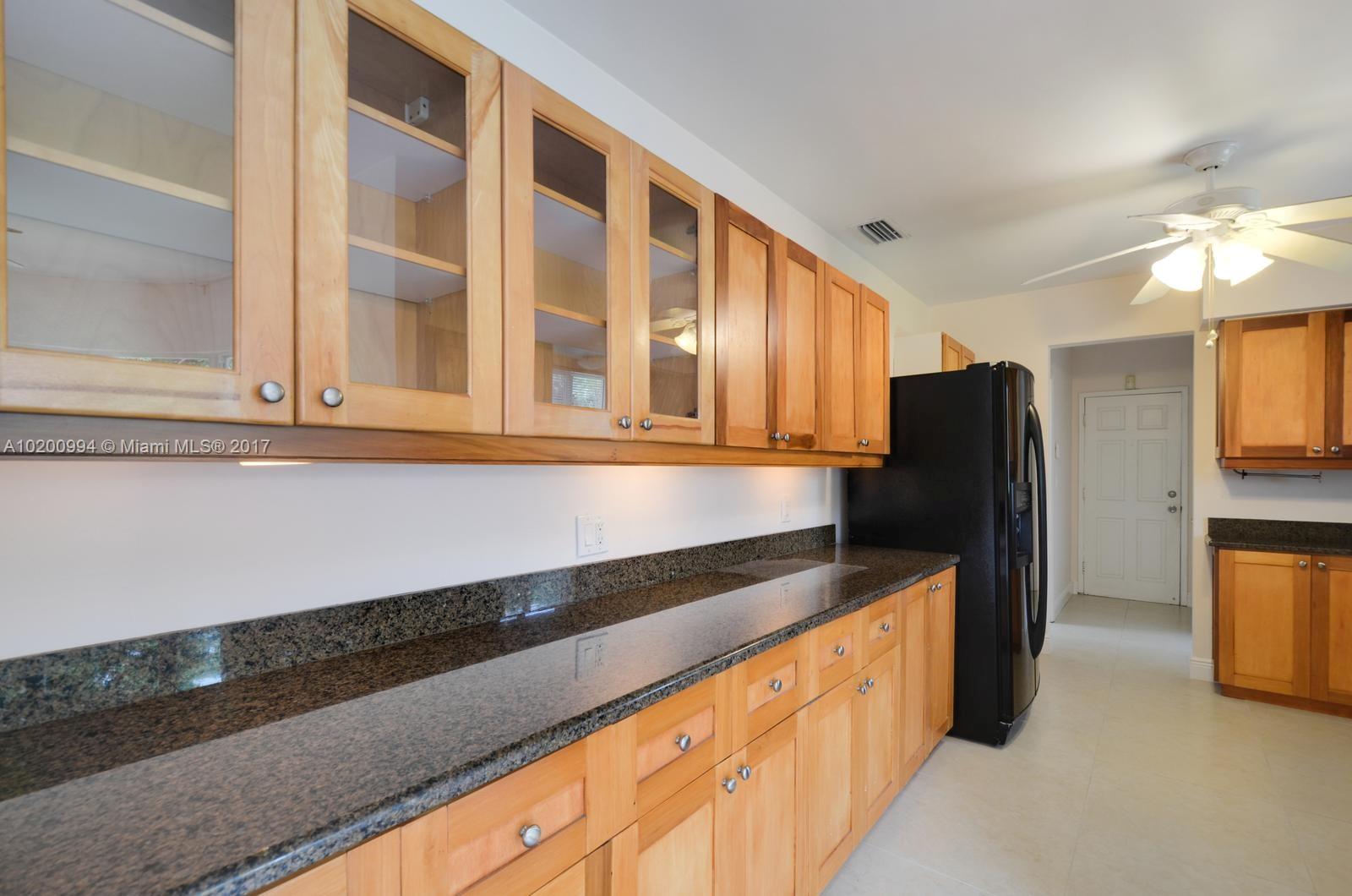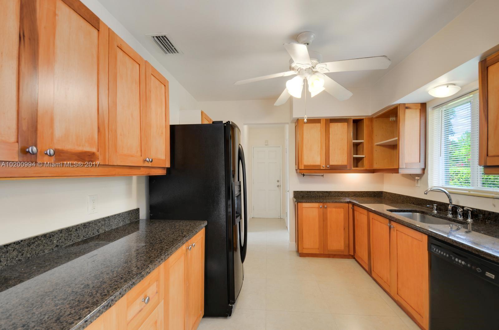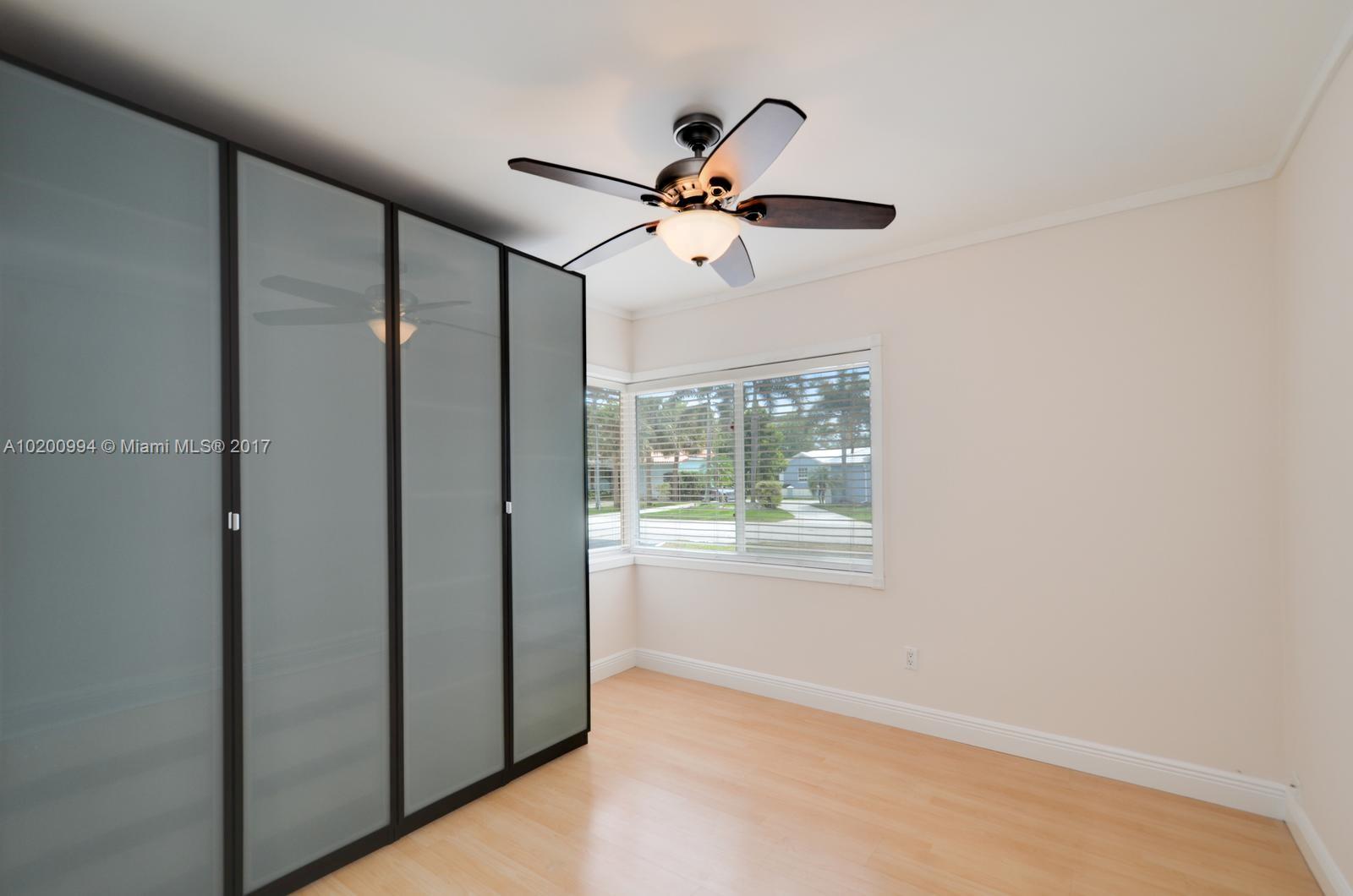 Smartly updated home features sleek mid-century lines & accents. Located in quiet pocket of Miami Shores on corner lot w/circular drive. Charming porch entry & large LR/FR w/wood burning fireplace & custom shelving. Sliding doors to patio & fully-fenced backyard. Completely remodeled kitchen & dramatic formal DR w/step up and wrap-around curved window wall. Split 2/1 private 1/1 off kitchen. Hardwood floors throughout. ALL impact windows/doors. Wide 2-car garage w/laundry, alarm system, newer septic.