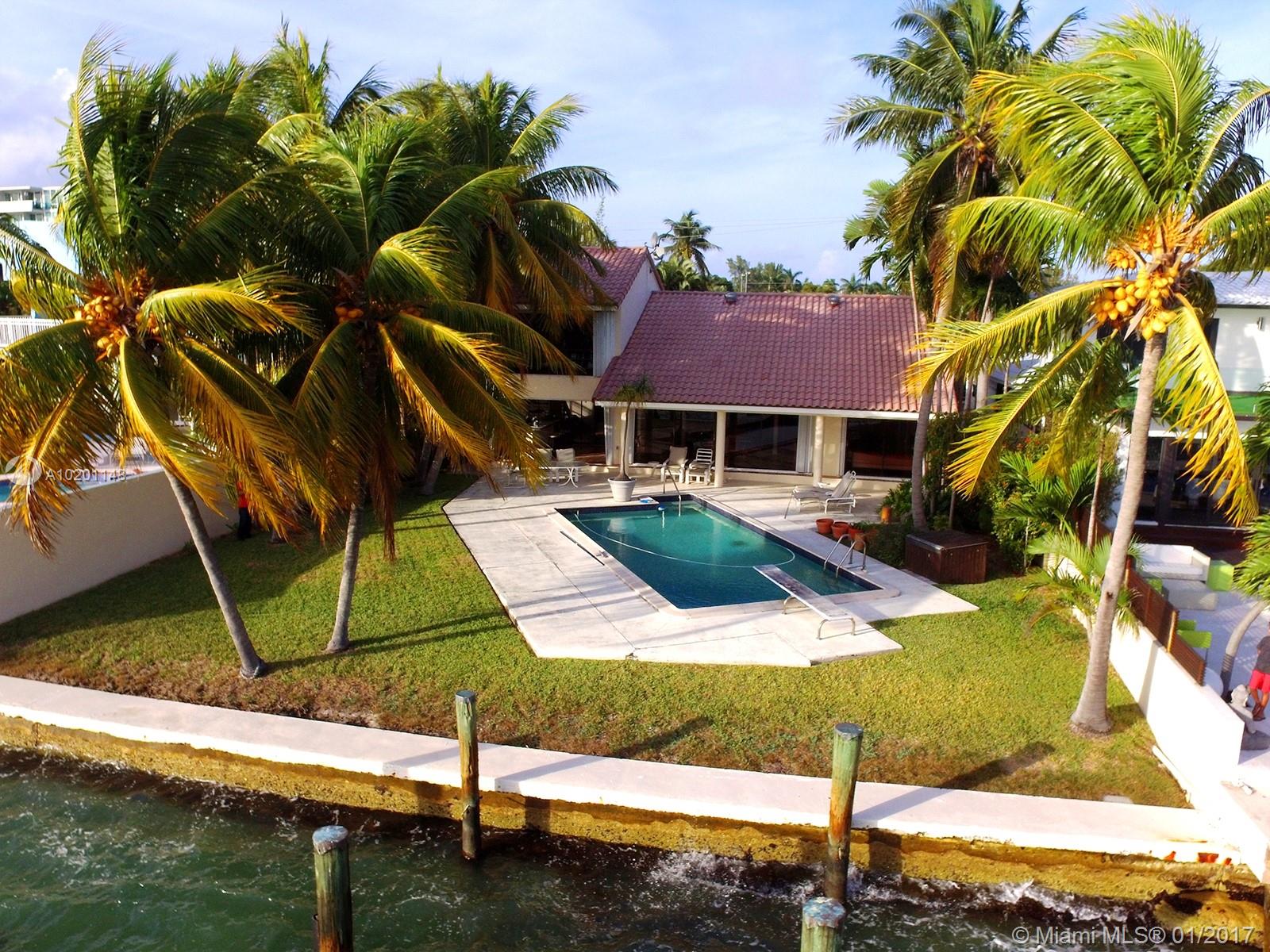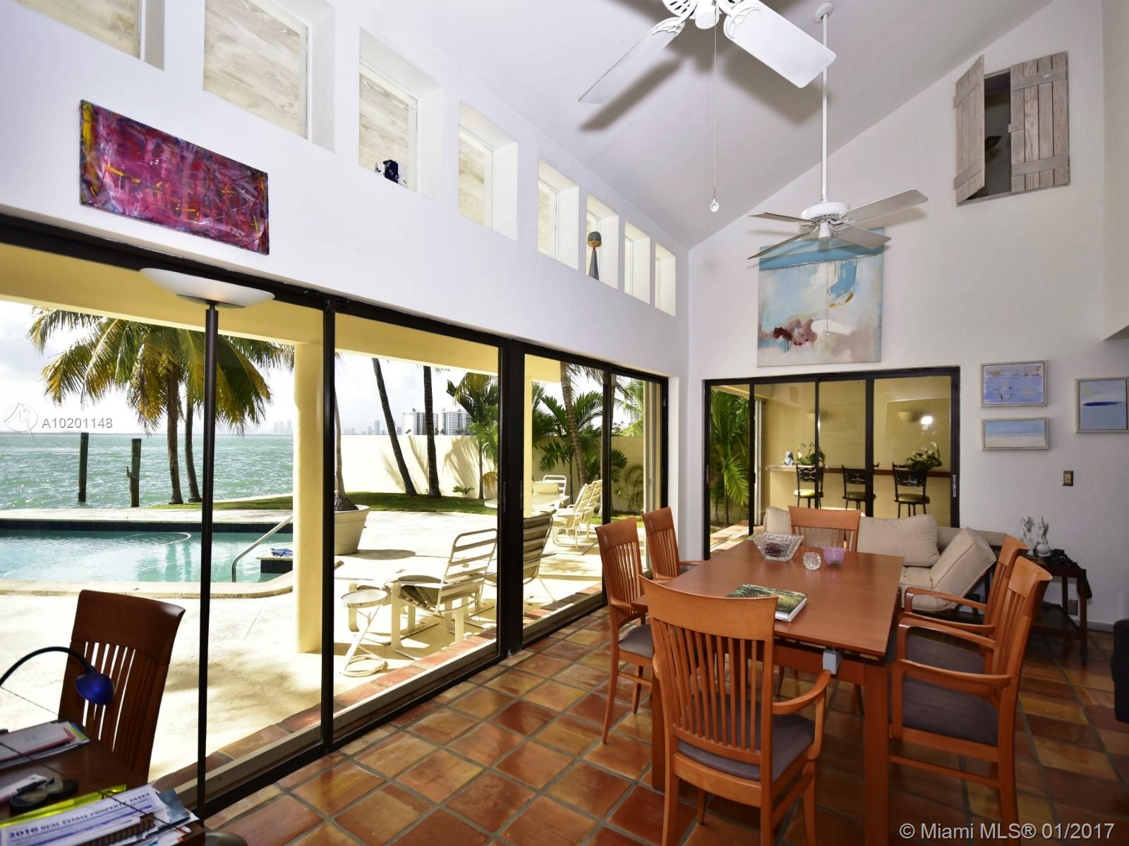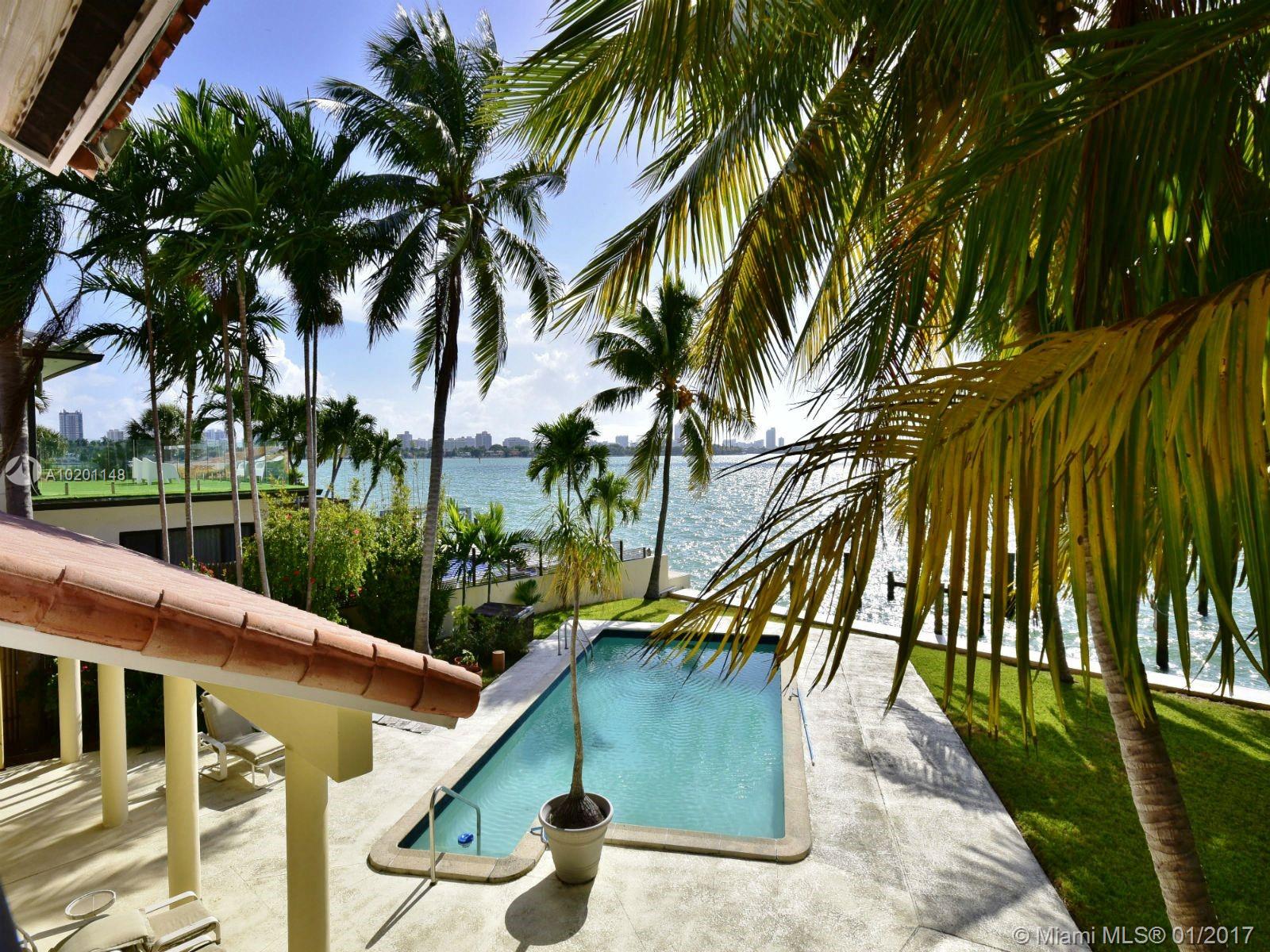 Breathtaking panoramic wide open bay views facing south w/ views of Miami's skyline! Custom-built courtyard home (remodeled in the 80s): 4BR/3.5BA main home + 1/1 guest cottage above a 2-car garage. Vaulted ceilings throughout. Tile floors, great room, open kitchen, separate wing w/ guest bedrooms, separate 2-story wing for master suite, covered outdoor living family room, large bayfront pool & lots of glass for tons of sunlight & gorgeous views. Located at a dead end street. Miami Beach's finest views.