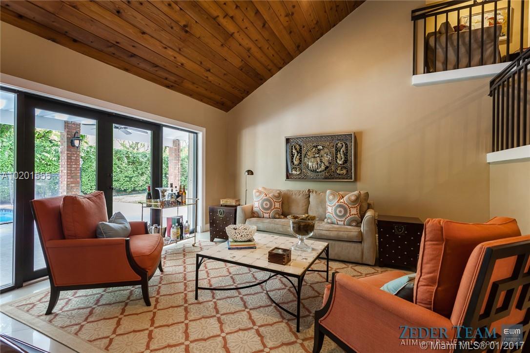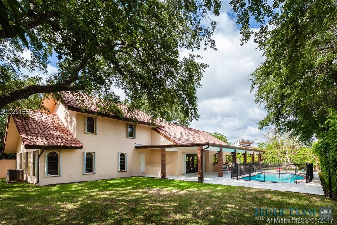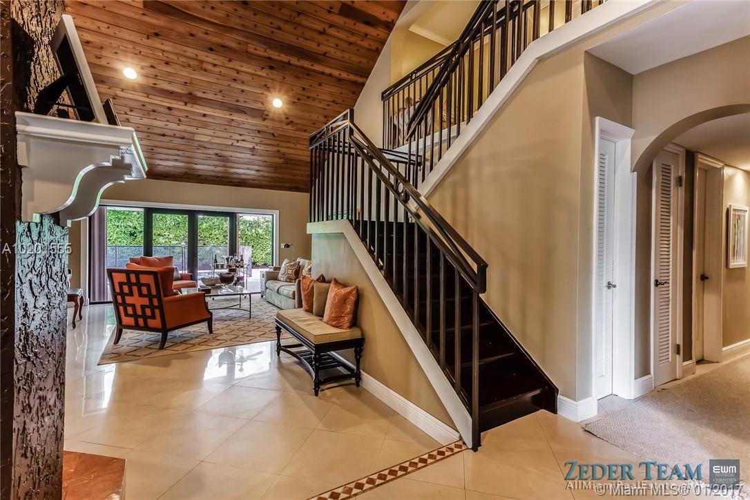 Located in North Pinecrest, this fully renovated corner lot home offers a spacious and open floor plan. The home features marble floors throughout along with a beautiful wood paneled vaulted ceiling over the living room, kitchen, and dining area which all provide views of the swimming pool and backyard. The master suite is on the second floor with a sitting area outside the double door entry. Home also features plenty of parking with a 2 car garage, circular driveway, and additional parking on the side.