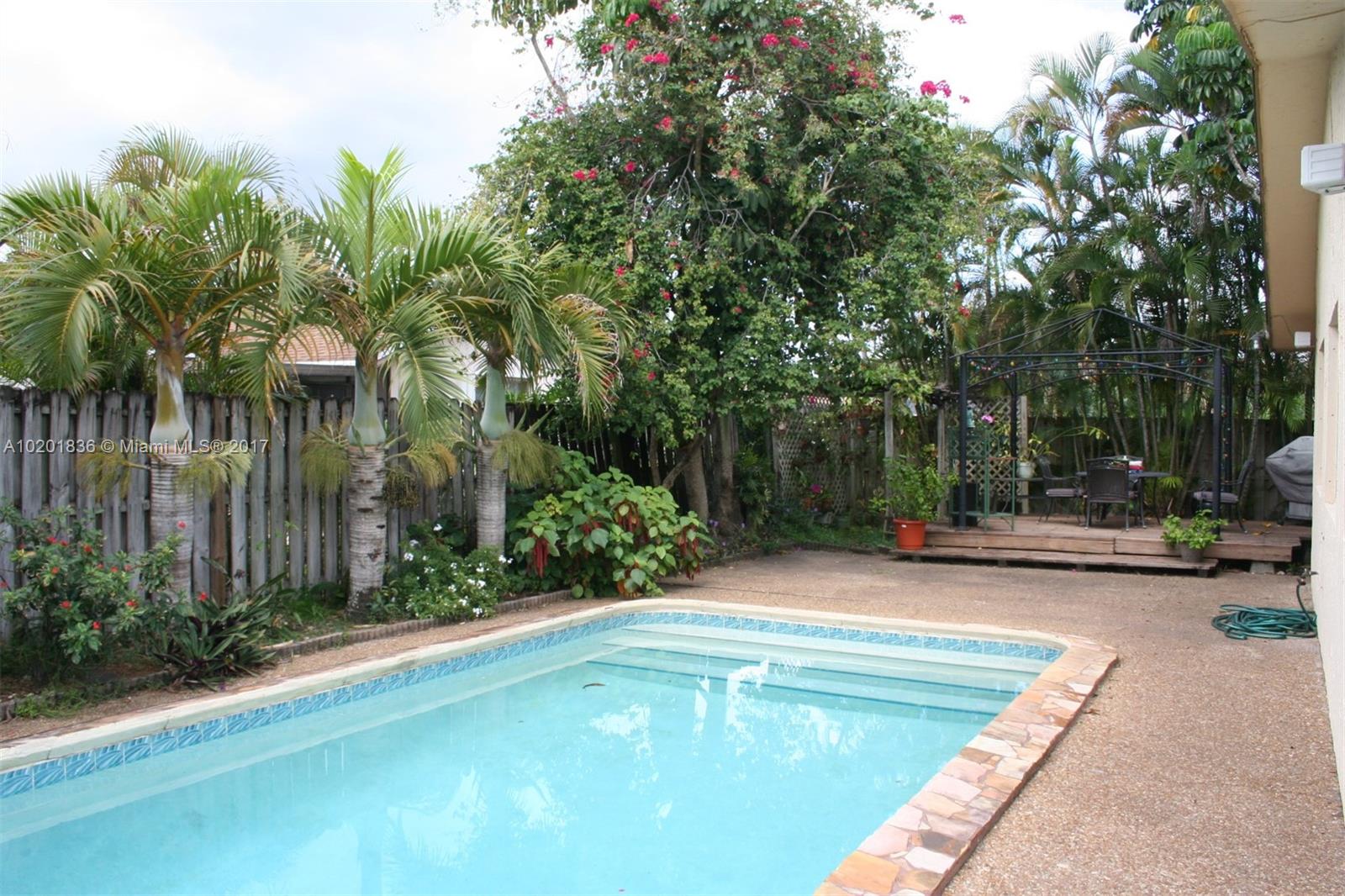 Wonderful 3 bedroom 2 bath pool home conveniently located in a quiet, secluded corner of west Sunrise. Featuring an updated kitchen, huge family room, beautiful pool and deck with gazebo, 1 car garage, fenced yard, vaulted ceilings, and much more. Woodstock features no HOA.