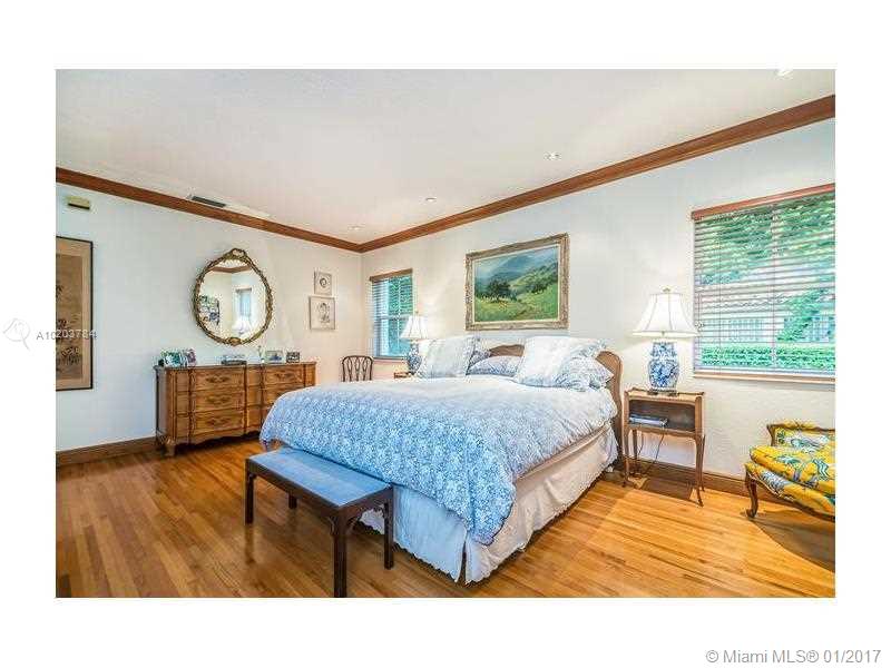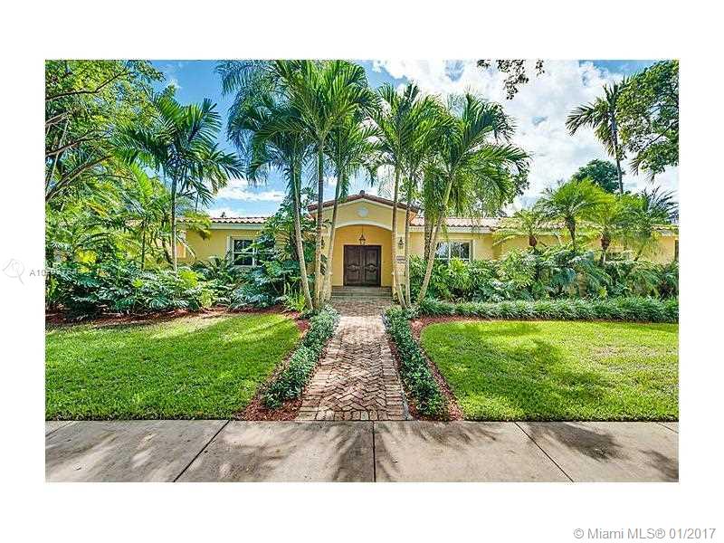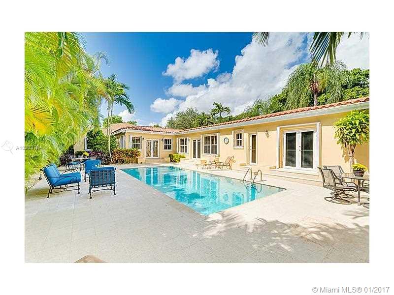 Wonderful South Gables family home on triple plus lot. Featuring 5 bedrooms, 5 baths. Master suite has an extra area for office, gym, nursery or extra closet. 1 bedroom and bath is the perfect in-law or guest area. Kitchen with stainless steel appliances and granite, custom wine cellar, hardwood floors, Chicago brick driveway and entrance plus beautiful pool/patio area plus generator.