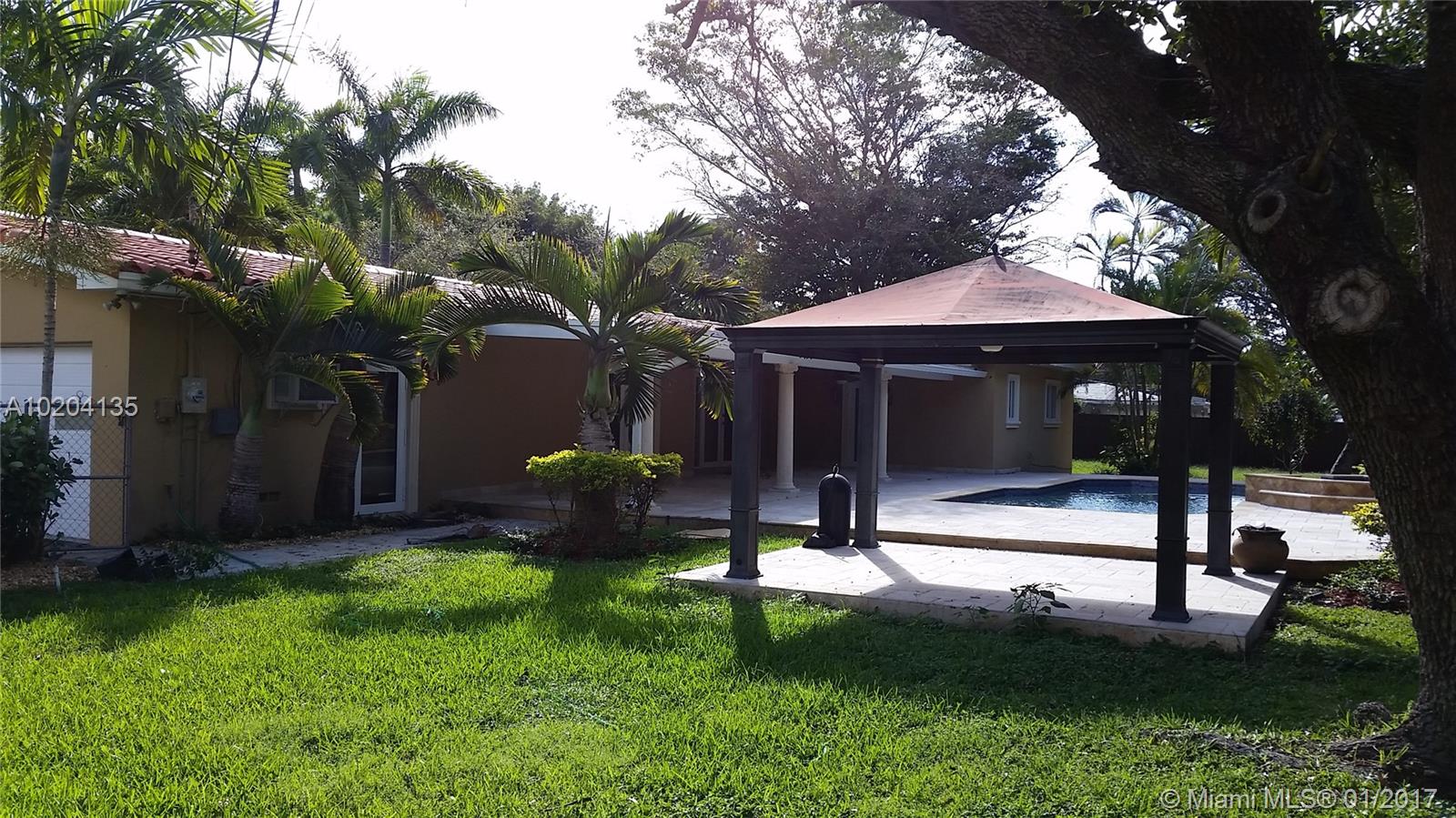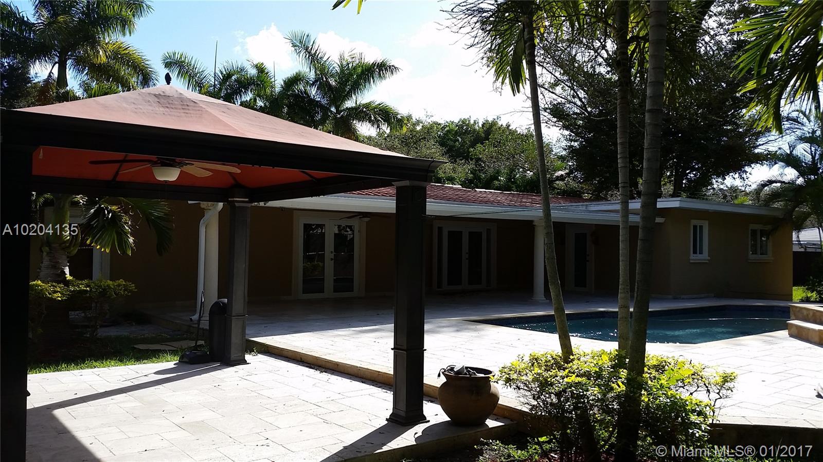 One of the lowest priced houses in all of Pinecrest. Recently renovated. Excellent condition. Close to Pinecrest Elementary and Gulliver. The house has 3 bedrooms and 2 bathrooms with an extra large family room. Impact Windows and Doors throughout! All stainless steel appliances and 2 French doors that lead to the covered terrace, gazebo, and pool with Jacuzzi. House has been maintained extremely well. The house sits on a builders half an acre lot and is turn key ready. Priced to sell, won't last!