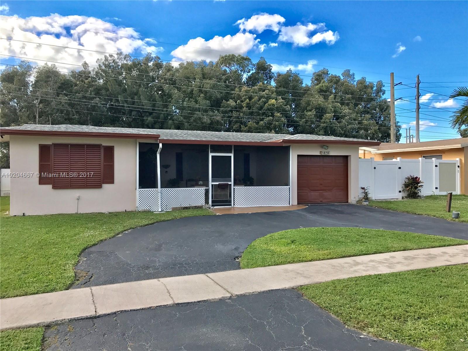 This single family home is located in the heart of Pembroke Pines and has no HOA fees! This home offers a family room, circular driveway, screened porch, granite counter tops in kitchen, tile in common areas, walk in closets in bedrooms, newer appliances and roof, pool and an over sized fenced back yard overlooking a peaceful park with mature trees. Central location, close to hospital, mall, schools and park.