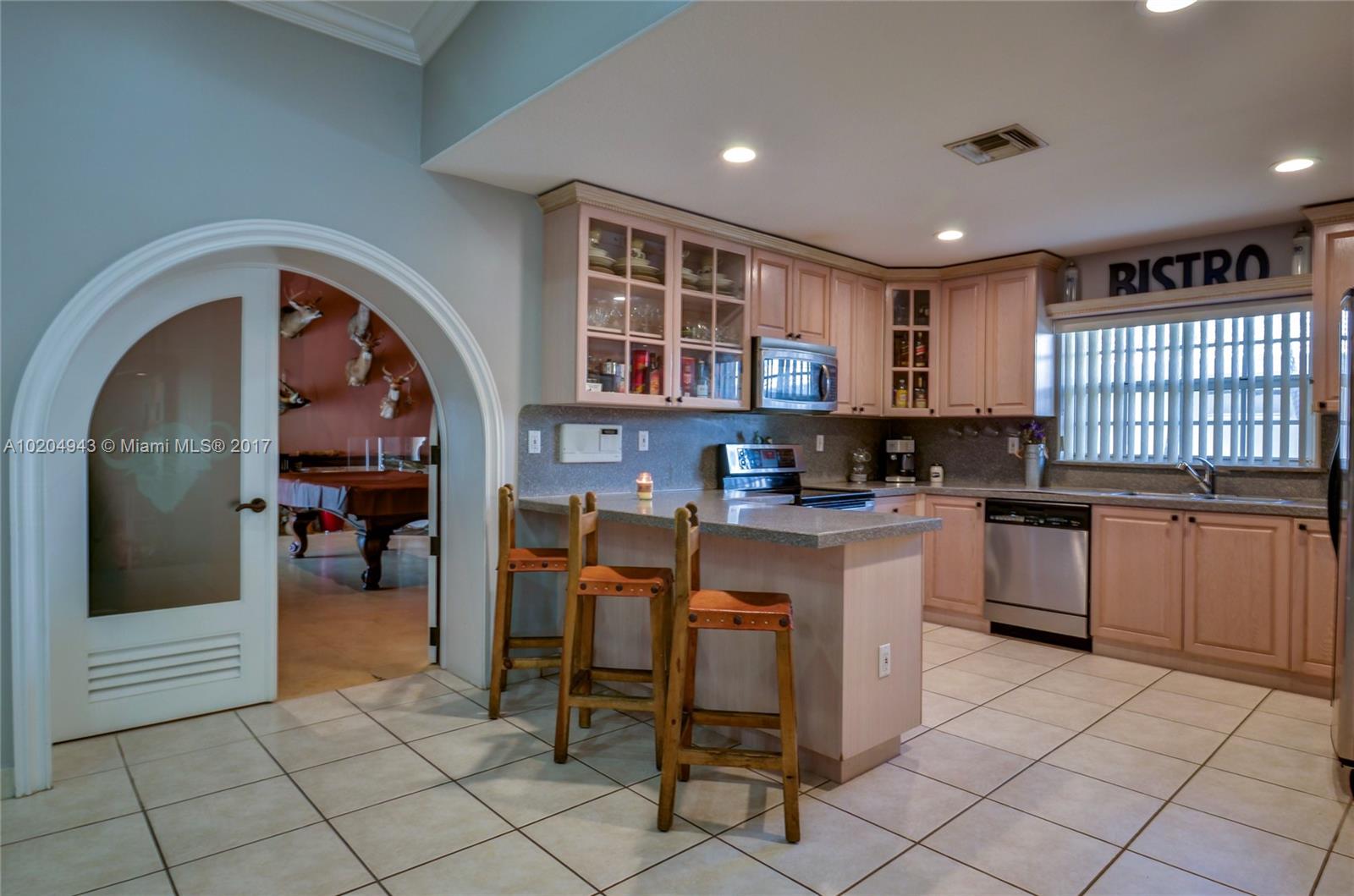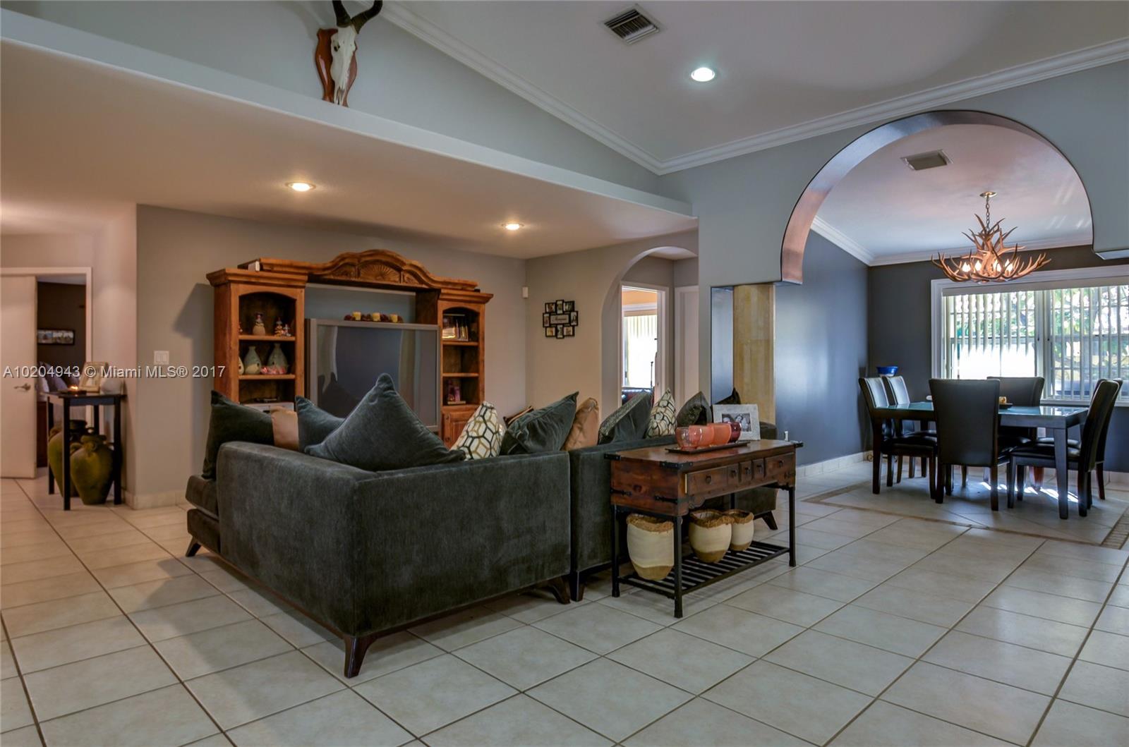 Exquisite custom home in the heart of Doral! Features open light, bright floor plan,volume ceiling entertainment area wired for home theatre.Formal living, dining rooms.Spectacular master suite.Etched glass doors/mirrors .Room for pool/patio entertainment.Home sits on corner lot great proximity to Golf,Trump Natl. Doral, Downtown Doral, shopping malls and Fla. Tpk. Exclusive area of Doral does not require assn. membership or fees. $2000.00 BONUS TO BUYERS AGENT. Priced to sell. Approved buyers only