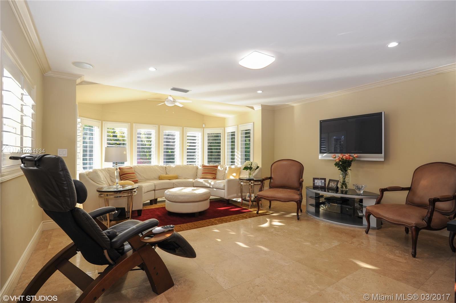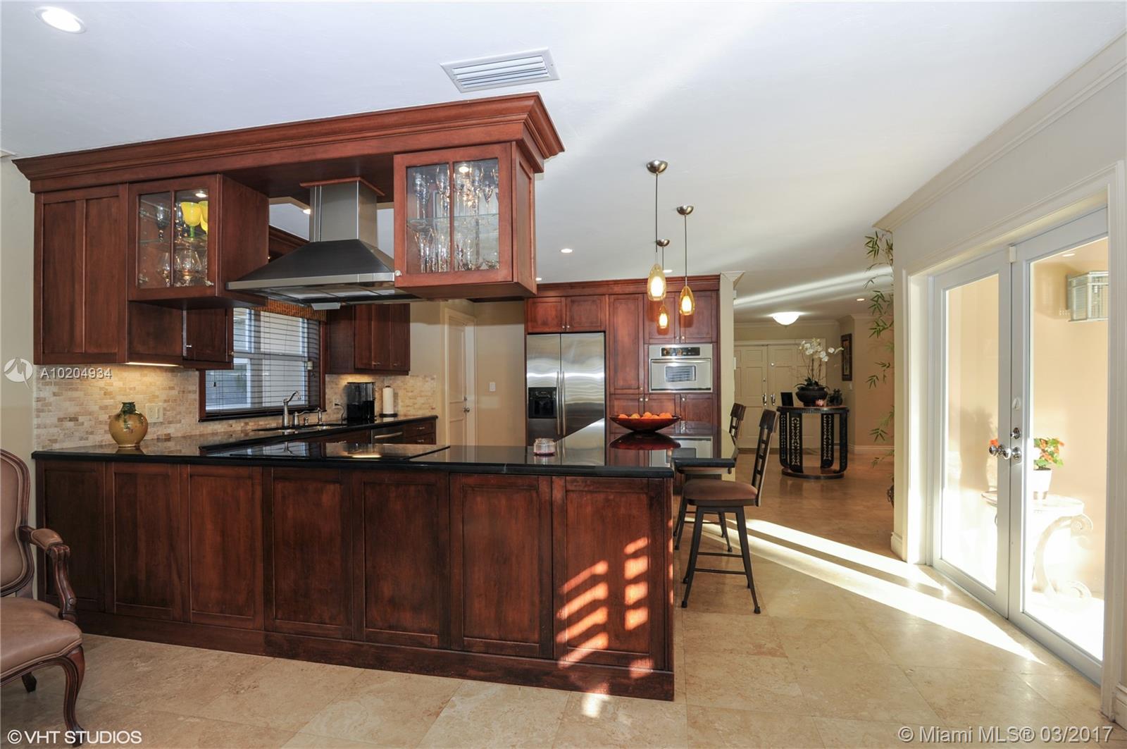 Magnificent canal home w/great curb appeal & nicely updated. Located on quiet residential street, it features spacious living rm & dining rm, gourmet kitchen/wood cabinets & granite countertops opens to the family rm & overlooks exquisite pool & covered patio area. Marble floors except carpet in 2 bedrooms, crown molding & impact doors, closets galore, ample master bedroom has large walk-in closet. Natural light & very big & well maintained back & side yard for your boat. Circular driveway. AHS warranty.