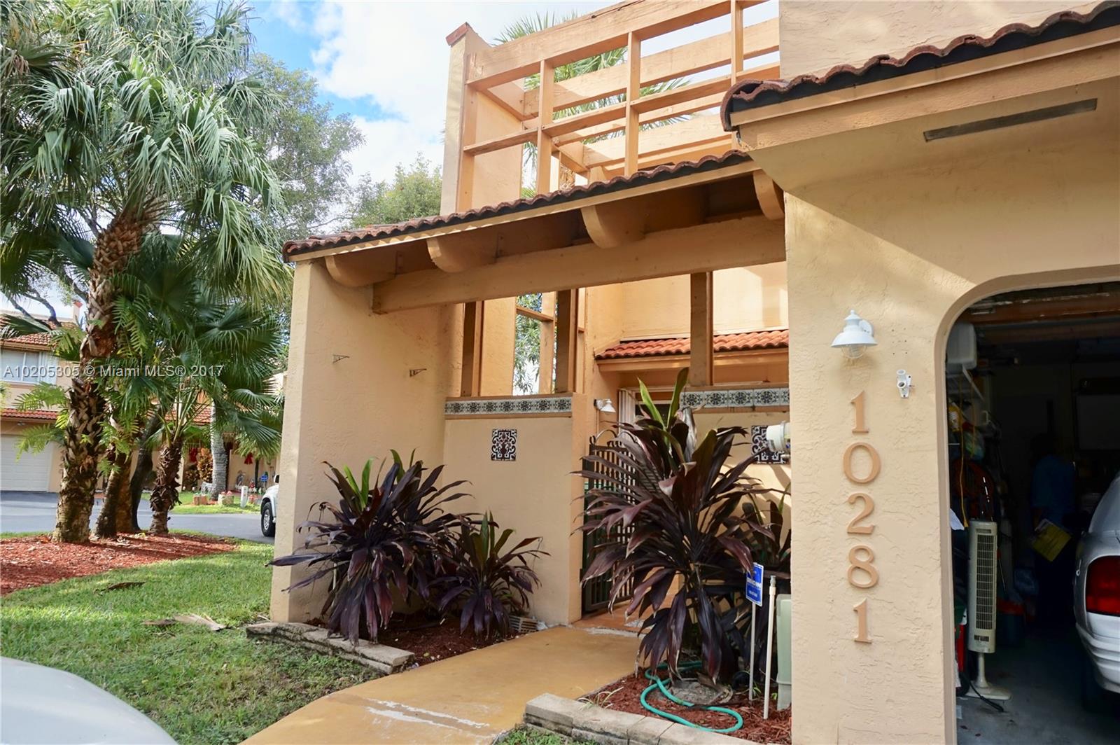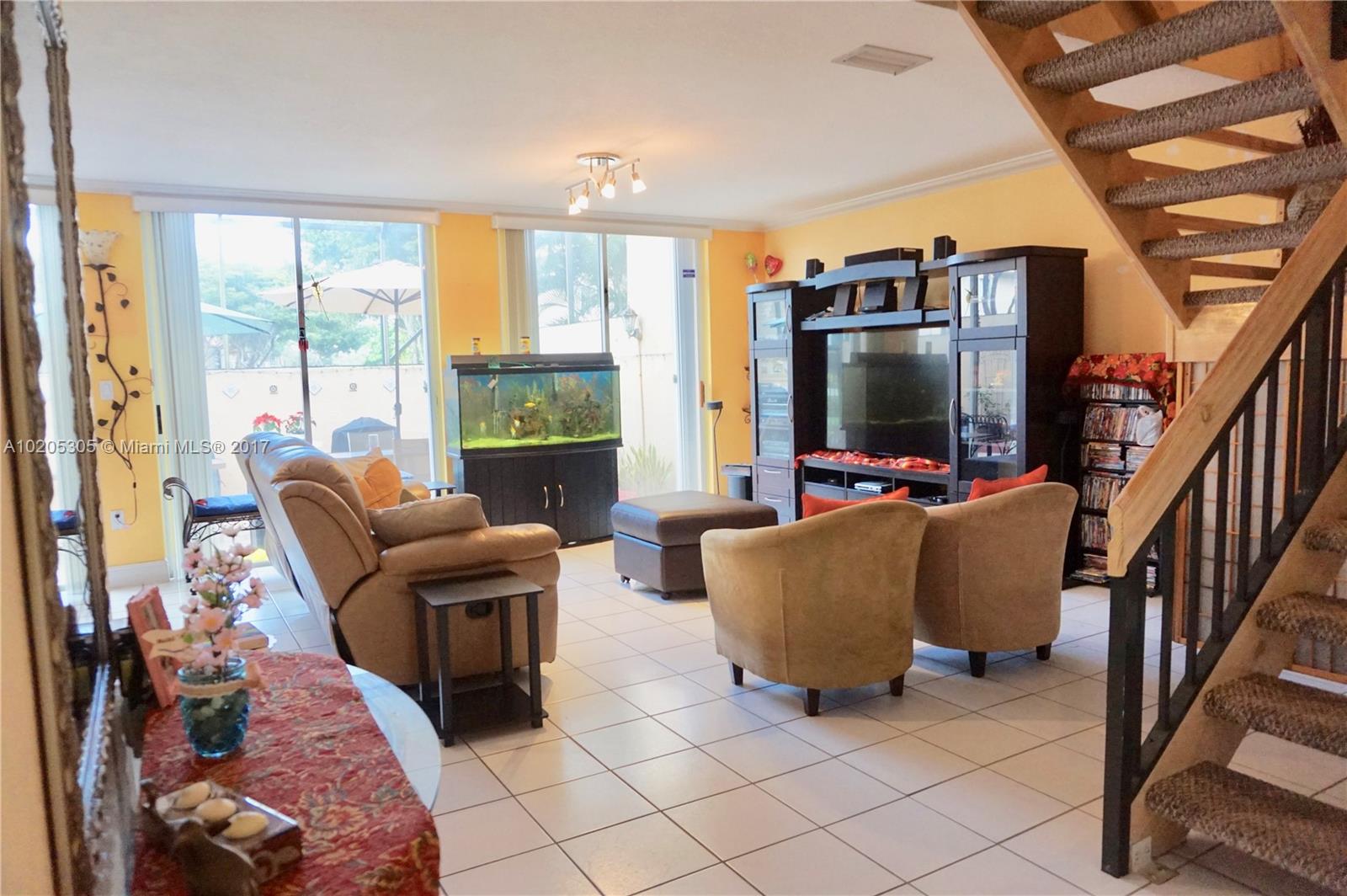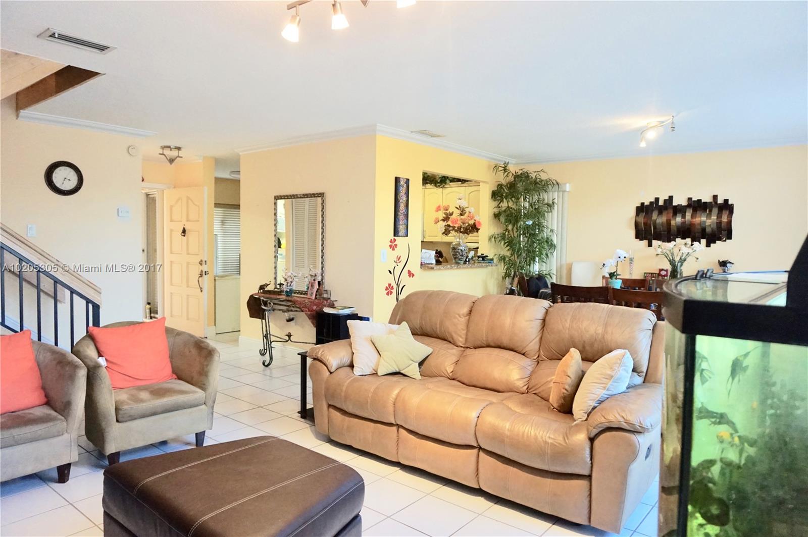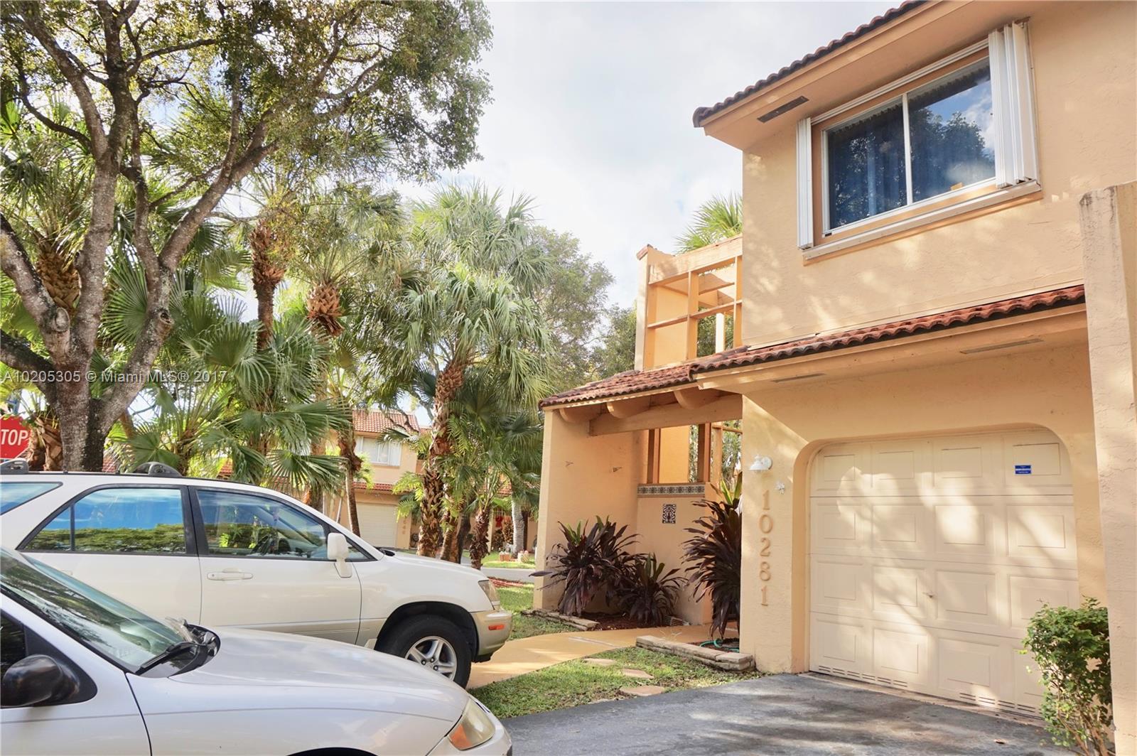 STUNNING CORNER TOWNHOUSE LOCATED IN DESIRABLE GATED COMMUNITY OF DORAL PLACE. WITH 3 BEDROOM, 2.5 BATHROOM, 1 CAR GARAGE, ACCORDIAN HURRICANE SHUTTERS THROUGHOUT. THE FIRST FLOOR IS TILED AND THE SECOND FLOOR HAS WOOD. LOW MONTHLY FEE INCLUDE DORAL PARK COUNTRY CLUB. AMMENTIES HEATED POOL, RESTURANTS, LOUNGE BAR, TENNIS, SAUNA, GYM AND 24 HOUR GUARD.