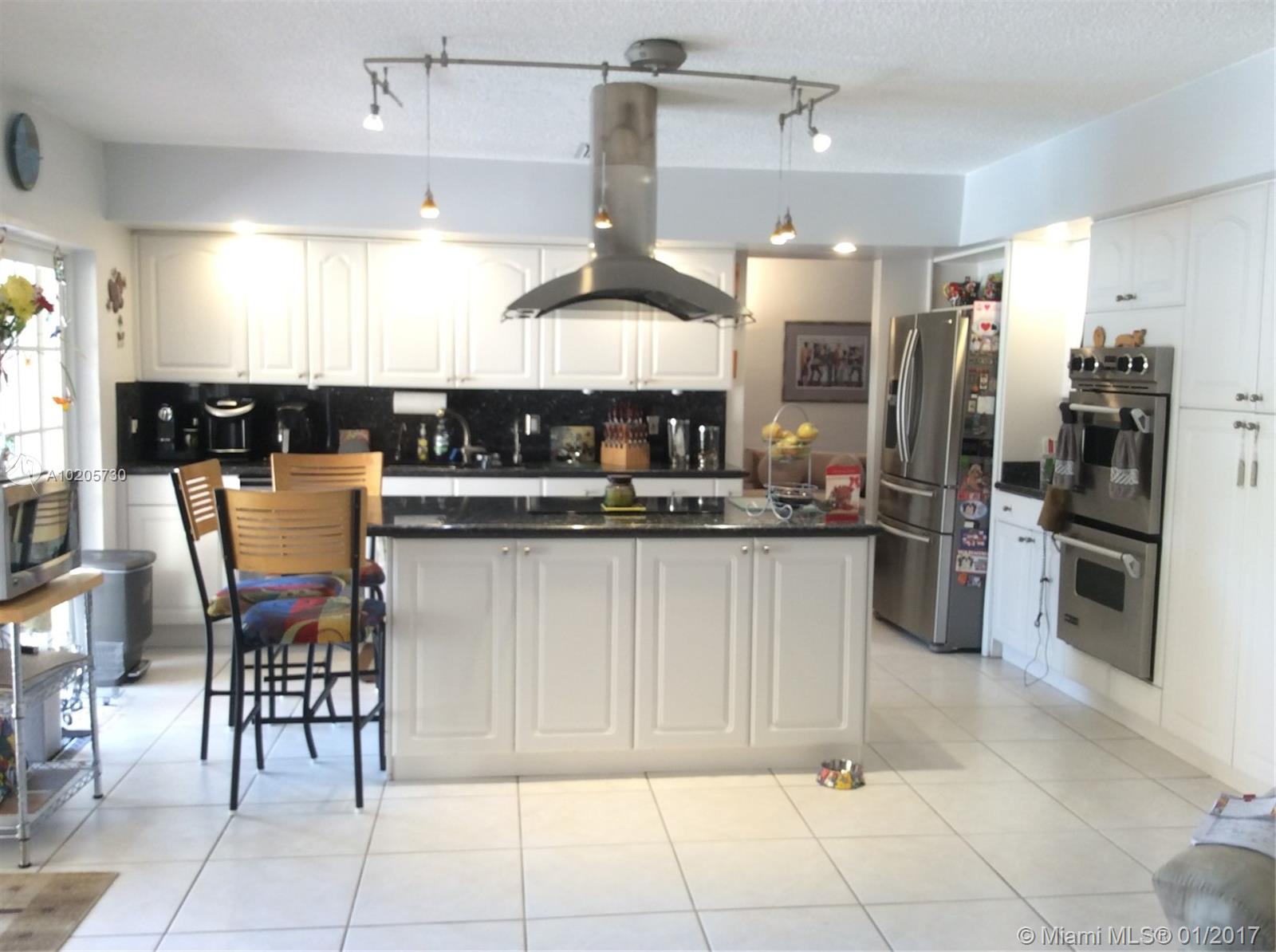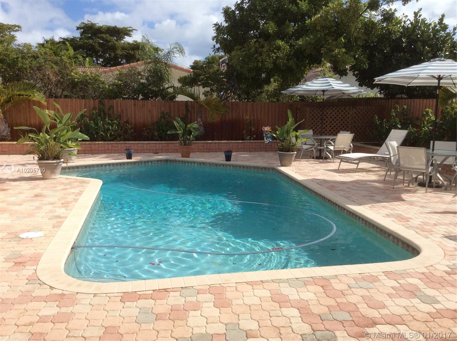 Modern 4bd 3bth pool home on a great street in 24 hour gated community. Formal dining room, extra room that can be a fifth bedroom, nanny's room or great play room. Lovely new kitchen, remodeled with granite & wood & stainless steel appliances; large great room. Beautiful patio & pool area. Fenced yard, shed. Hurricane shutters. Walk to "A" schools, Houses of Worship. Minutes to airports, Aventura Mall, Gulfstream, FIU & easy access to I-95.