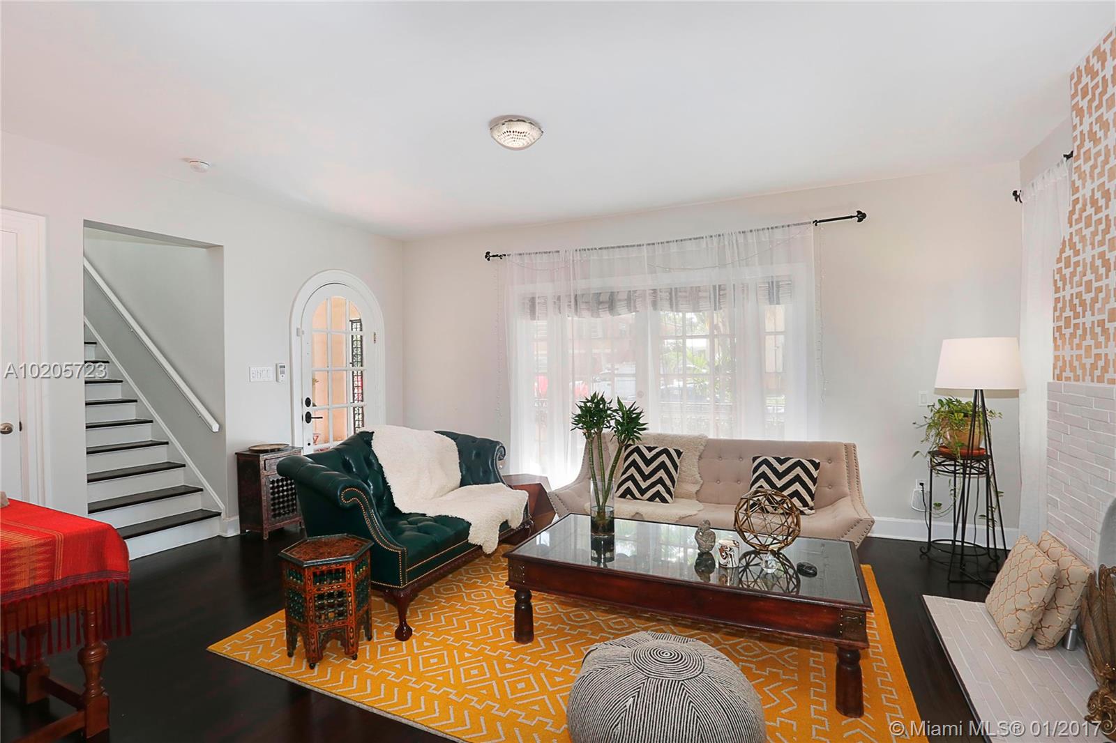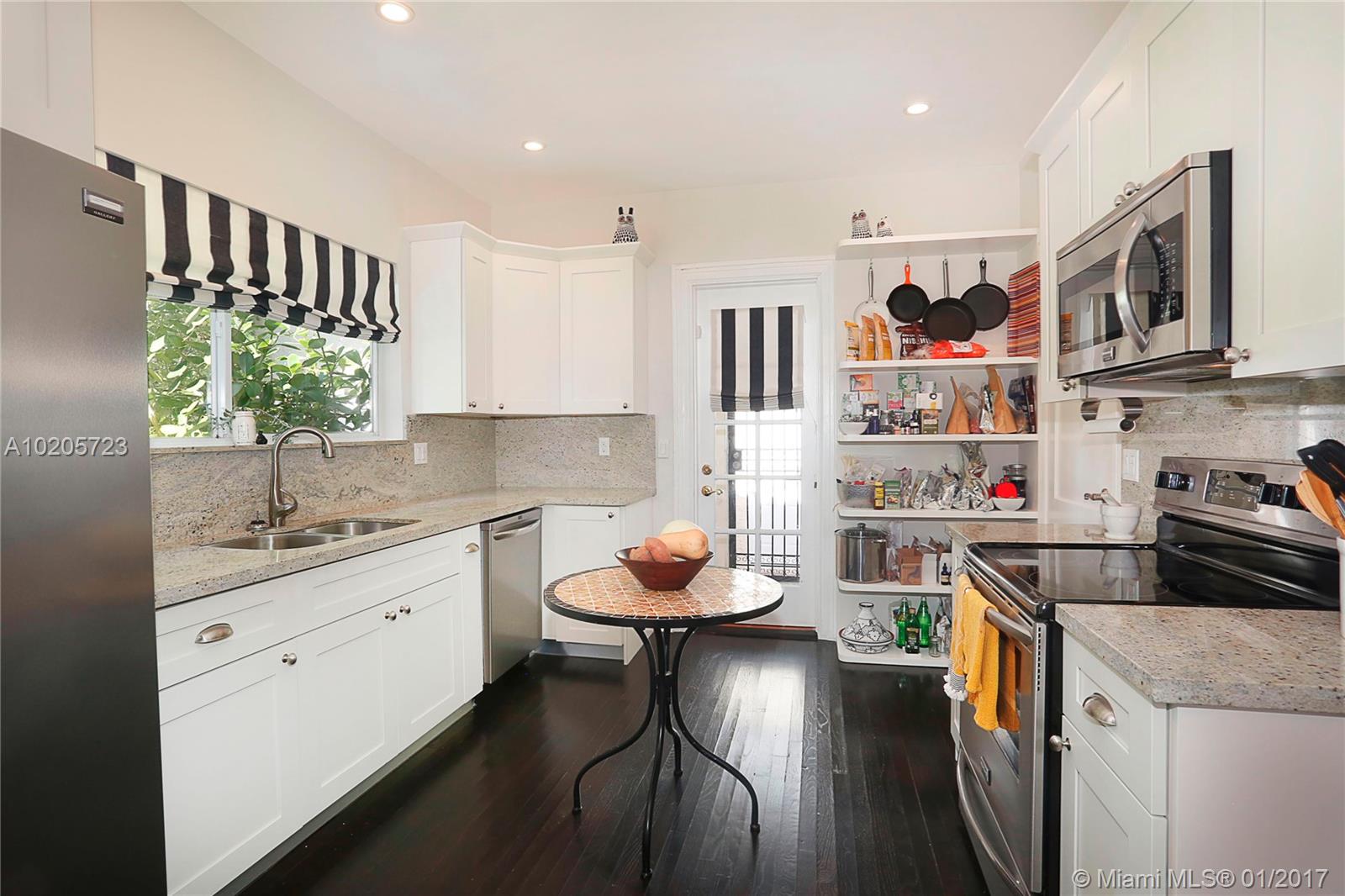 Oozing w/ charm! This old Spanish home is amazing & beautifully updated. Special & unusual setting in the heart of downtown Gables, finding a single fam home in this area is unheard of! Covered porch, large liv rm w/ working fireplace, hdwd floors throughout. Updated kitchen has stainless appl, granite, & breakfast area & butlers pantry. 2 BR downstairs, master suite up. Private yd, 1 car gar w/ storage room. Chicago brick patio & drive. This magical home is filled w/ light & many more special details!