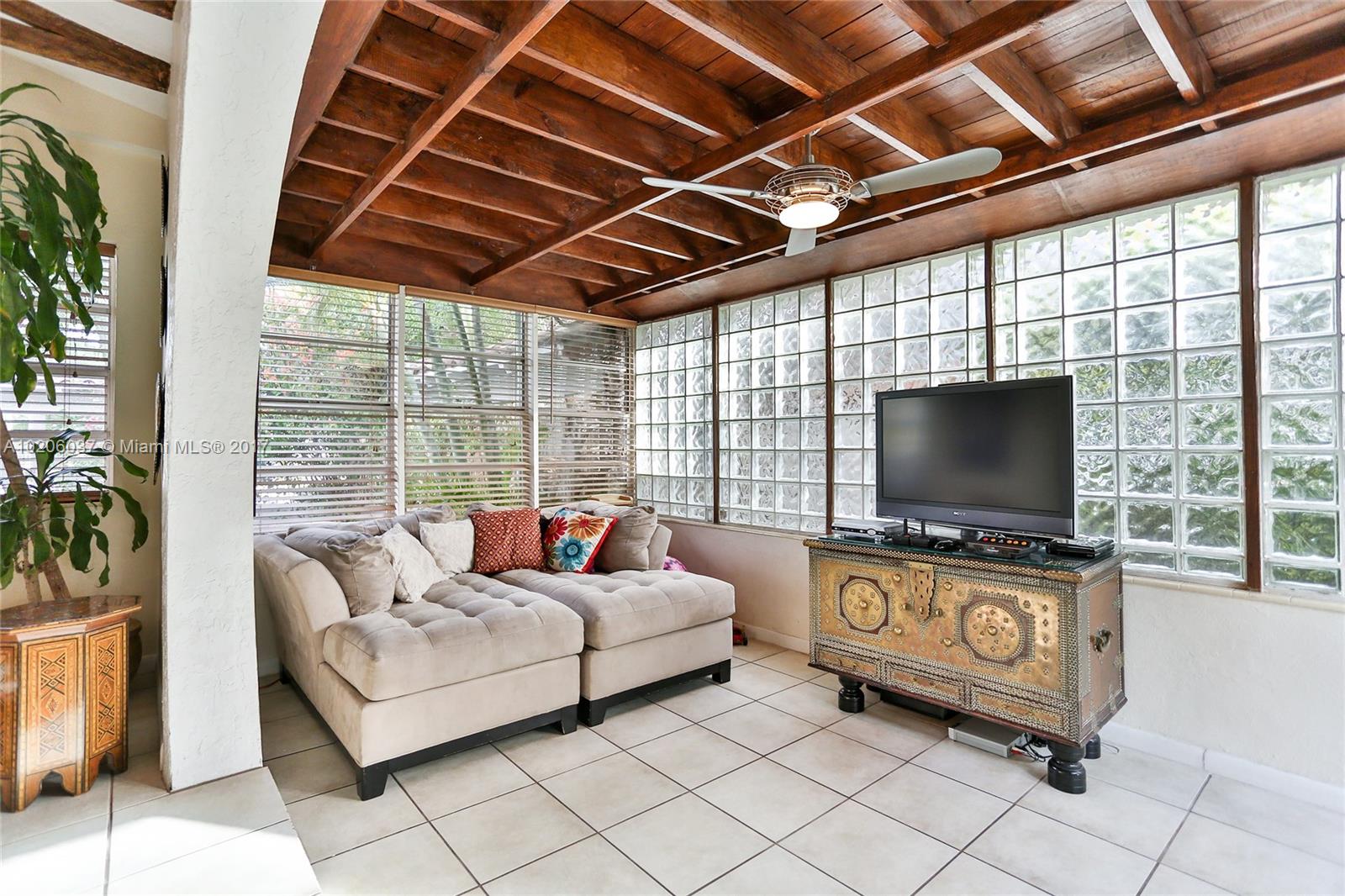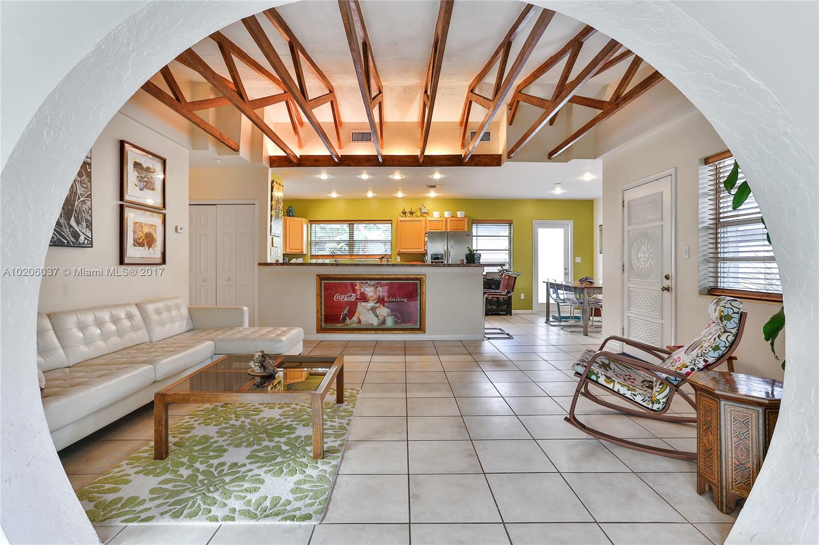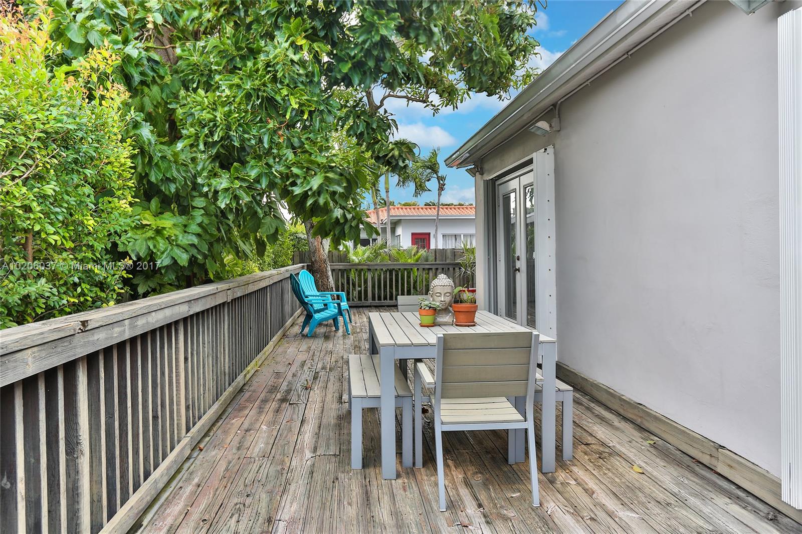 Walk to the beach from this lovely Surfside home with 3 bedrooms, 2 bathrooms & garage. Bright and spacious living & dining areas flow into the open, renovated kitchen with stainless steel appliances & wood cabinetry. Unique exposed beam ceilings, tile & wood flooring throughout. Private, fenced backyard with a wood deck perfect for entertaining or relaxing. Only 2 blocks to the ocean & community center/pool. Walk to Bal Harbour Shops, Four Seasons, shopping & dining. Zoned for A+ Bay Harbor schools.