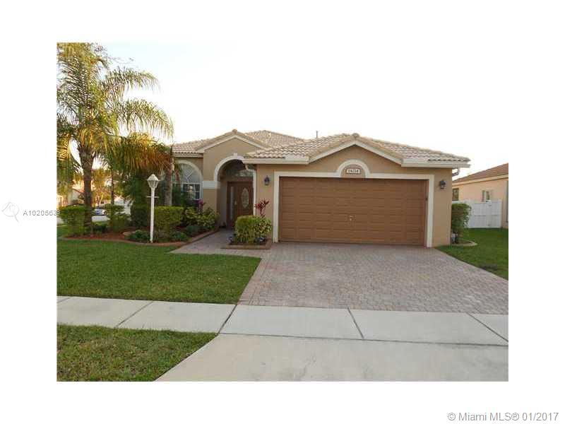 WELCOME TO THIS 3 BEDS 2 ½ BATHS GORGEOUS HOME ON AN OVER SIZED CORNER LOT IN ACCLAIMED PEMBROKE FALLS! GRANITE C/TOPS.TILE & WOOD LAMINATE FLOORS.DOUBLE SINK IN MASTER BATH WITH SEPARATE TUB/SHOWER. BEAUTIFUL TILED COVERED PATIO. LARGE FENCED BACKYARD.ATTACHED PARKING FOR 2 CARS.LUSH LANDSCAPING.NEW A/C,OVEN AND MICROWAVE.GUARD GATED COMMUNITY.RESORT STYLE LIVING.GREAT CLUBHOUSE.STATE OF THE ART POOL.PROFESSIONAL TENNIS & BASKETBALL COURTS. SERENITY PARK.COMPLETE EXERCISE ROOM. MINT CONDITION.WONT LAST!