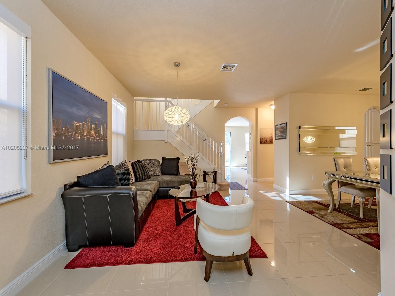 SPECTACULAR. SINGLE FAMILY HOME IN THE LUXURY COMMUNITY OF ISLES OF GRAND BAY DORAL. TWO STORY, PERFECT FOR A LARGE FAMILY, 5 BEDROOMS AND 4,5 BATHROOMS. PORCELAIN FLOORING ON THE FIRST FLOOR, CARPET ON THE SECOND. MODERN KITCHEN WITH GRANITE COUNTER TOPS, WINE-COOLER, STAINLESS STEEL APPLIANCES, GREAT SCHOOLS. GRAND BAY WILL HAVE CLUB HOUSE AND RECREATIONAL AREAS, INCLUDING A WATER PARK. GREAT COMMUNITY FOR CHILDREN PLAY SAFELY OUTSIDE. A+ SCHOOLS. FURNITURE NOT INCLUDED BUT AVAILABLE FOR SALE.