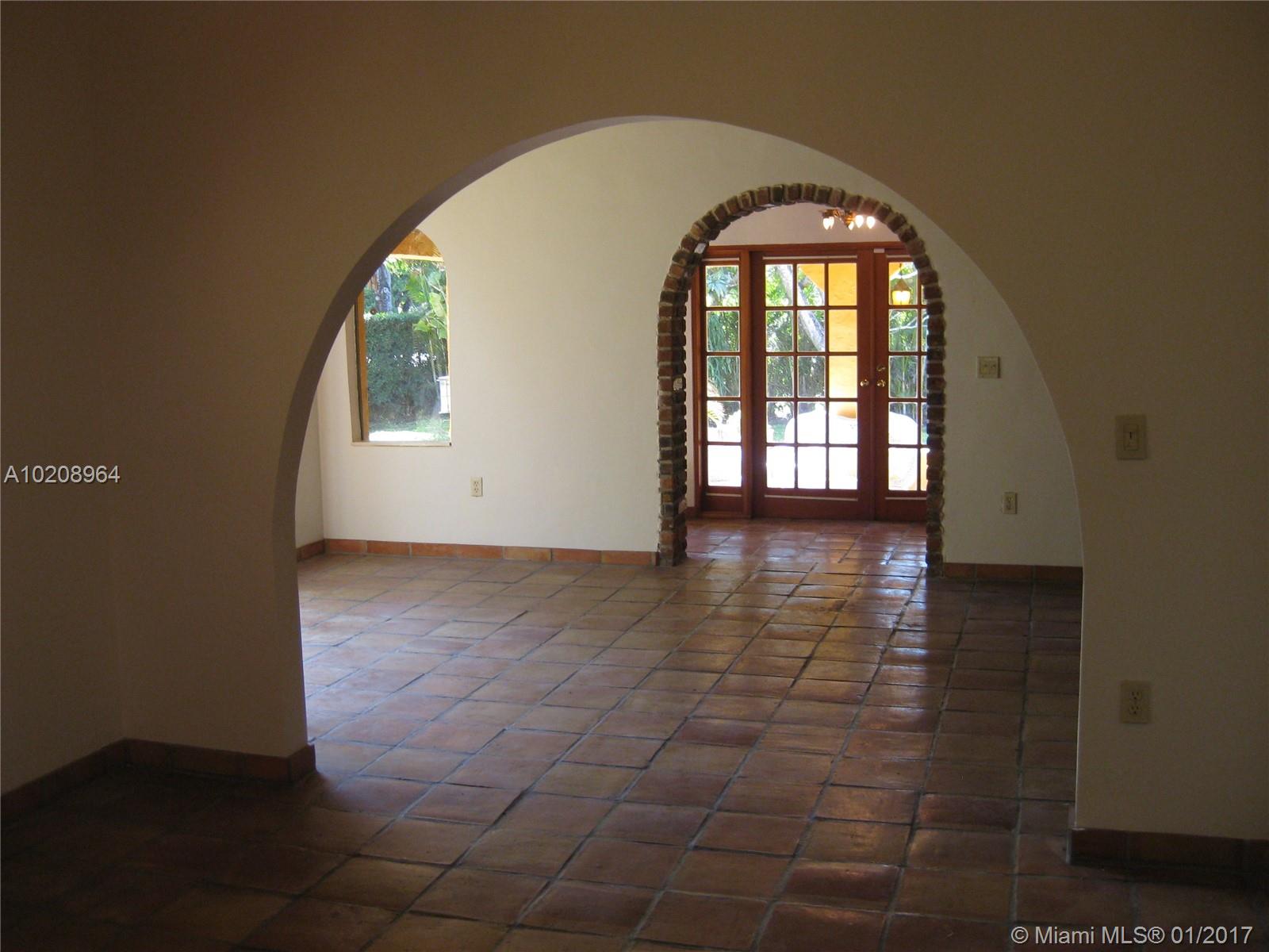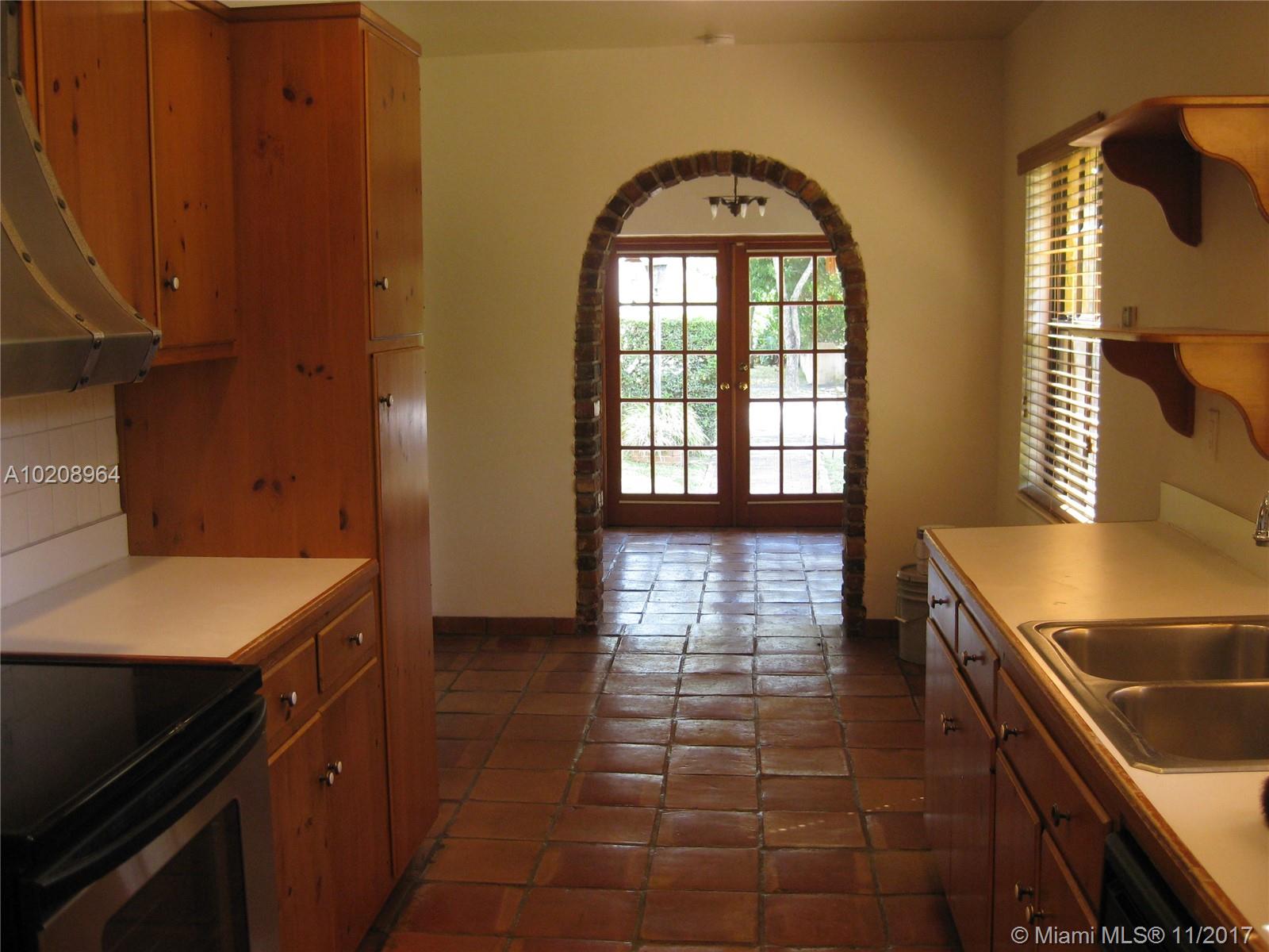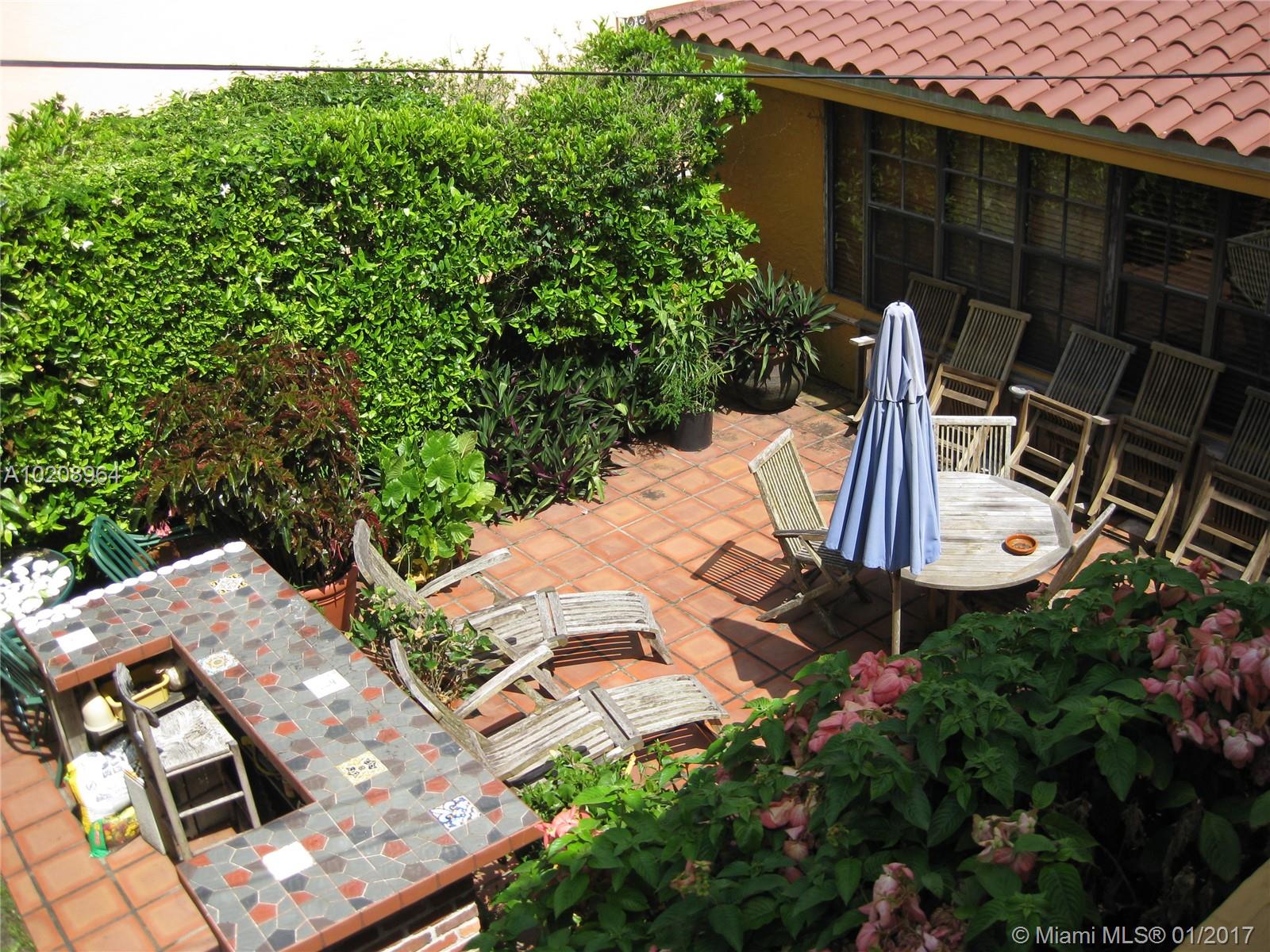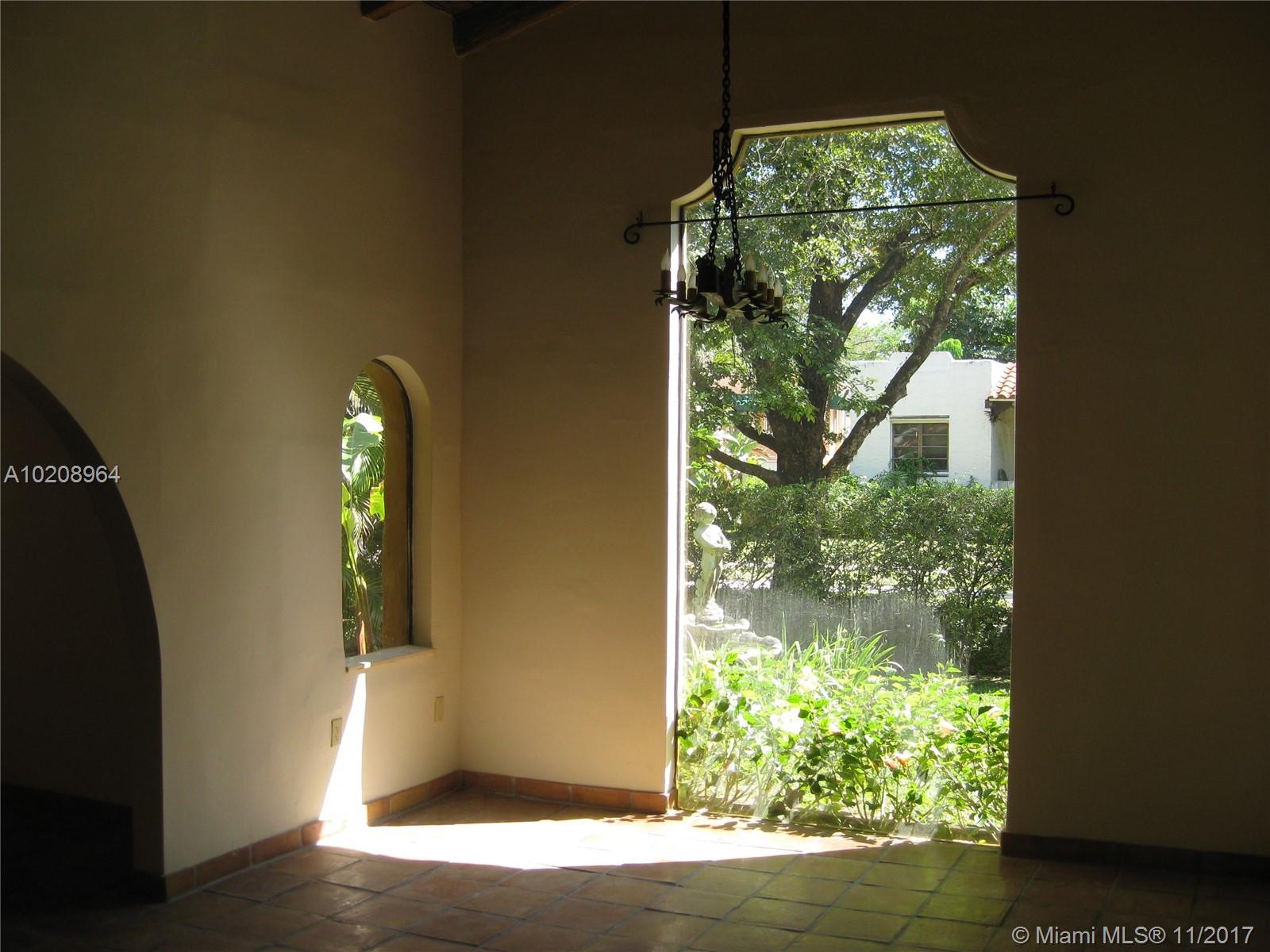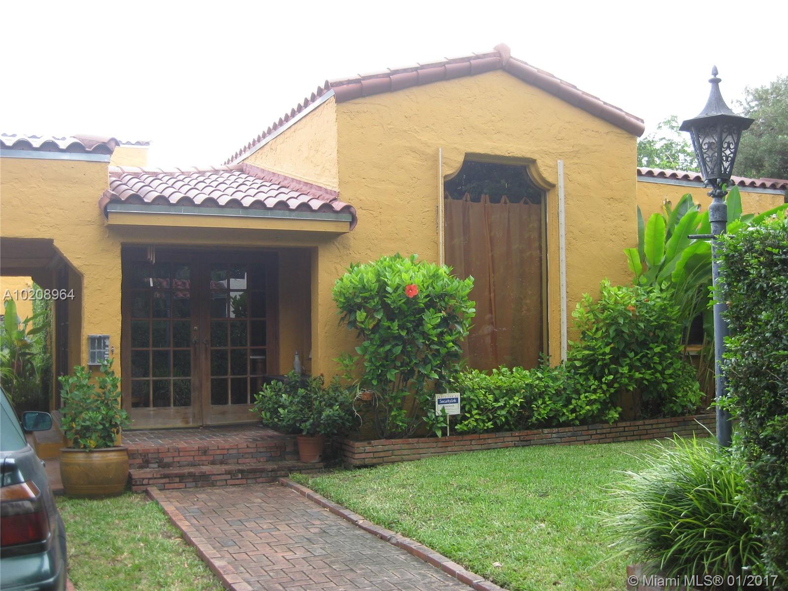 Charming Old Spanish in North Gables! 2 Bedrooms/ 2 Bathrooms in main house with In-Law Quarters in rear + Gardener's 1/2 bath. Oversized Lot, Brick Fireplace, Pecky Cypress Cathedral Ceilings in Living, Dining & Foyer Entrance, Picture Window, Patio with Bar for entertaining, Laundry Room. Walking Distance to Granada Golf Course. Room for Pool.