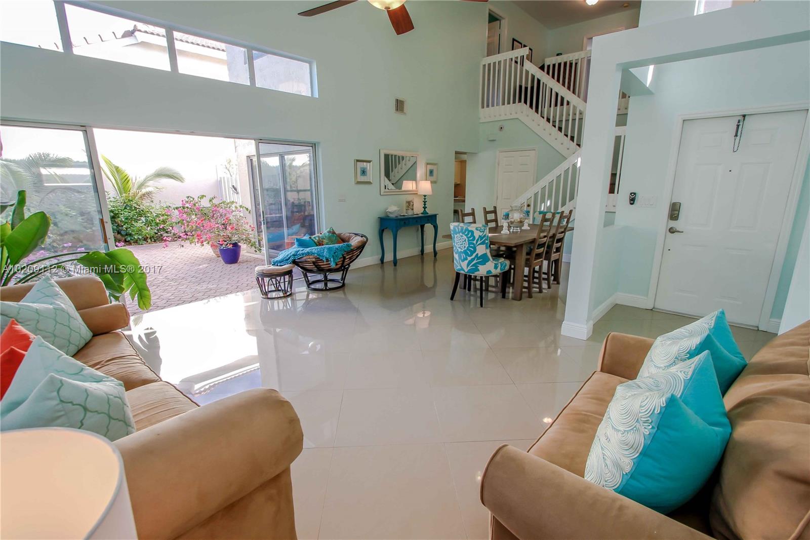 Great Location in the community with views of the creeks without any direct neighbors behind house. Beautifully done! This bright home features 3 BR, 2.5 baths, 2 car garage. Approx. 20 ft. vaulted ceilings. Dining room opens into living room & kitchen into family room. Kitchen has granite countertops w/Island eating area. 20x20 Porcelain floors downstairs. Access to the patio from living room & family room. Close to clubhouse, amenities, tennis court, gym, pool, and children's play area. 24 hr. security.