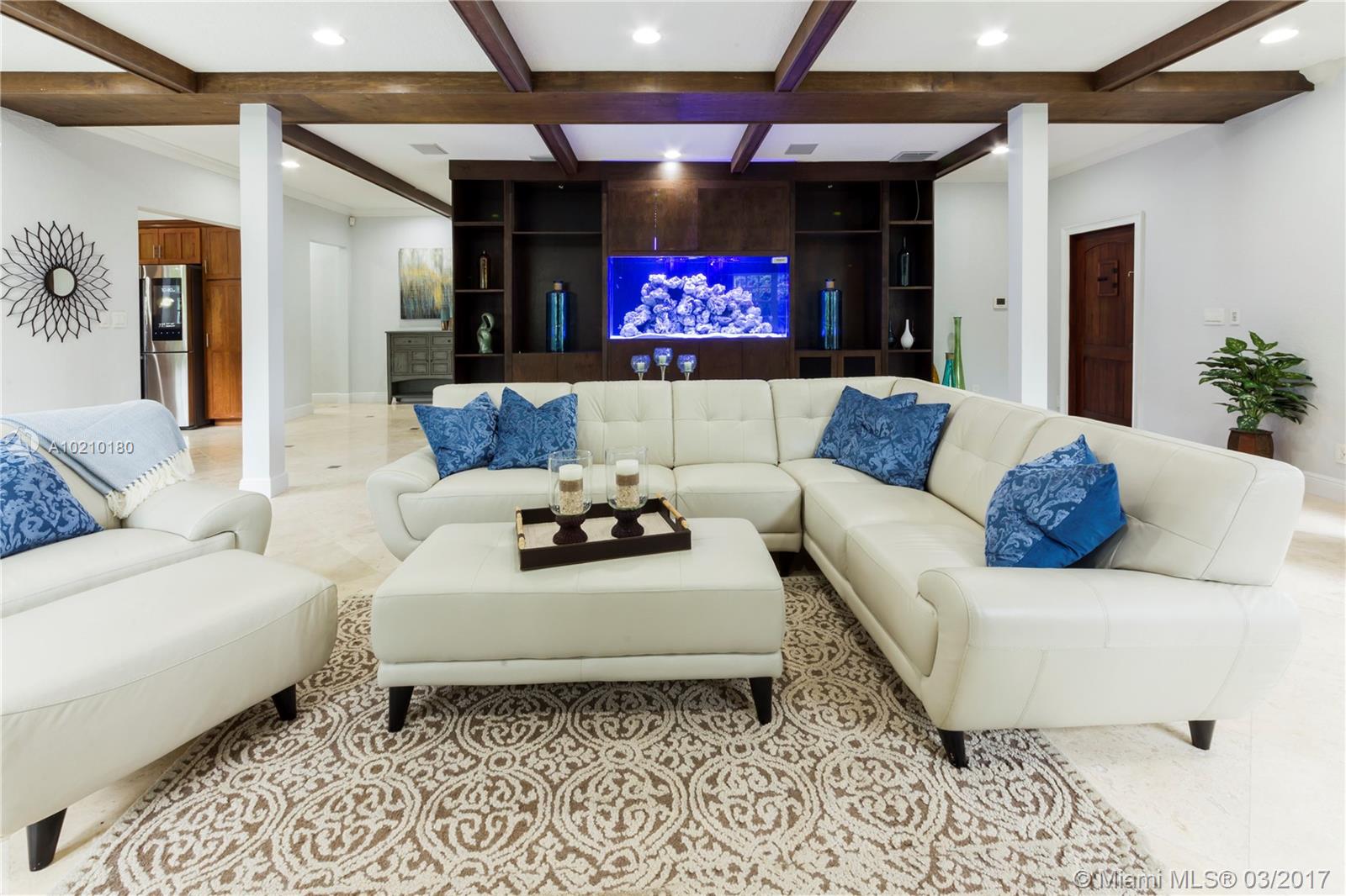 Beautifully renovated 4BD/4.5BA home w/ 2BD/2BA guest house. Your own private compound w/ lush tropical landscaping & huge tropical yard. Main house offers open floor plan w/huge great family room, built-in 300 gallon salt water aquarium, open kitchen w/ state of the art appl. Master features oversized closet w/ large bath & steam shower. Amazing schools & location could not be better. 10 min from beach Avenutra Bal Harbor DT & more. Priced under market to sell fast! Subject property only 302psf.