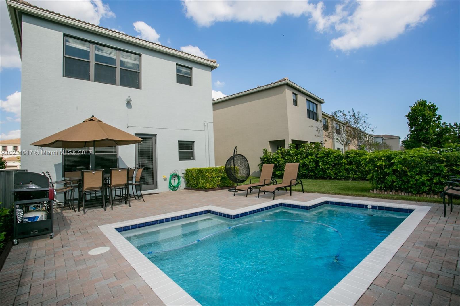 Gorgeous 3 beds / 2.5 baths home with swimming pool at Aventura Isles. This is the lowest priced home in Aventura Isles with a swimming pool! Spacious layout w/plenty of natural light. Lovely kitchen has cooking island & charming view to the yard & pool. Tile floors in kitchen & bathrooms. Home was built in 2014. Master Bath has double sinks & separate shower. This home has a premium Lot PIE SHAPED lot! Great location near shopping, dining, houses of worship, & great schools.