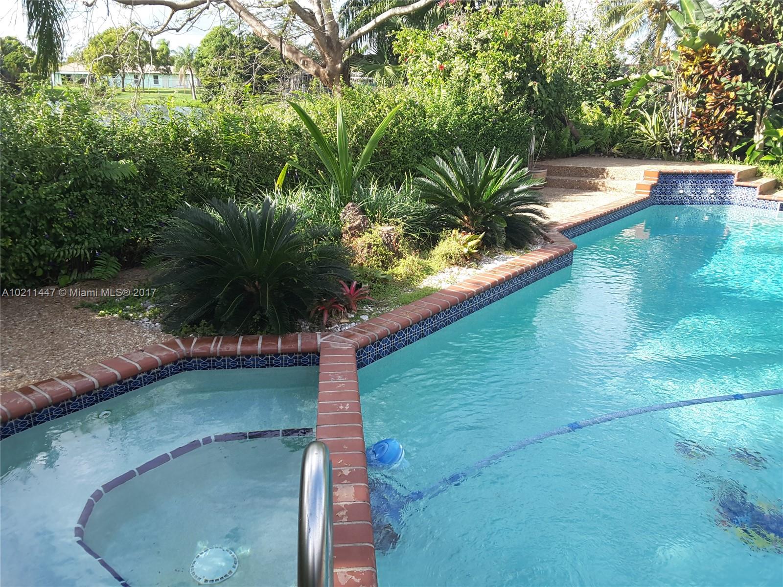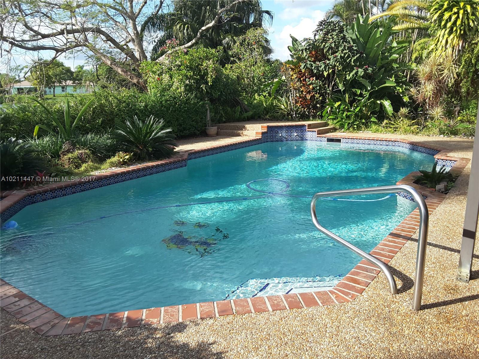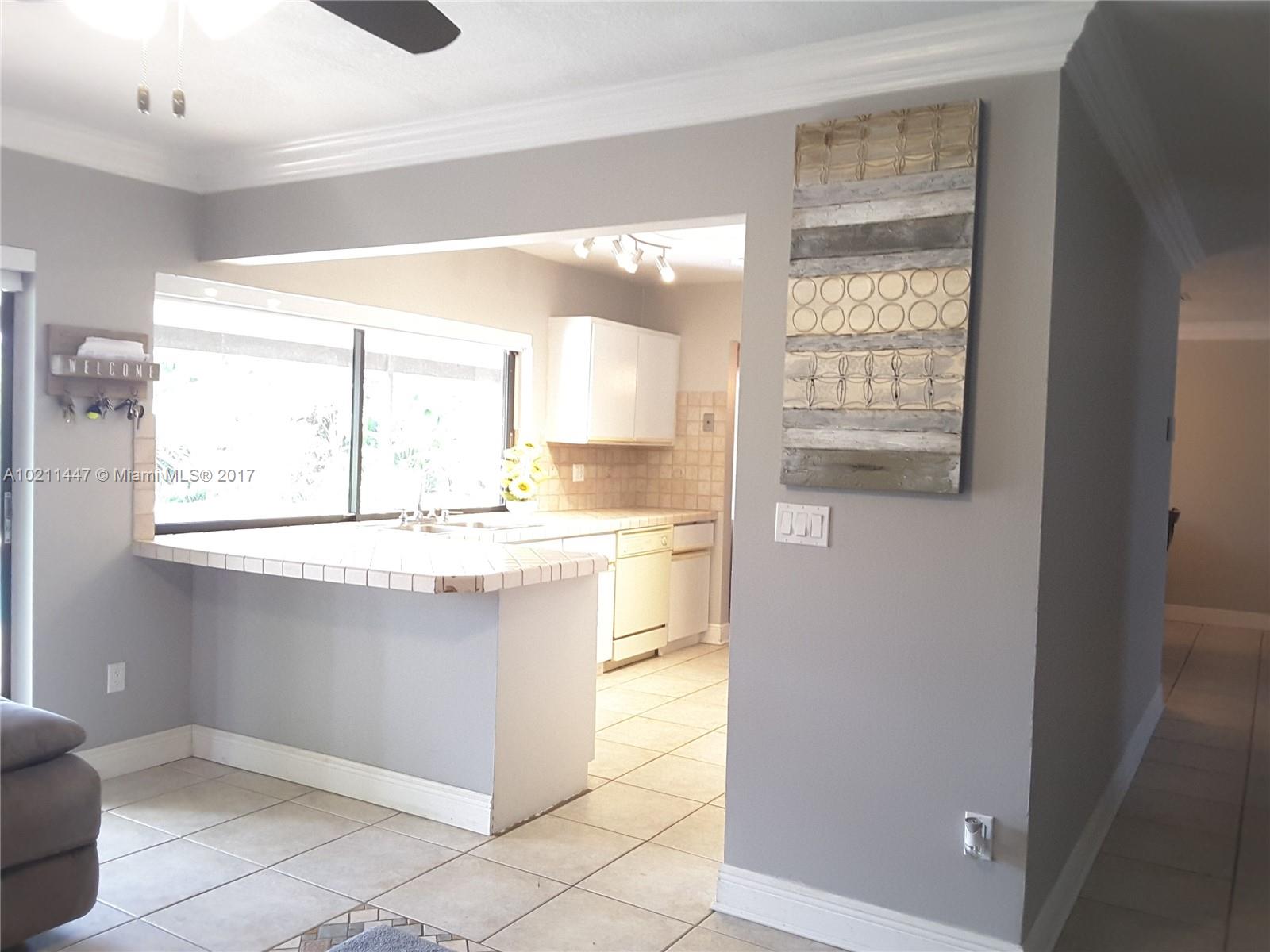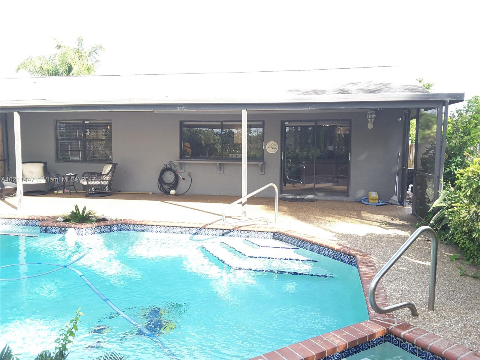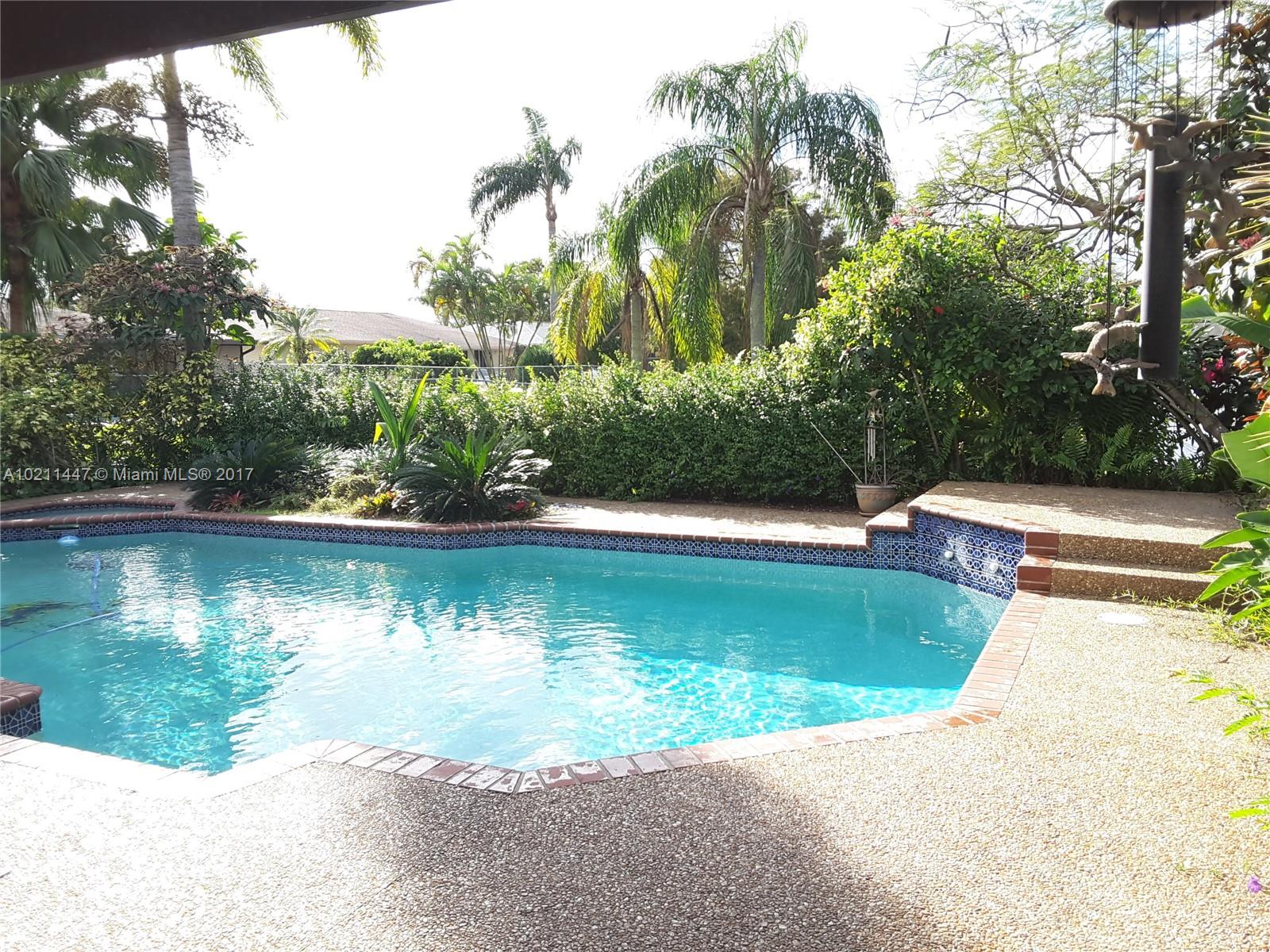 Remodeled waterfront pool home w/ privacy hedges, a fenced in yard & surveillance equipment in place. Home features crown molding throughout, dark wood laminate floors in the bedrooms, neutral ceramic tile throughout the main living areas, updated light fixtures, renovated master bath, picture window in the kitchen overlooking the pool and roll up privacy shades in the living room. A newer water heater and Maytag washer & dryer are in place. Home is located in a popular school district & close to I-595.