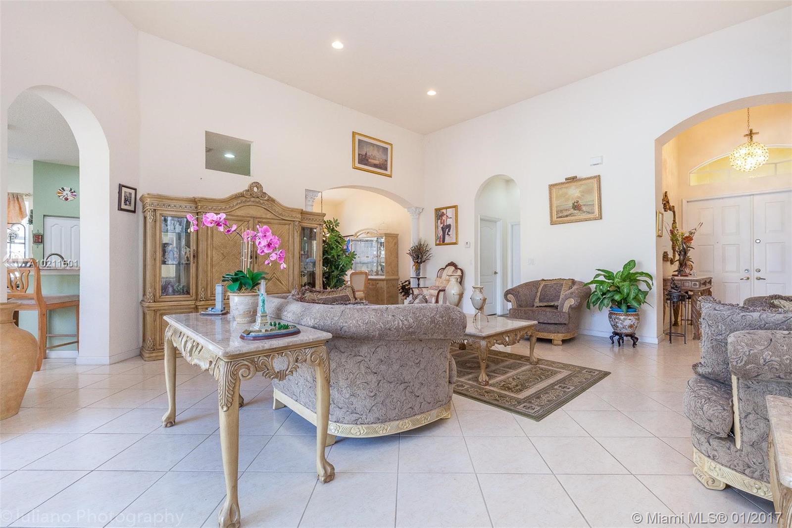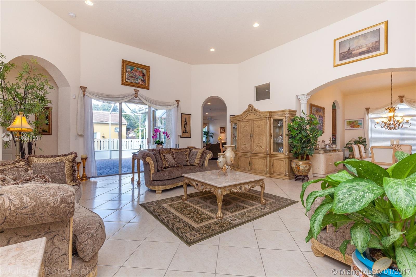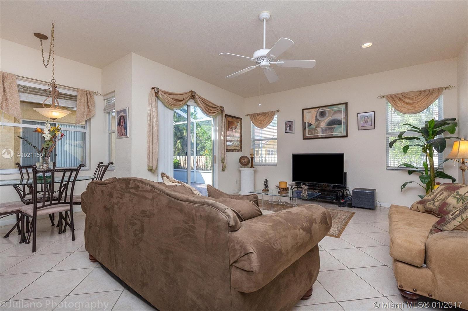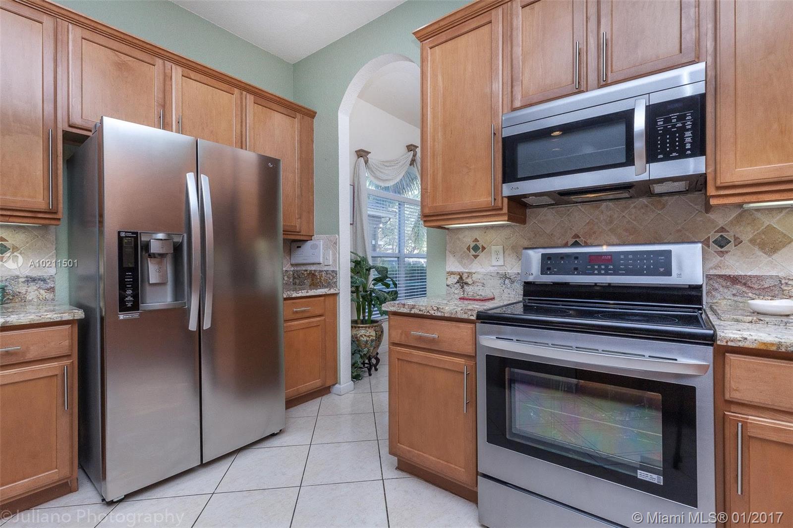 This Elegant Upgraded Home Offers Arched Double Door Foyer Entry Leading to the open Living Room with 15 foot high Ceilings, Neutral Diagonal Title Throughout, Gourmet Kitchen with Granite Counters top and New Stainless Steel Appliances with Warranty on them, The Master Suite has Tray Ceiling & Large Walk in closet , Master Bath with His & Hers Sinks/Vanities, Roman Tub & Separate Shower Also comes with Hurricane Shutters, Enclosed Screened Patio , fence backyard , large Paver Driveway. *Gated Community*