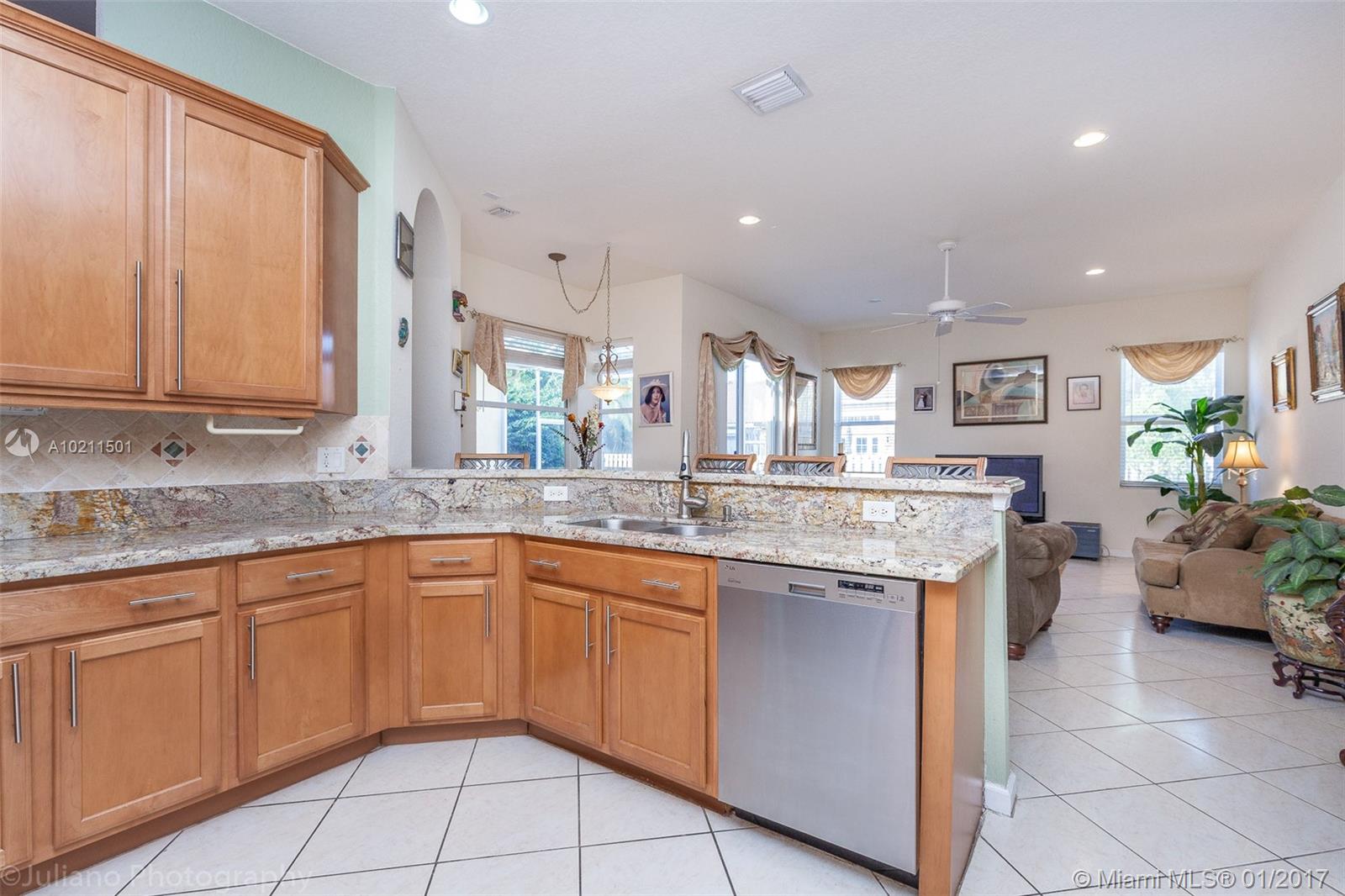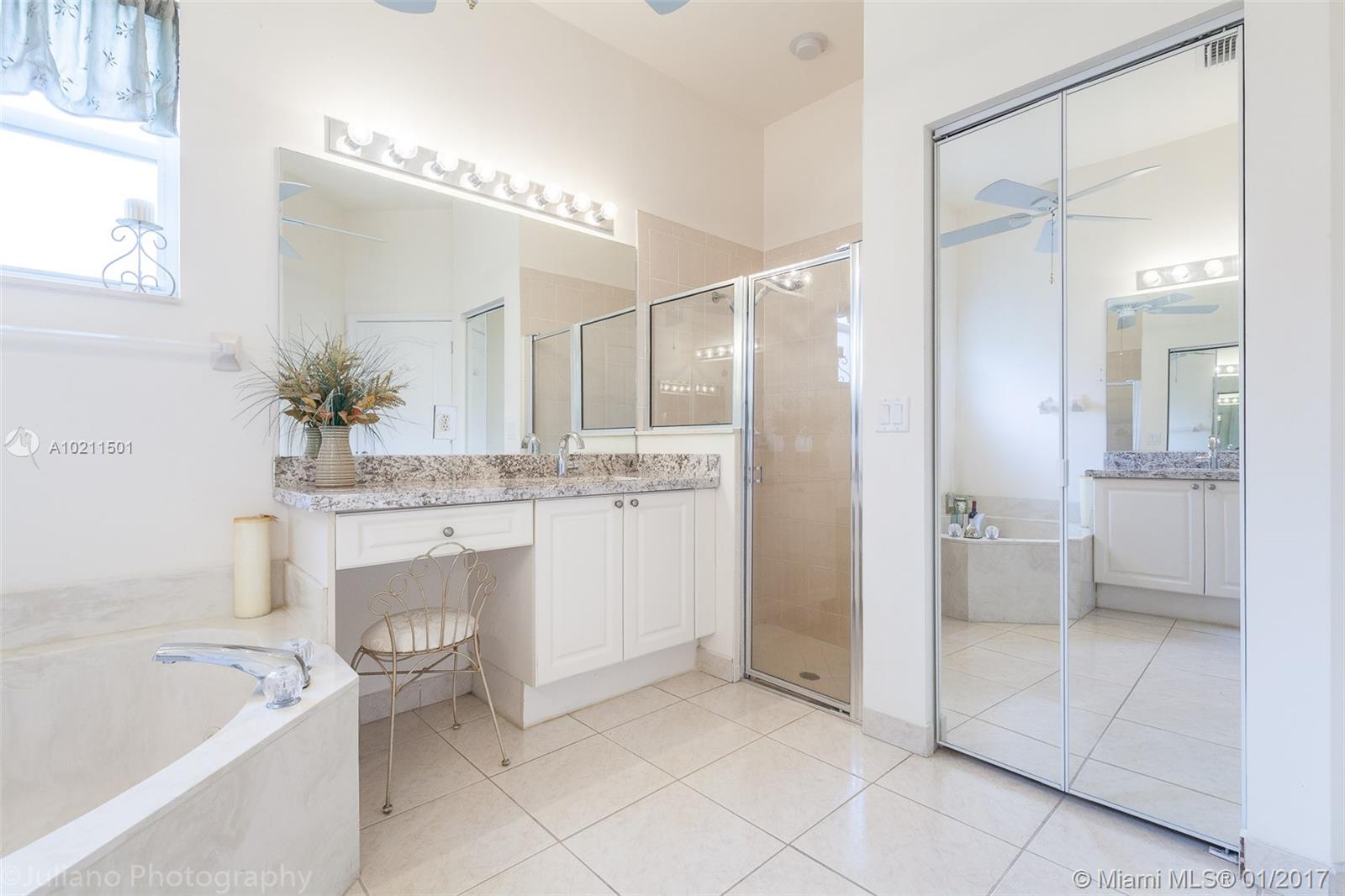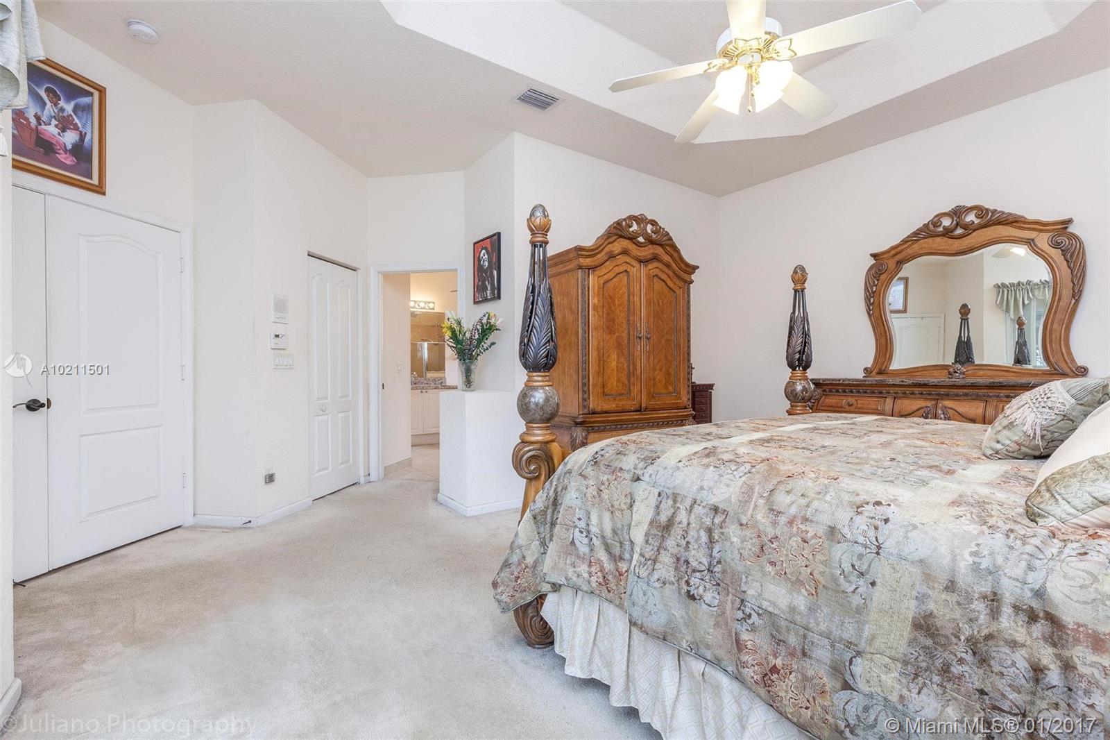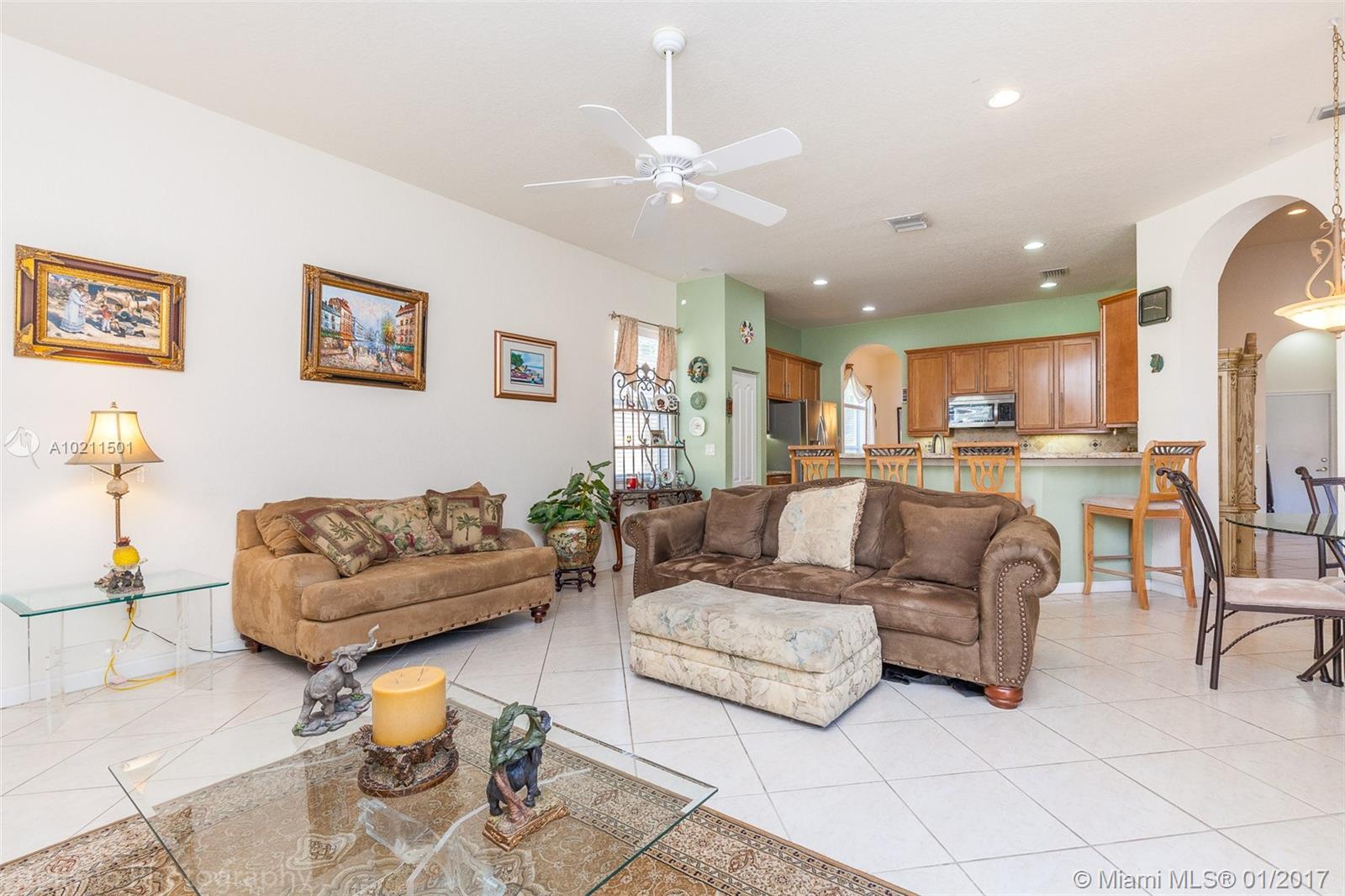 This Elegant Upgraded Home Offers Arched Double Door Foyer Entry Leading to the open Living Room with 15 foot high Ceilings, Neutral Diagonal Title Throughout, Gourmet Kitchen with Granite Counters top and New Stainless Steel Appliances with Warranty on them, The Master Suite has Tray Ceiling & Large Walk in closet , Master Bath with His & Hers Sinks/Vanities, Roman Tub & Separate Shower Also comes with Hurricane Shutters, Enclosed Screened Patio , fence backyard , large Paver Driveway. *Gated Community*