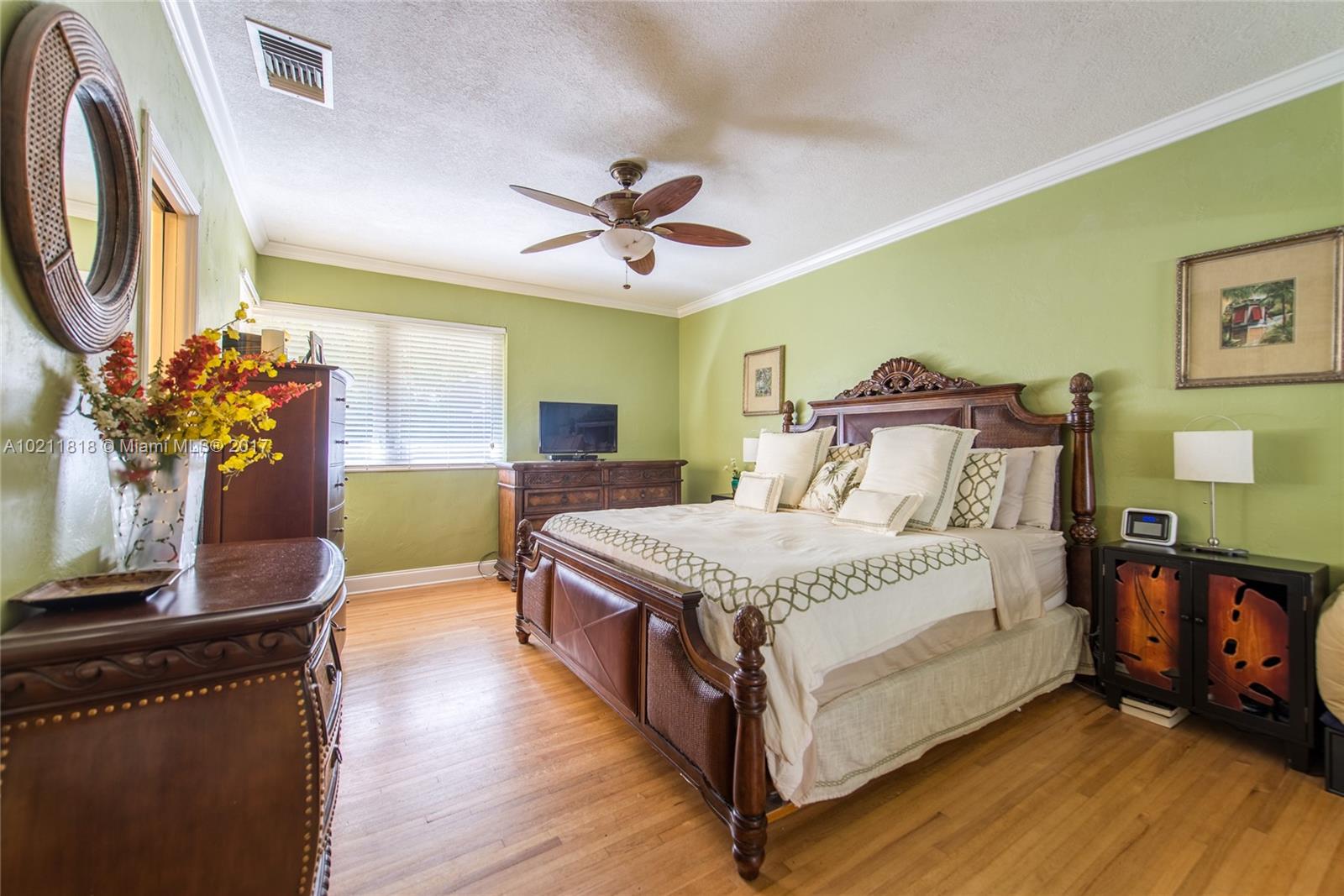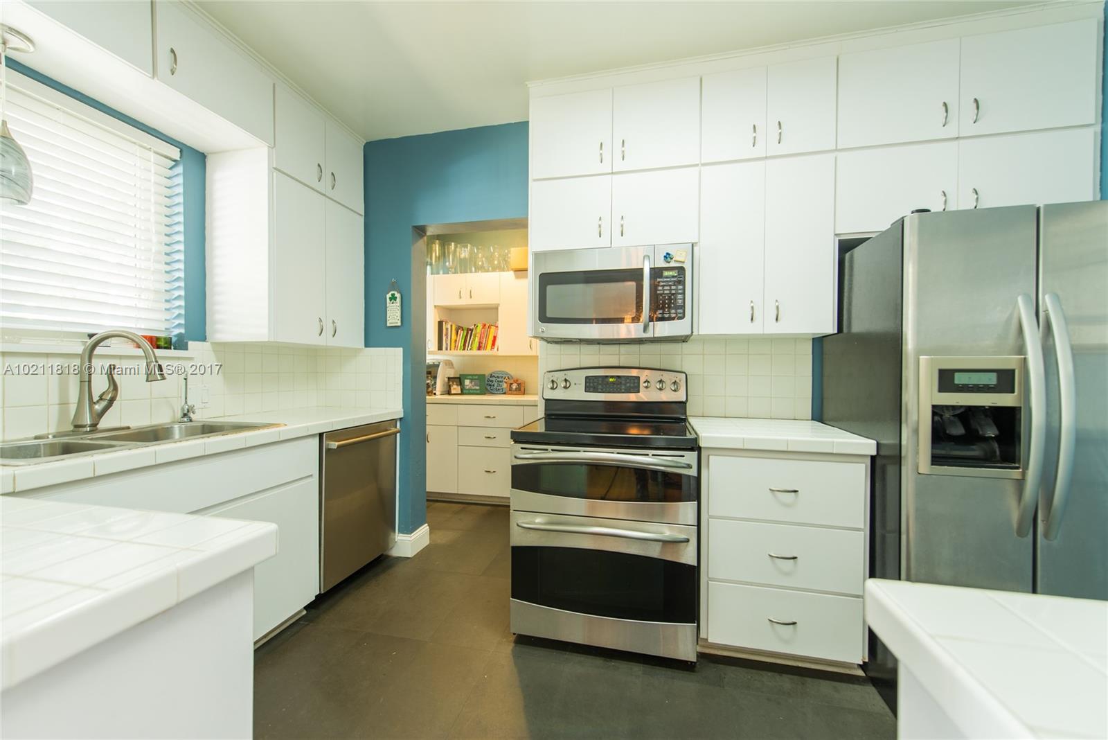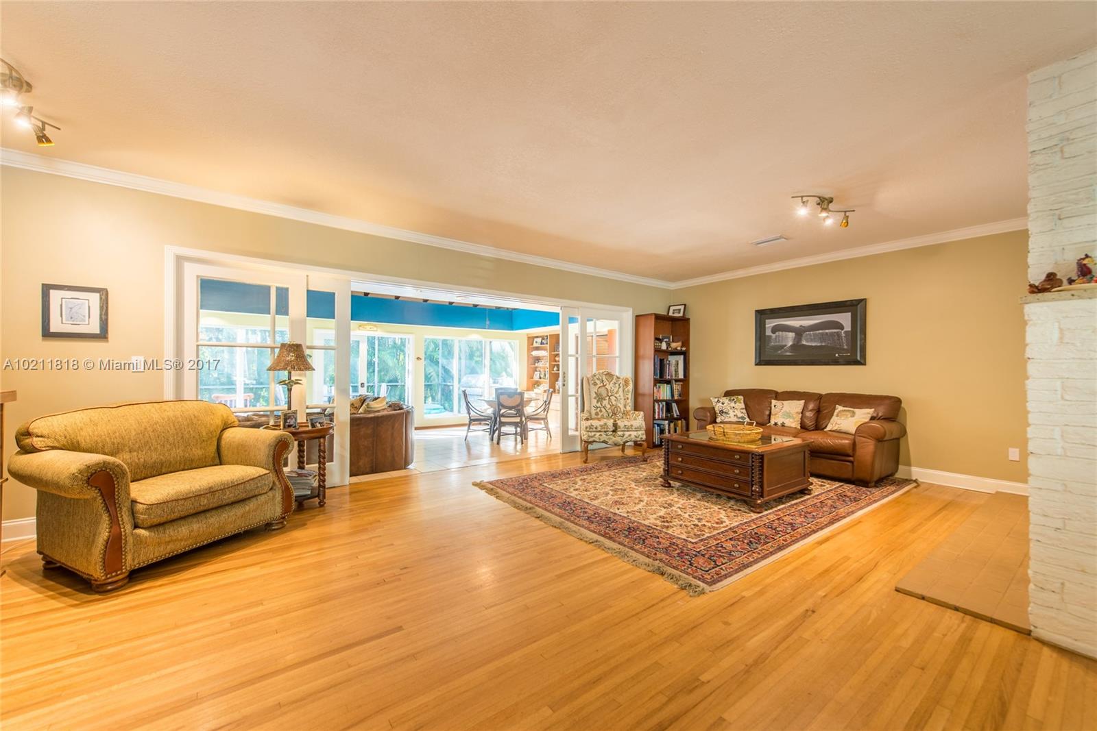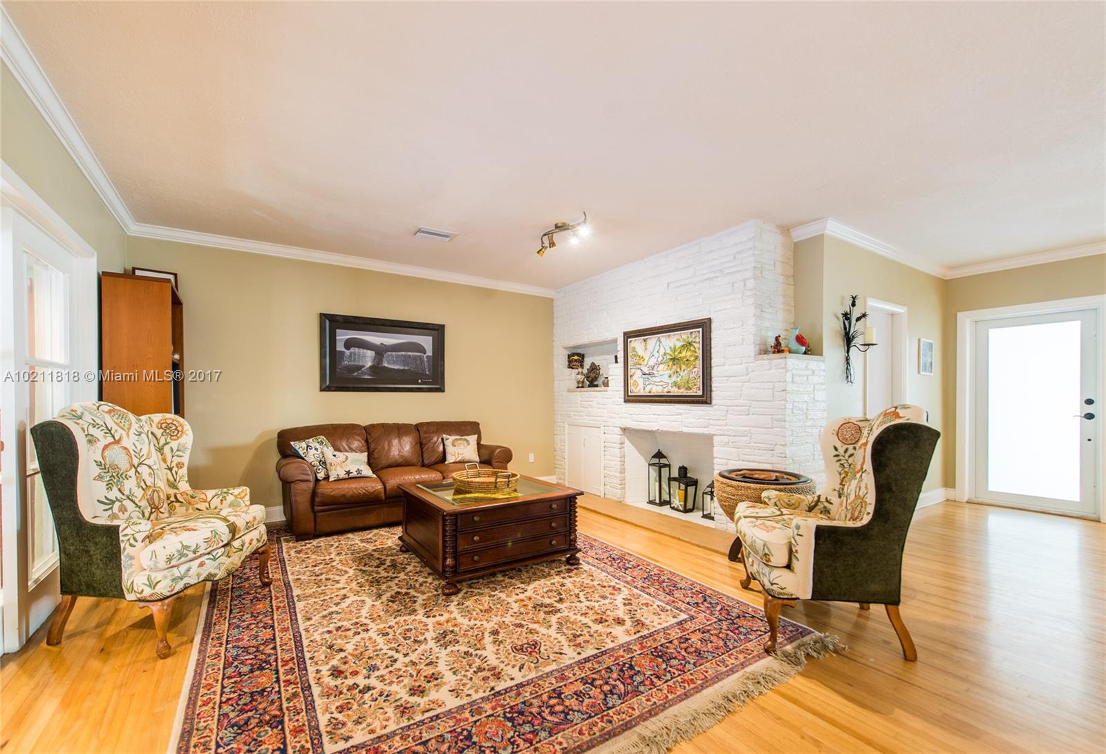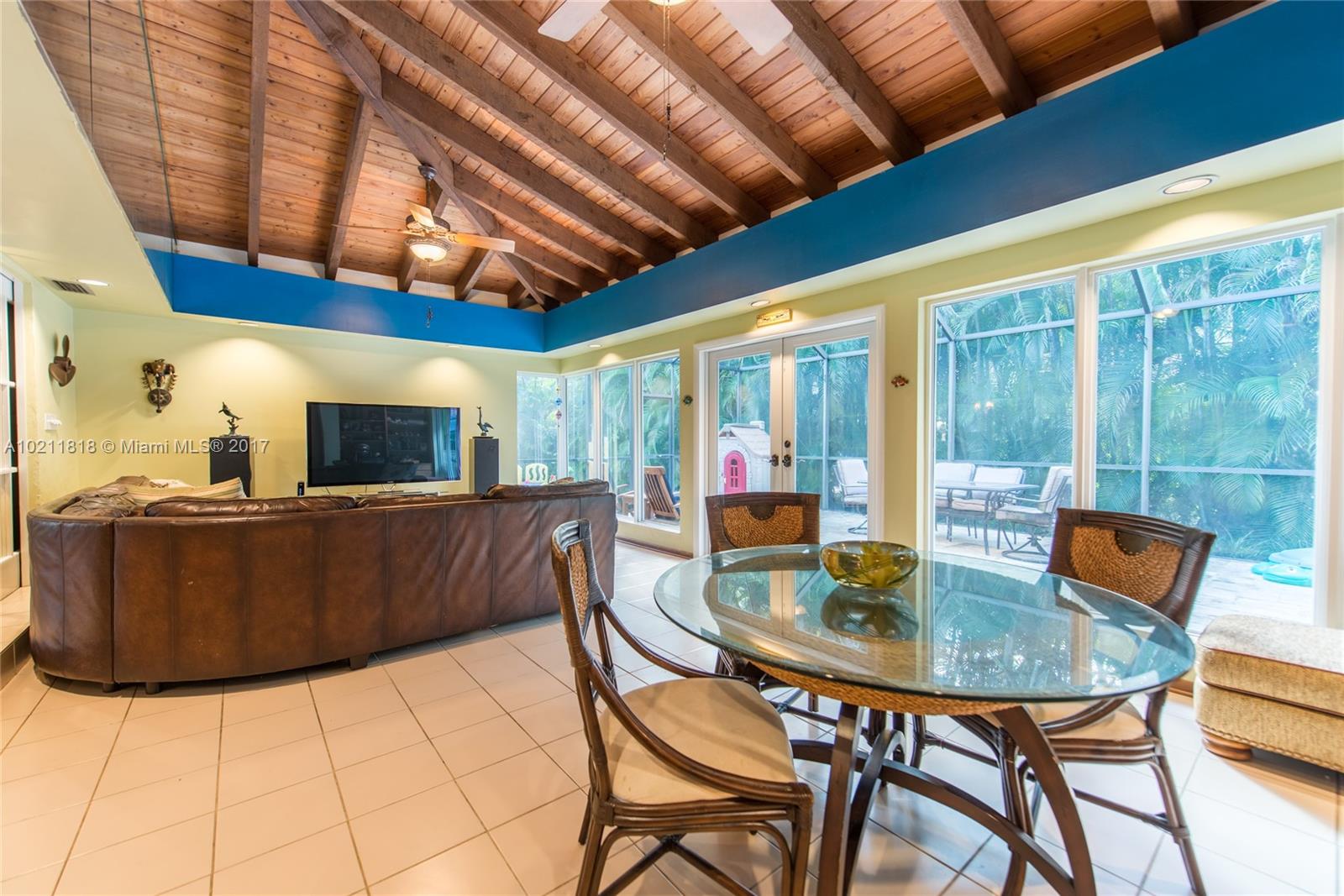 Lovely mid-century home on a quiet street in a coveted South Gables location. Light filled rooms w/ wood floors, fireplace & vaulted wood-beamed ceilings. Updates include all electrical, all appliances, marble master bath & impact glass. Classic white kitchen cabinetry w/ new tile flooring & butler’s pantry. Spacious family room with floor to ceiling glass that opens to expansive outdoor patio & garden. Room for pool. Close to the Grove/Gables shopping & dining and minutes to downtown, MIA & the Beaches.