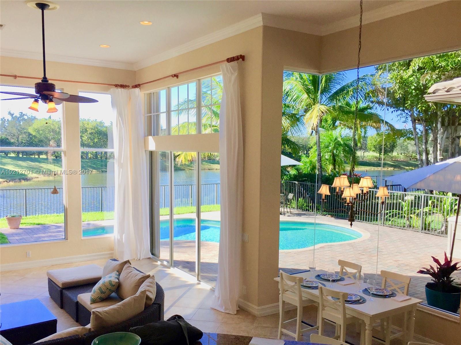 Breathtaking water views from this lovely 5/3 Parkland home! Huge picture windows bathe rooms in light. Gorgeous views of landscaped lake, backyard and pool. Elegant high ceilings, deep crown molding throughout. Kitchen boasts paneled wood cabinets & pantry, granite, upgraded stainless appliances. Spacious master with sitting area; oversized shower & whirlpool tub in master bath. 5th bedroom office easily converted back to bedroom, nursery. Accordion shutters. Amazing Parkland schools & parks! A must-see!