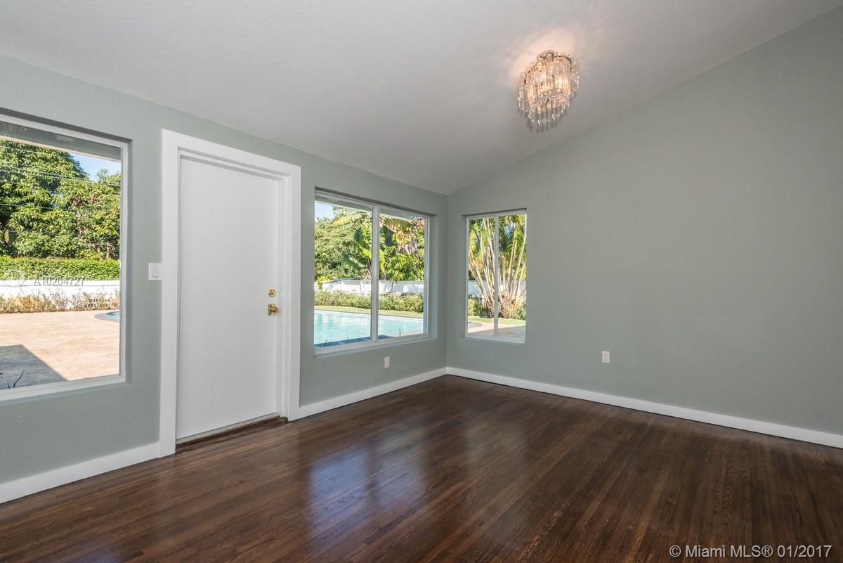 Miami Shores NEWLY remodeled home with oversized pool. Property has been completely upgraded from plumbing, electrical, roof, kitchen, stainless steel appliances, and impact windows. Designated areas include a living area, tv/family room, and dining area. Bright with natural light, contemporary yet kept old-charm with the restored wood floors. New driveway and landscaping make an inviting entrance.