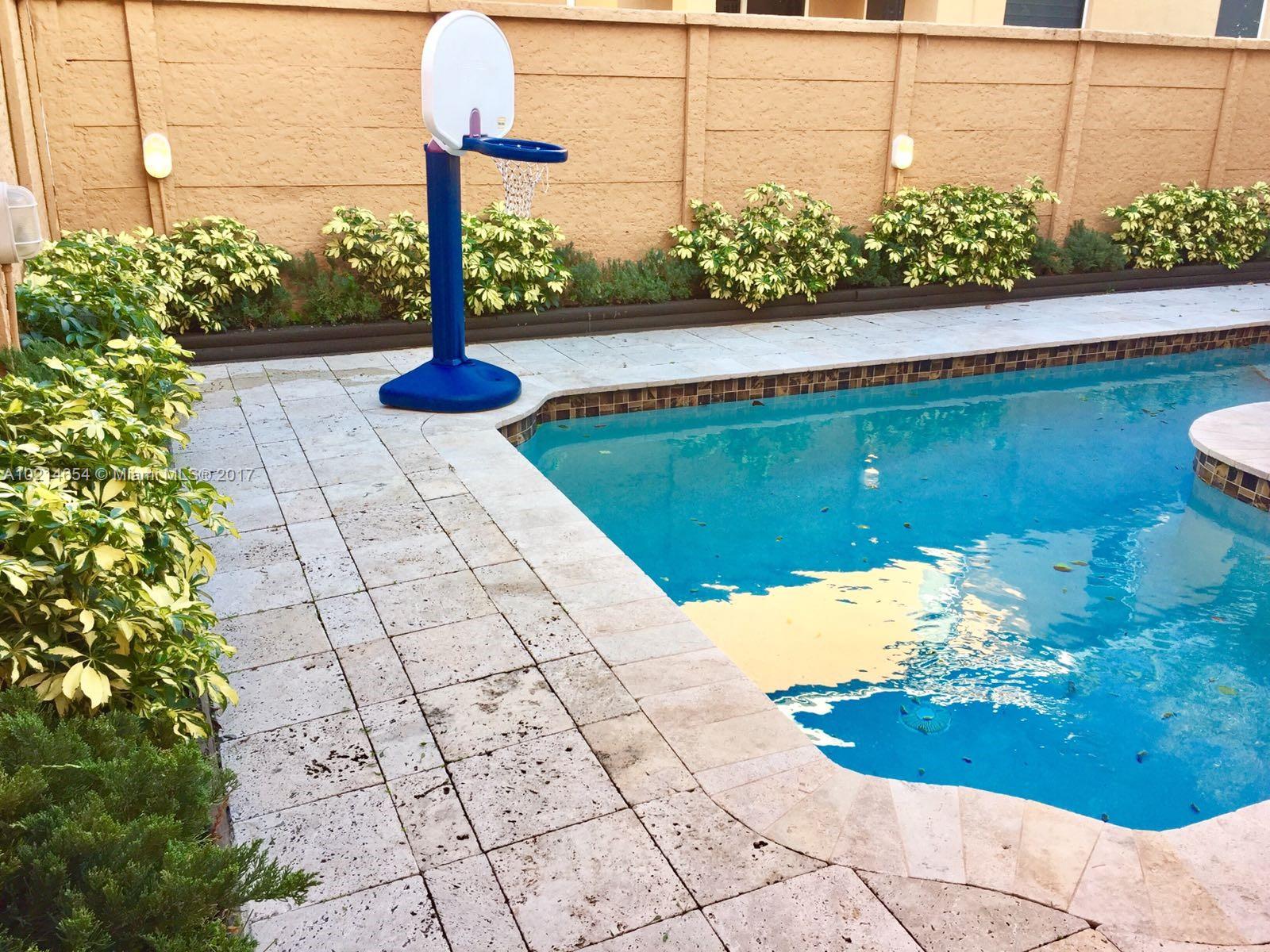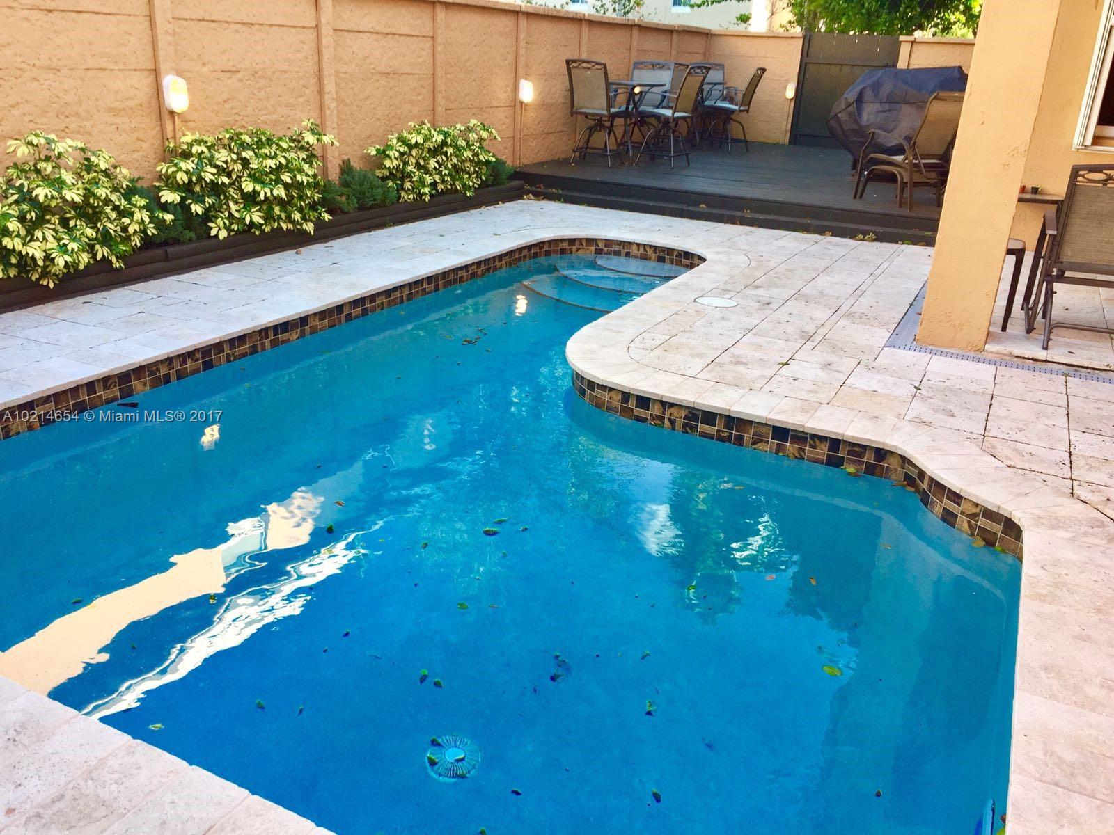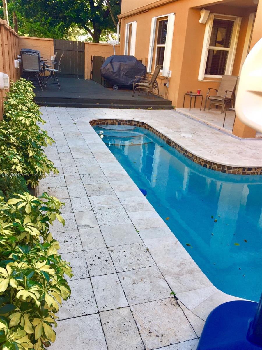 BEAUTIFUL 4BED/3.5BATHS IN PRISTINE CONDITIONS. CORNER LOT IN PRIVATE EXCLUSIVE COMMUNITY ONLY 62 PROPERTIES. JACUZZI ON THE SUN DECK AND A LOFT FOR AN OFFICE. HURRICANE SHUTTERS. UPDATED PROPERTY WITH OPEN AREA KITCHEN GREAT FOR ENTERTAINMENT. GUEST BEDROOM ON FIRST FLOOR WITH FULL BATHROOM. POOL RESURFACED AND TILED. WOOD DECK IN PATIO AND TRAVERTINE TILES SURROUNDS POOL. FURNITURE IS FOR SALE ALSO.