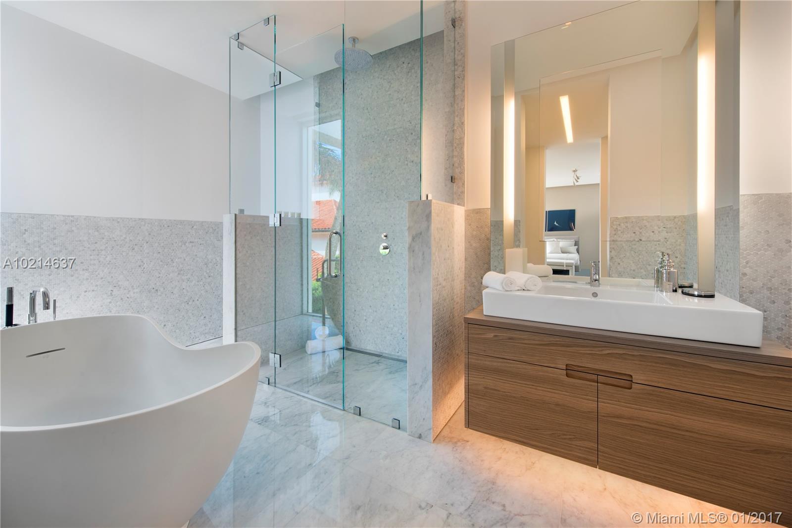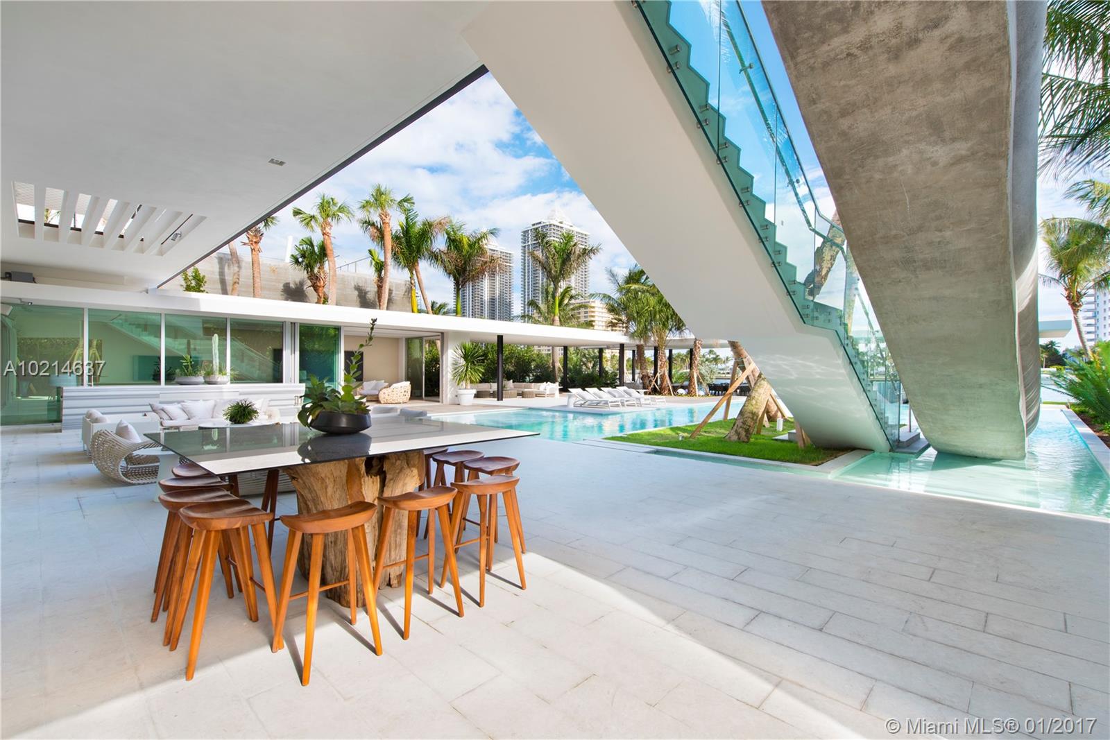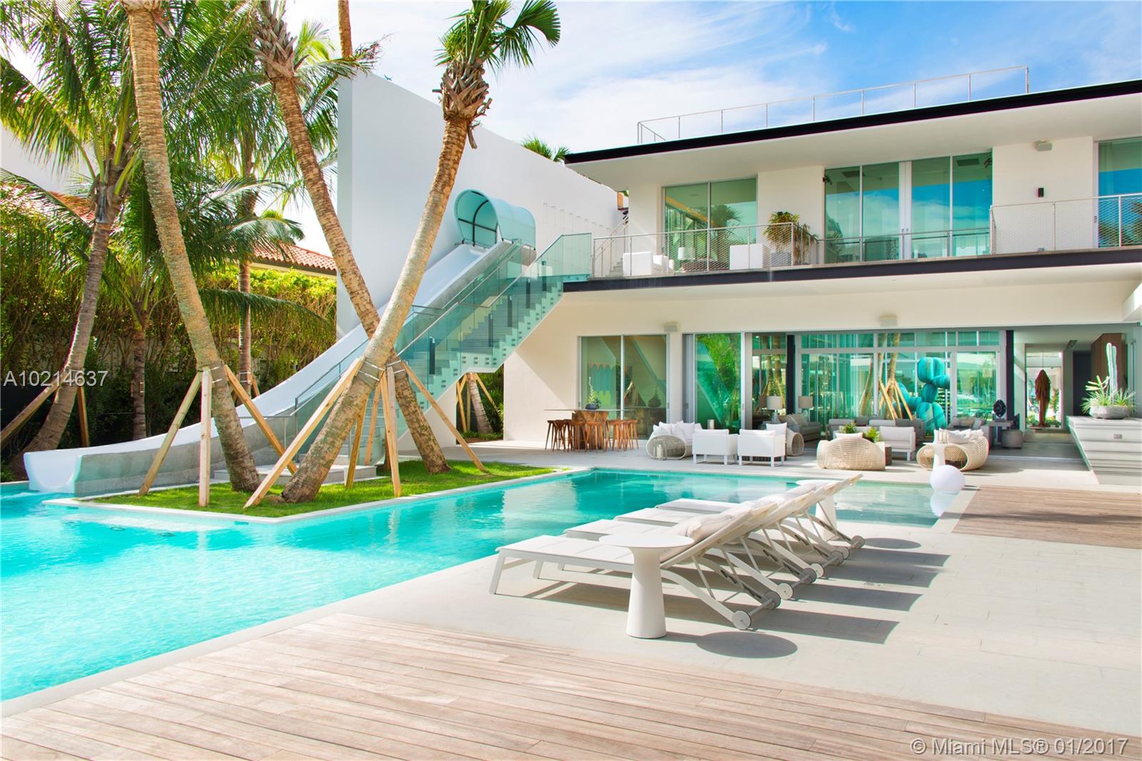This architecturally distinct home located in one of the most exclusive neighborhoods in Miami Beach was conceived as a self-contained, multi-layered landscape of experiences which takes advantage of both Miami's tropical climate as well the Ocean and Miami Beach views. Elements of the home include stunning views of the Atlantic Ocean from the master bedroom, a waterslide concealed by an elegant glass staircase, a pool with open views and a boat dock that will be built to suit the buyers preferences.