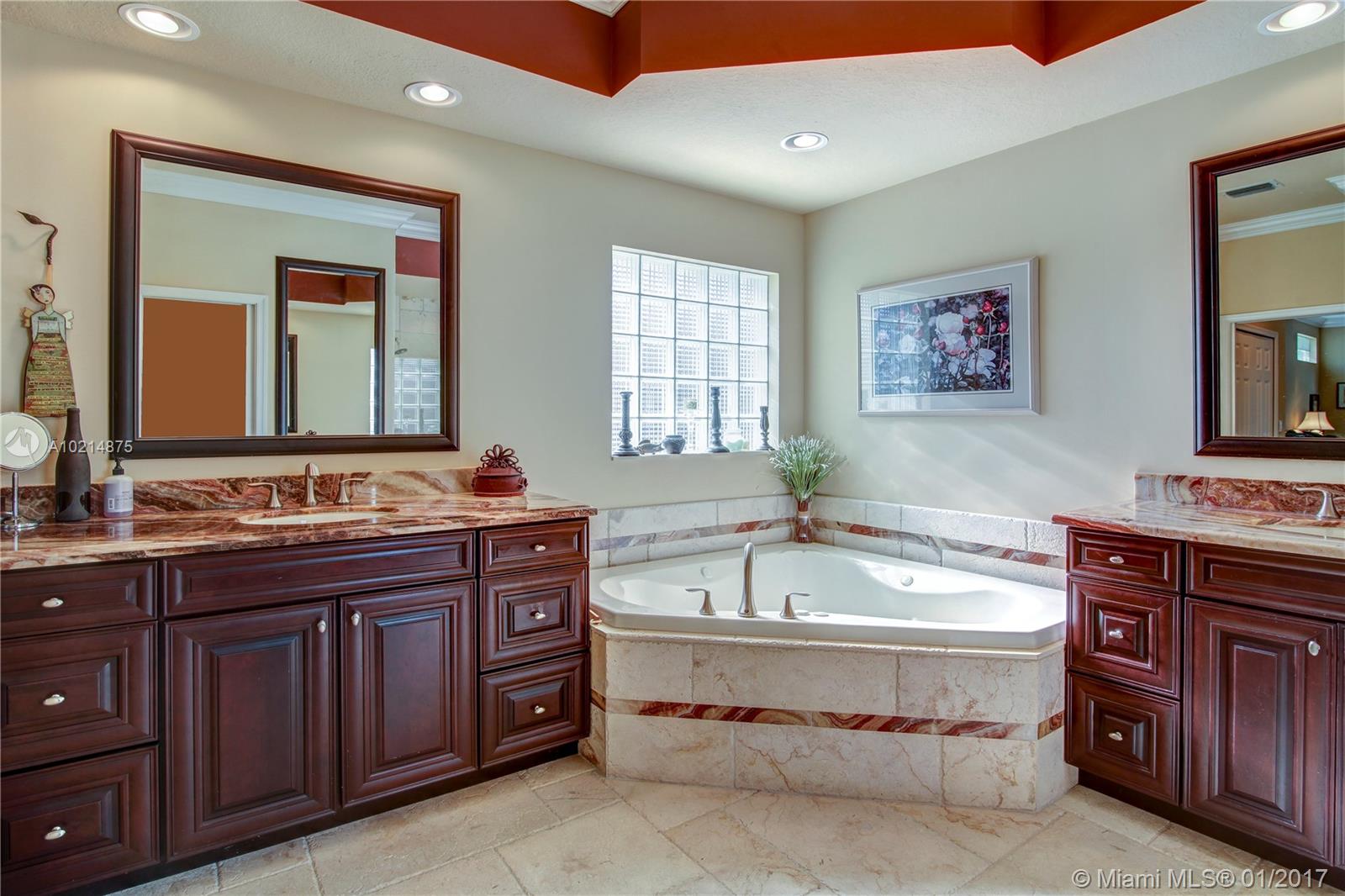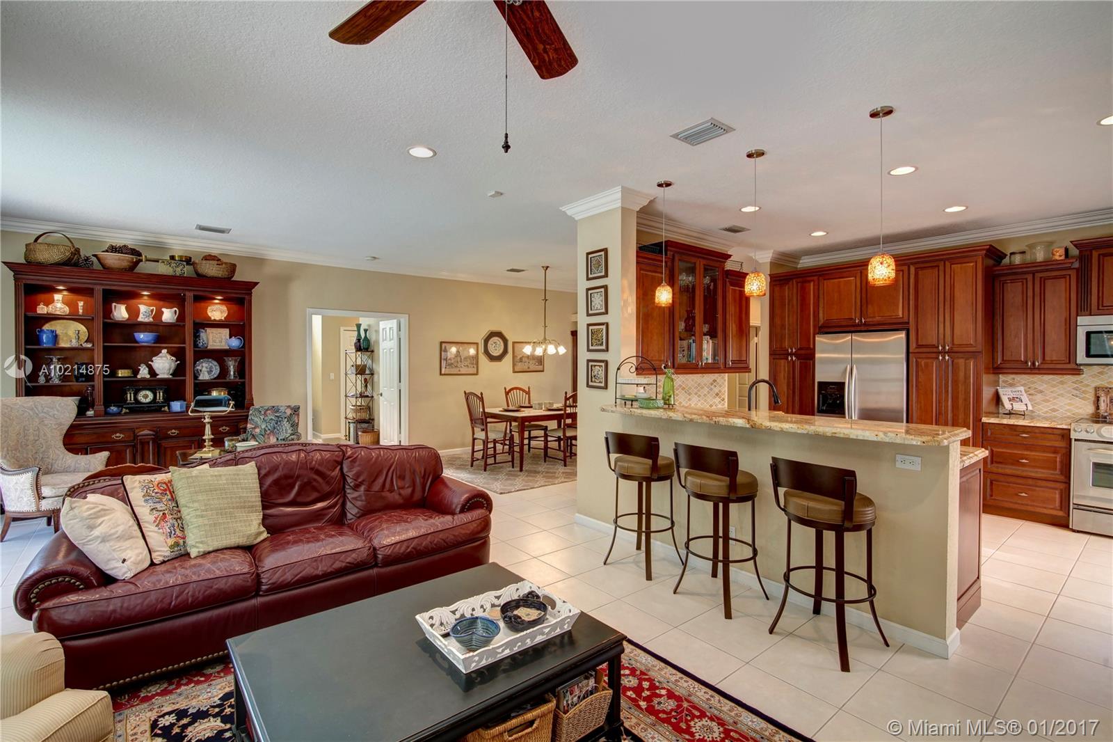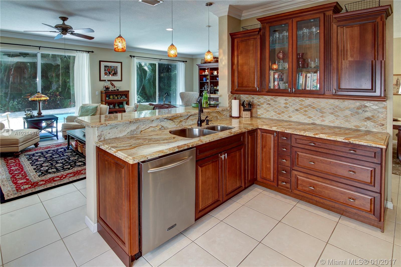 The true definition of move in ready! No Expense was Spared You MUST see this Home! CUSTOM Chef's Kitchen w/Wood & Glassfront Cab's, Granite Counters, stainless appliances & Murano Glass Lighting. New AC unit, Deluxe Master Suite w/ Whirlpool Tub,Onyx Dbl Vanities,Stone Floors. Custom 2nd Bath -Marble & granite. Tile floor in living and kitchen brand new carpet in bedrooms. Tropical Pool refinished. Backyard surrounded by Privacy Landscaping & Fenced. Accordion Shutters. Maint'd & Card Gated Community.