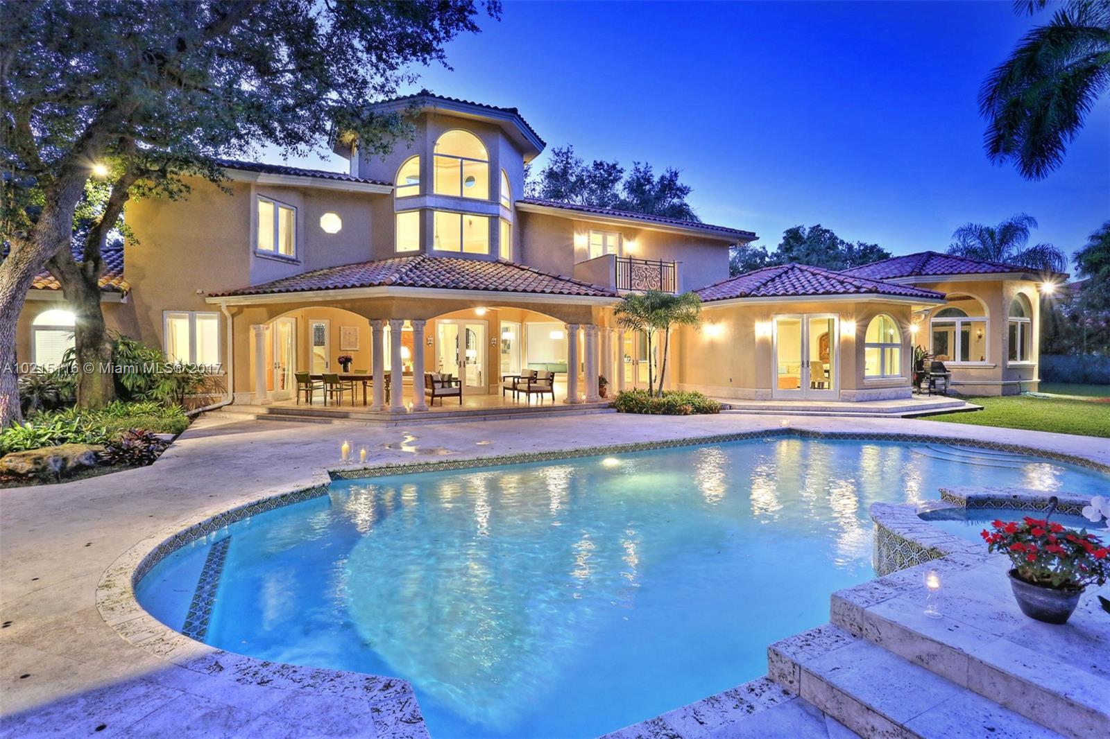 AS TWILIGHT GENTLY BLANKETS PINECREST, A MAGICAL GLOW RADIATES FROM EVERY INCH OF THIS BEAUTIFUL SEVEN BEDROOM 8.5 BATH EUROPEAN-INSPIRED ESTATE FROM ITS GATED ENTRY TO ITS DETACHED GUEST HOUSE, SPACIOUS TERRACE, SHIMMERING POOL, THERAPEUTIC SPA AND SPRAWLING BACK YARD. GRACEFULLY NESTLED ON A FULL ACRE IN THE COMPANY OF MANSIONS ON AN UNPARRALLELED TREE-LINED BOULEVARD IN THE HEART OF PINECREST!THIS HOME IS AN ARTFUL BLEND OF SLEEK, CLEAN ARCHITECTURAL LINES. MASSIVE GALLERY WALLS. CLASSICAL DESIGN ELEMENTS, EASY TO PERSONALIZE WITH YOUR TASTE. THE FOYER OPENS TO A SPECTACULAR OCTAGON-DESIGNED TWO-STORY LIVING ROOM, BEAUTIFUL SWEEPING STAIRCASE, MARBLE FLOORS & INLAYS, IMPACT GLASS, STEPPED CEILINGS, SECLUDED MASTER, RAMBLING TERRACE, POOL & SPA. UNDERSTATED YET ELEGANT. PINECREST ELEM.