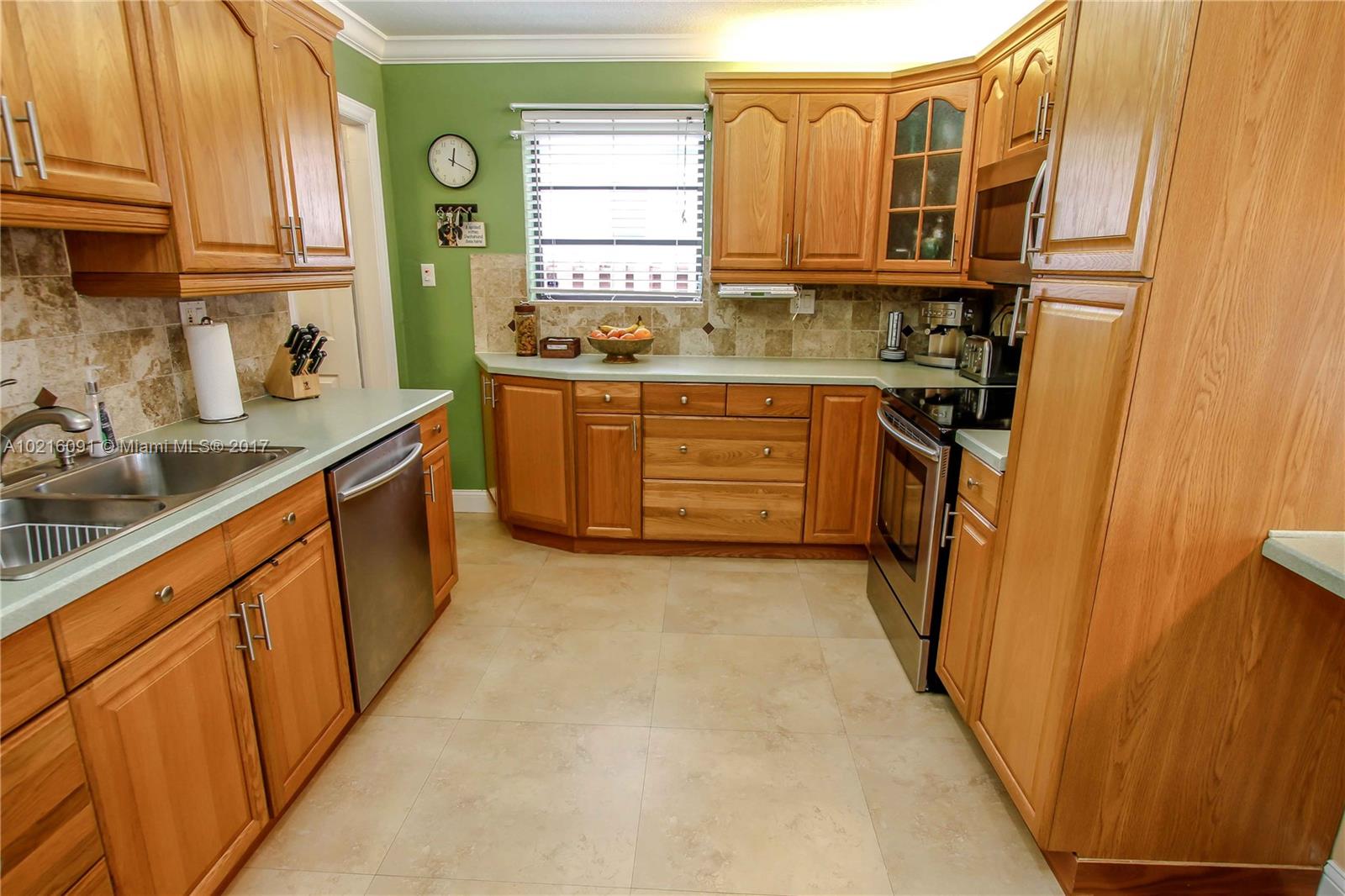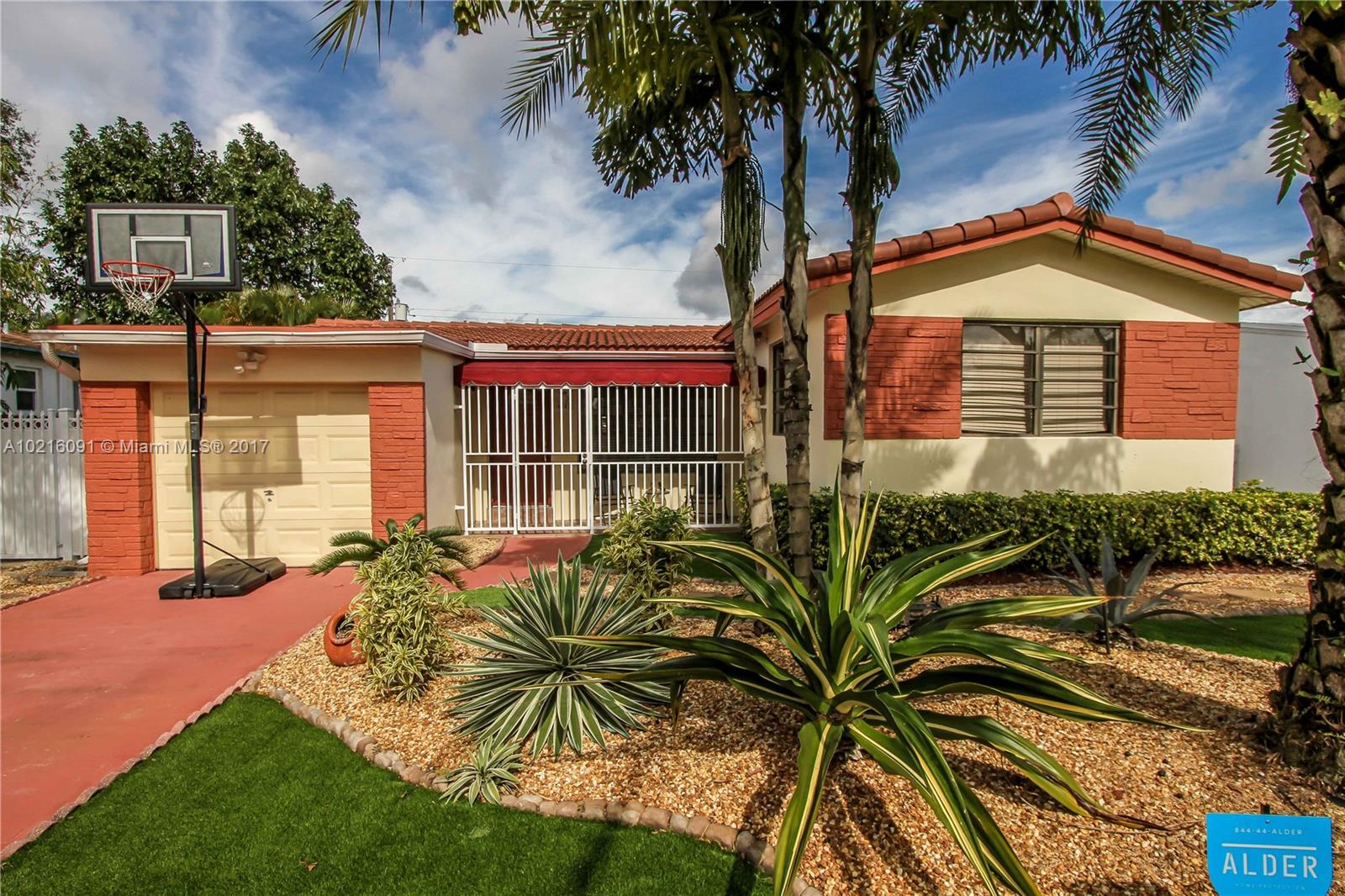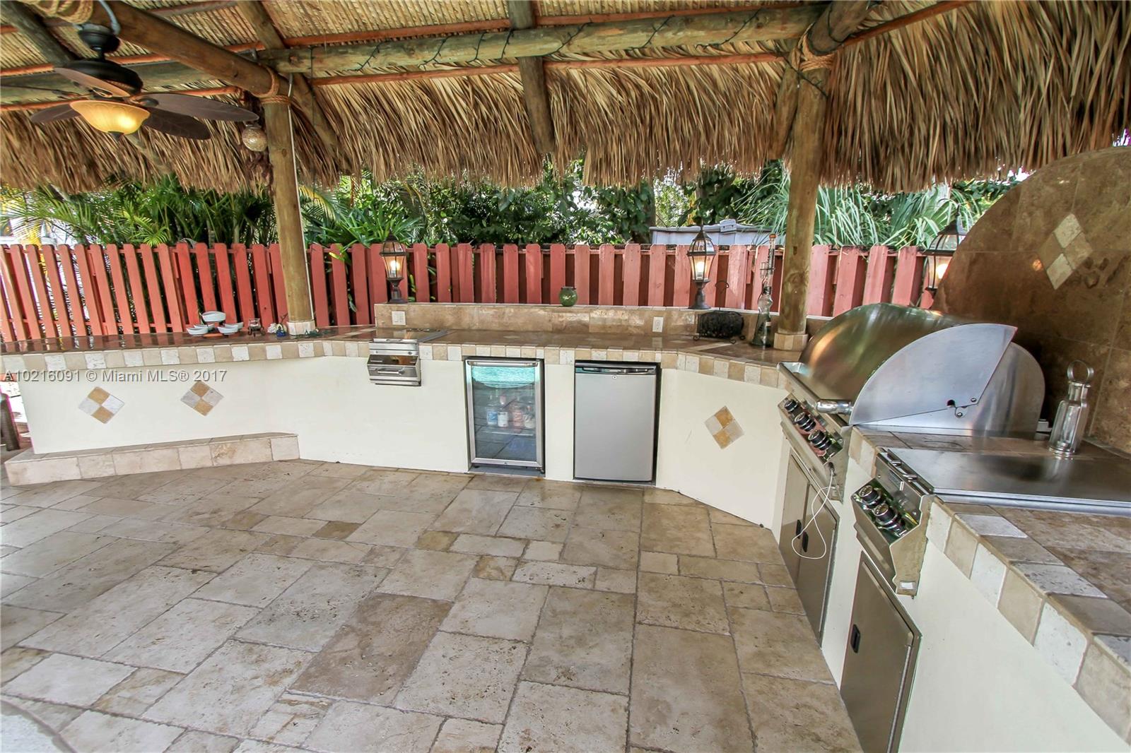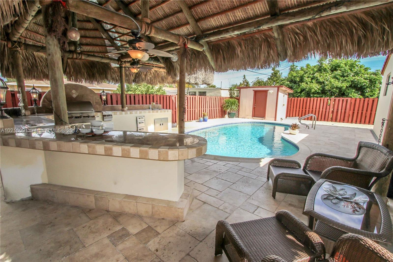Absolutely Beautiful House! Move in condition. 3 bed/2 bath plus den/office. Completely updated kitchen & bathrooms. Great for outside living & entertaining. Large Tiki hut with state of the art outdoor kitchen including grill & fridge. Professionally landscaped w/new sprinkler system. Resurfaced saltwater pool. Roof replaced in 2014. Alarm system. Crown molding in kitchen, living & dining room. Converted garage.