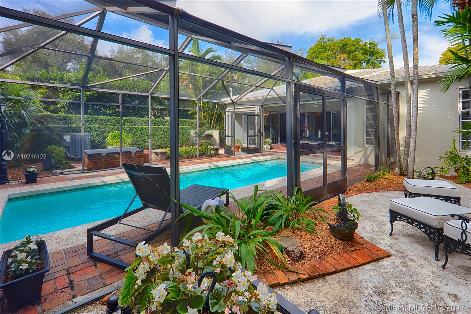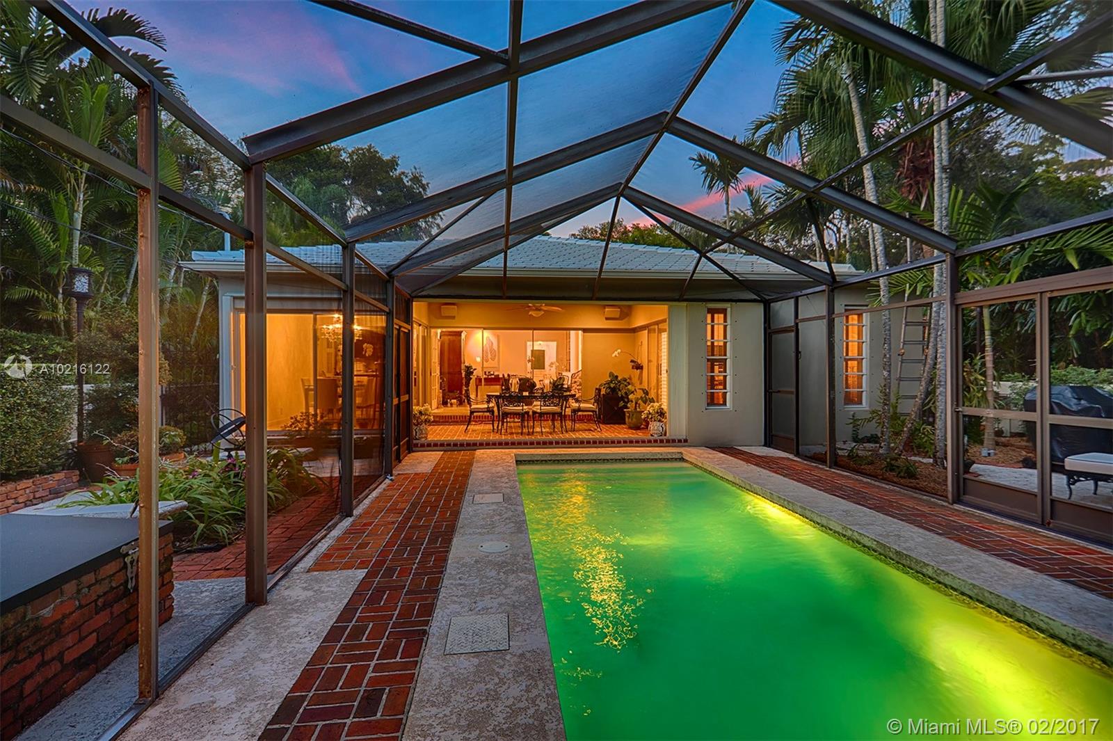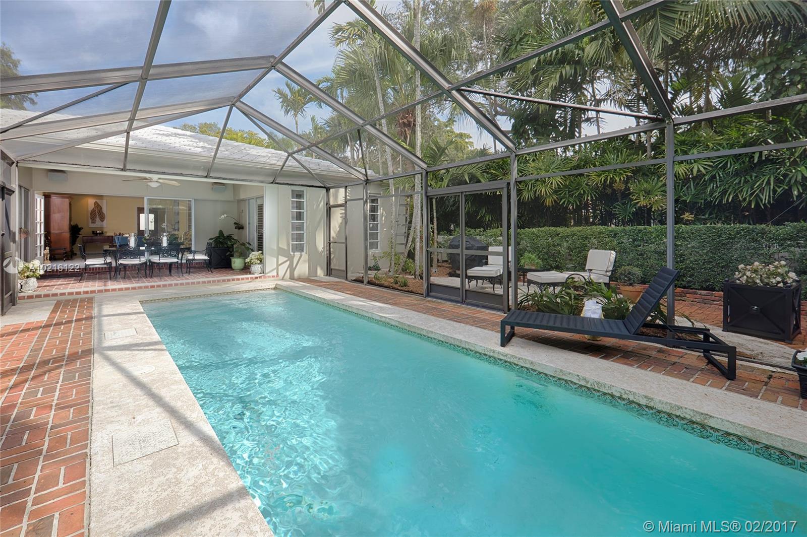 South of France inspired Jewel box home in central Gables, a short walk to restaurant/galleries/shops/cinema/ Biltmore/Venetian Pool/golf.One story original details, lovingly restored & updated.Brick driveway and electric gate courtyard lead to foyer and spacious living room.Statuary marble and elegant black wood kitchen features top of the line appliances.Sunny breakfast/DR.Covered patio, sparkling pool and garden.3rd room used as office/media.New 2015/2016 roof/ac/gutters/electric and garage door. SF from Tax Roll.